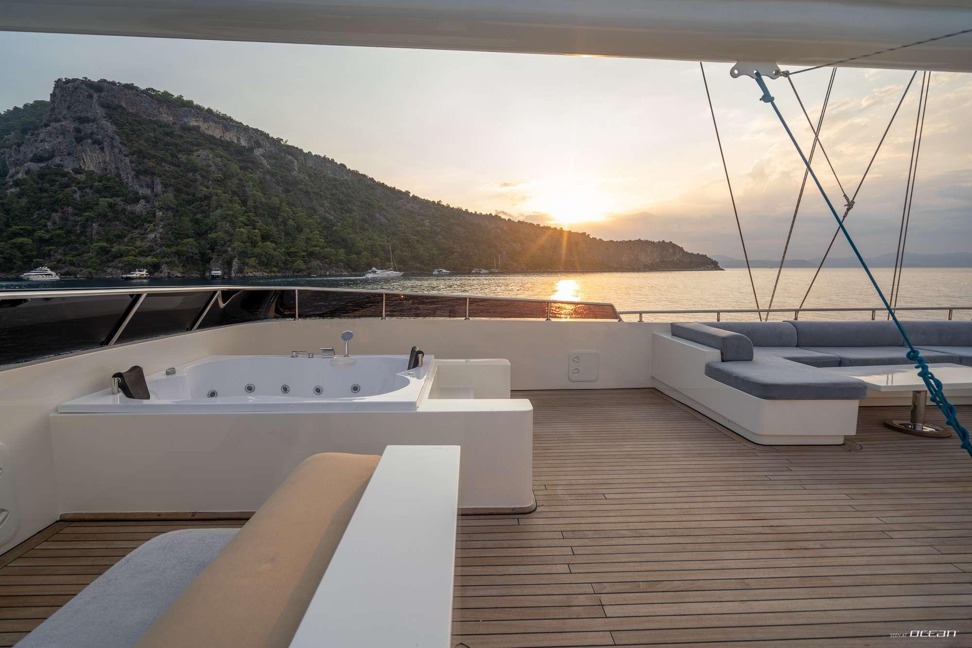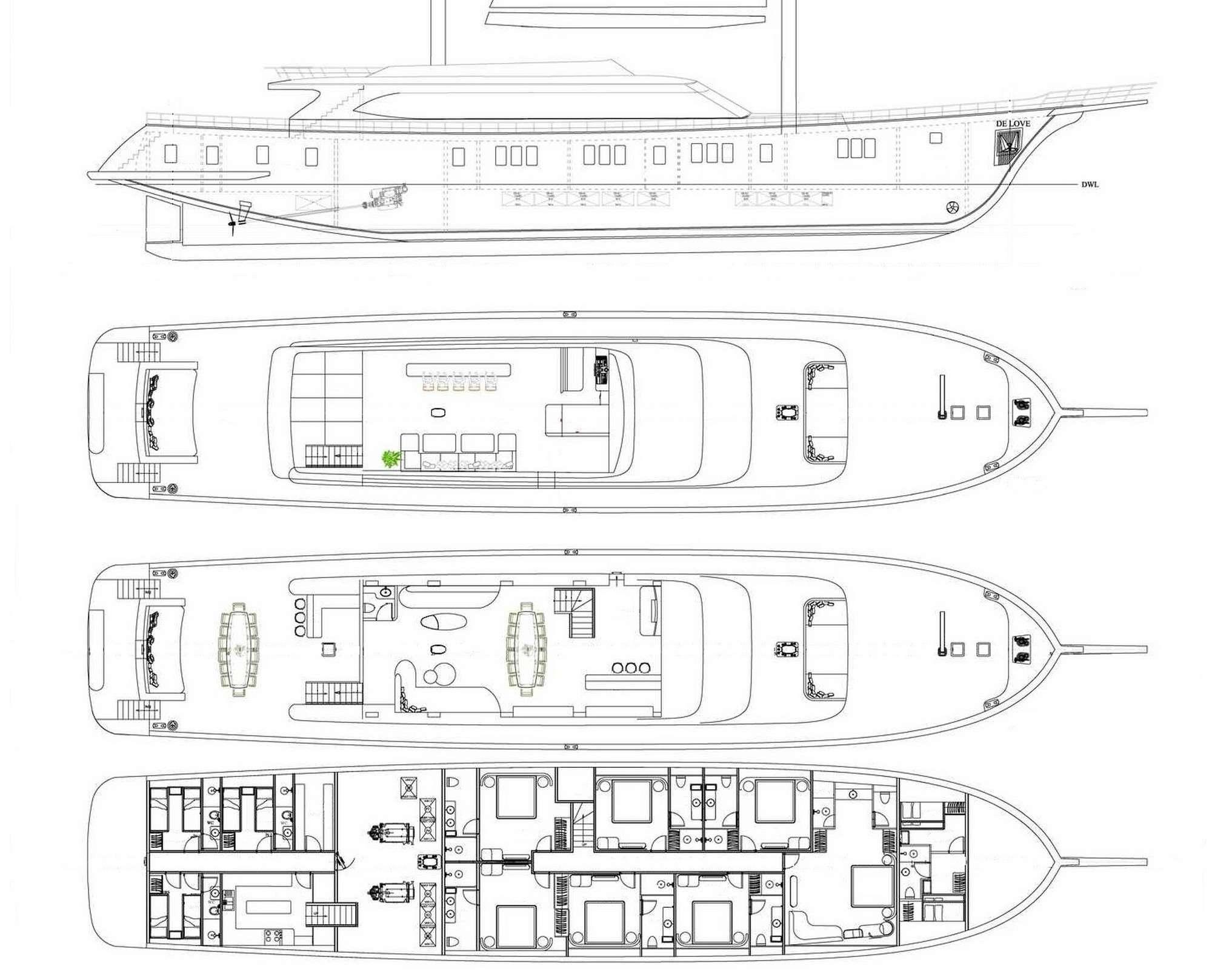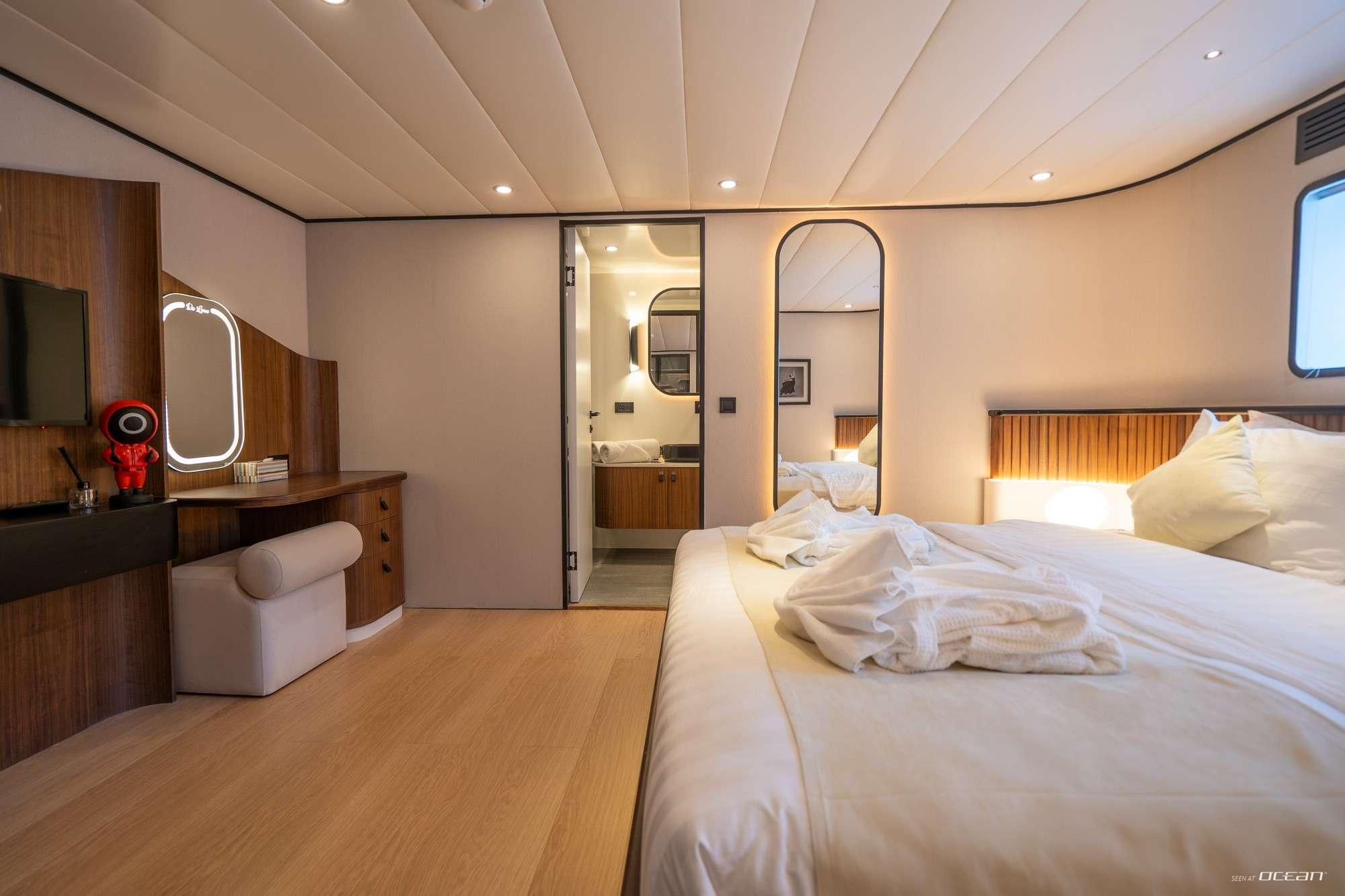 All cabins with en-suite bathrooms, air condition throughout, 3 generators, watermakers, jacuzzi, TV in salon and all cabins, Wi-Fi internet and a variety of water toys