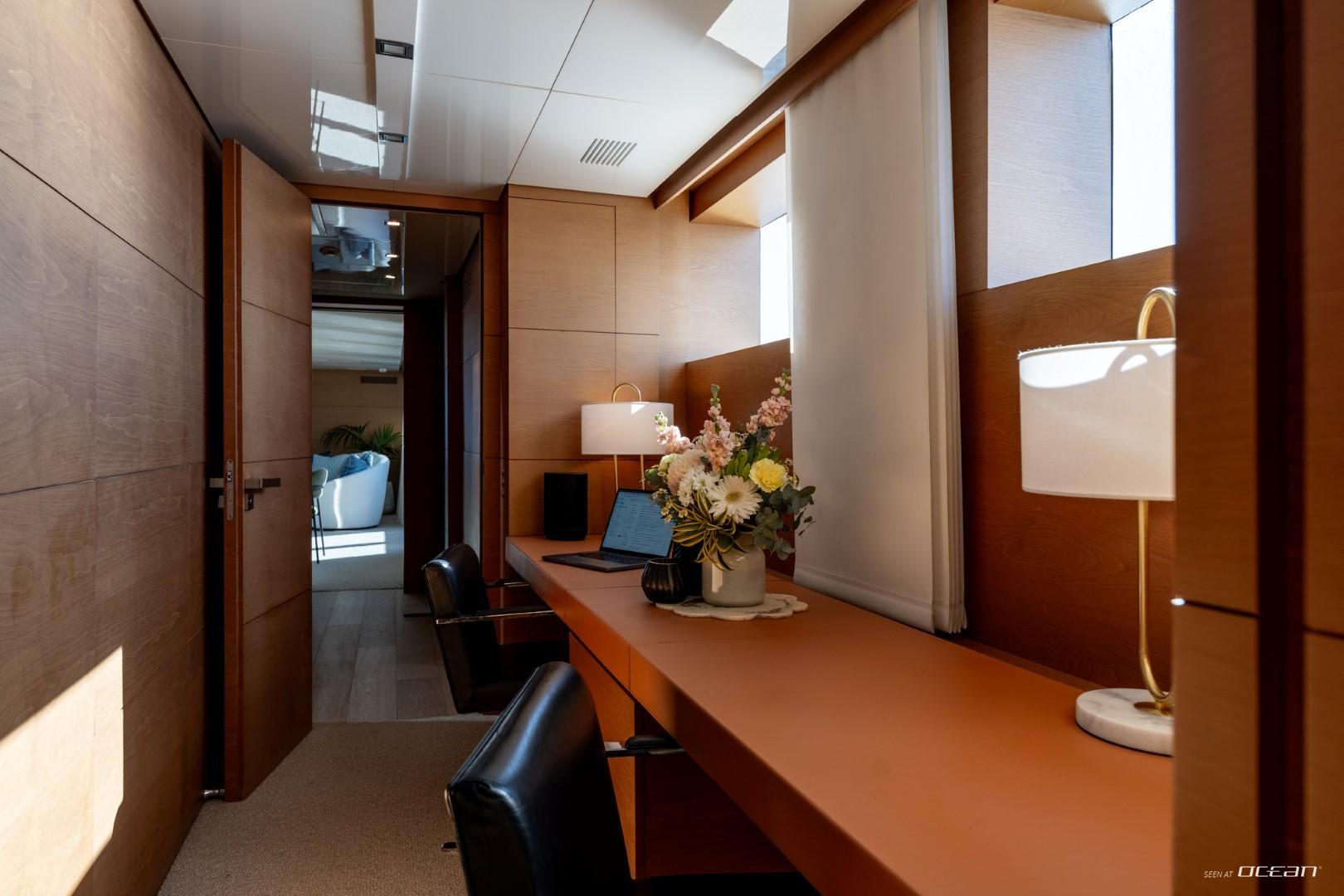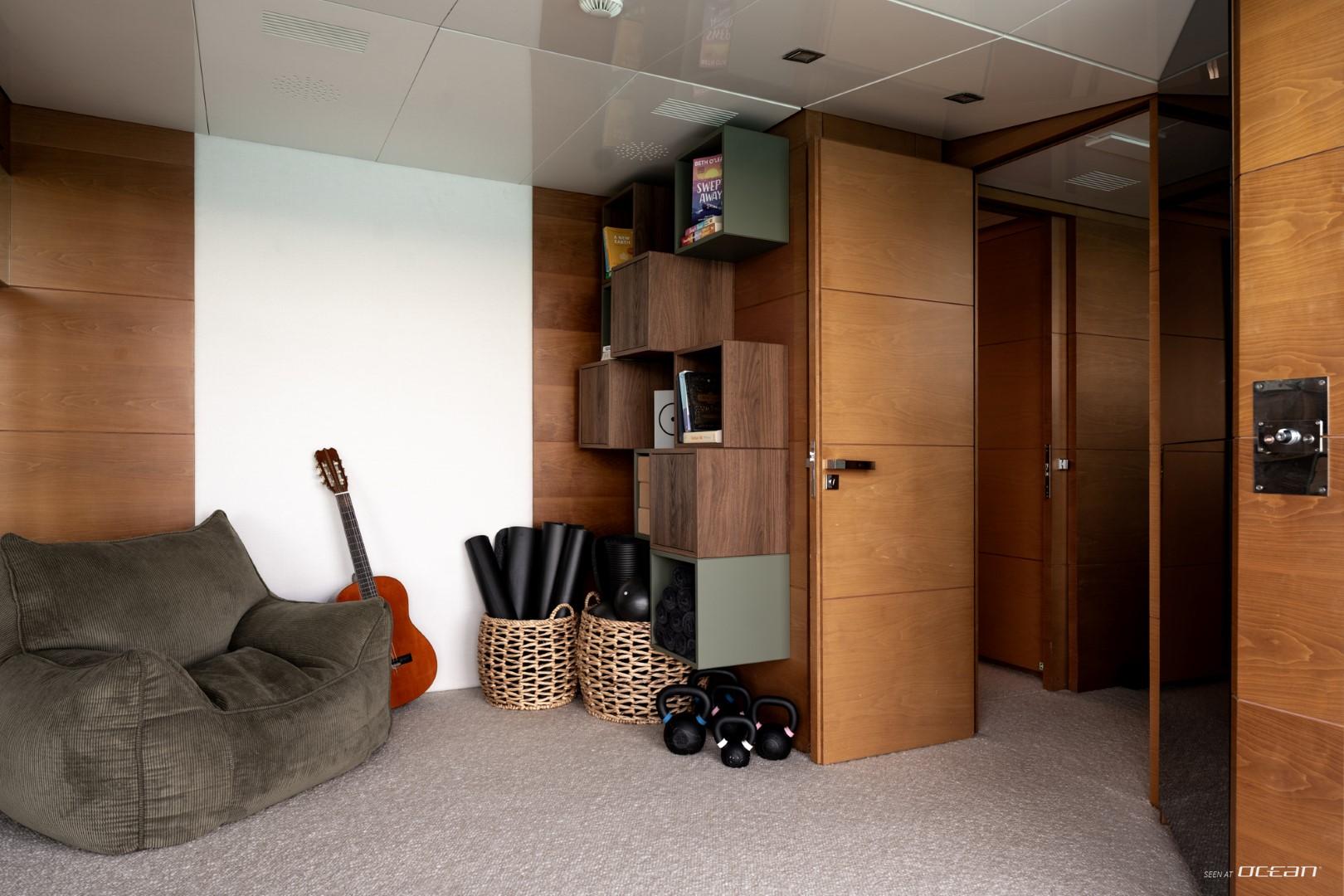 4A’s Beach Club features a secure, netted pool and direct sea access, ideal for families and water enthusiasts. Adventure awaits with her 5.3m Novurania tender, 2 Seabobs SR5, 4 paddleboards, snorkeling and fishing gear, spear guns, and beach toys. For fitness at sea, she is equipped with a treadmill, exercise bike, and free weights, allowing guests to stay active while enjoying the spectacular surroundings.