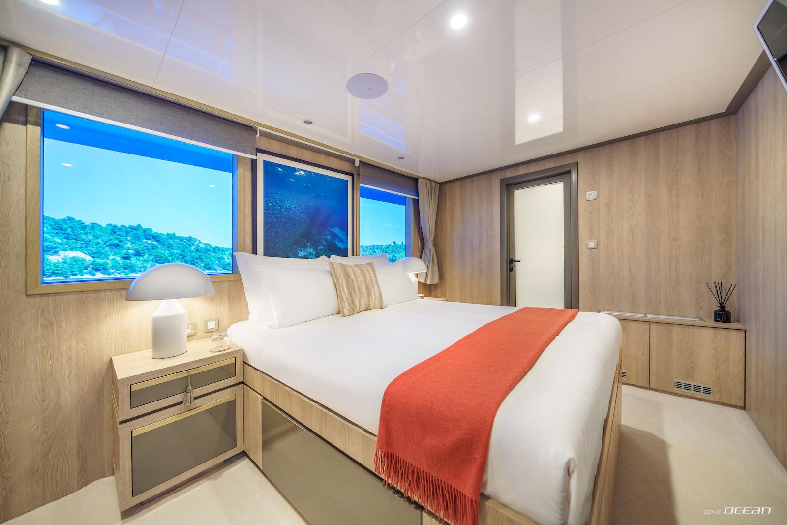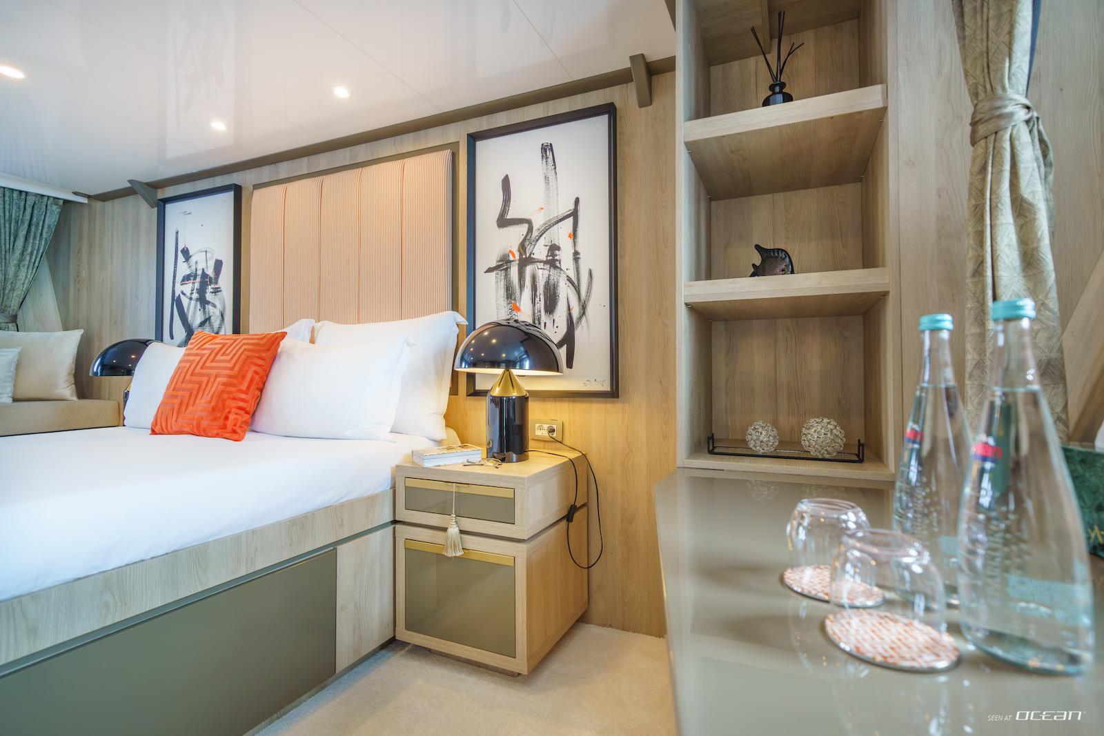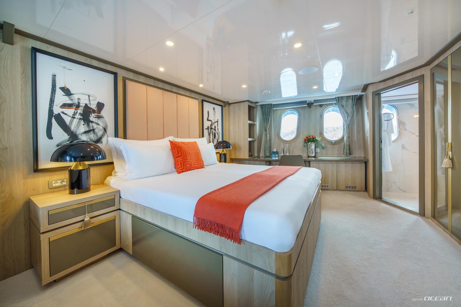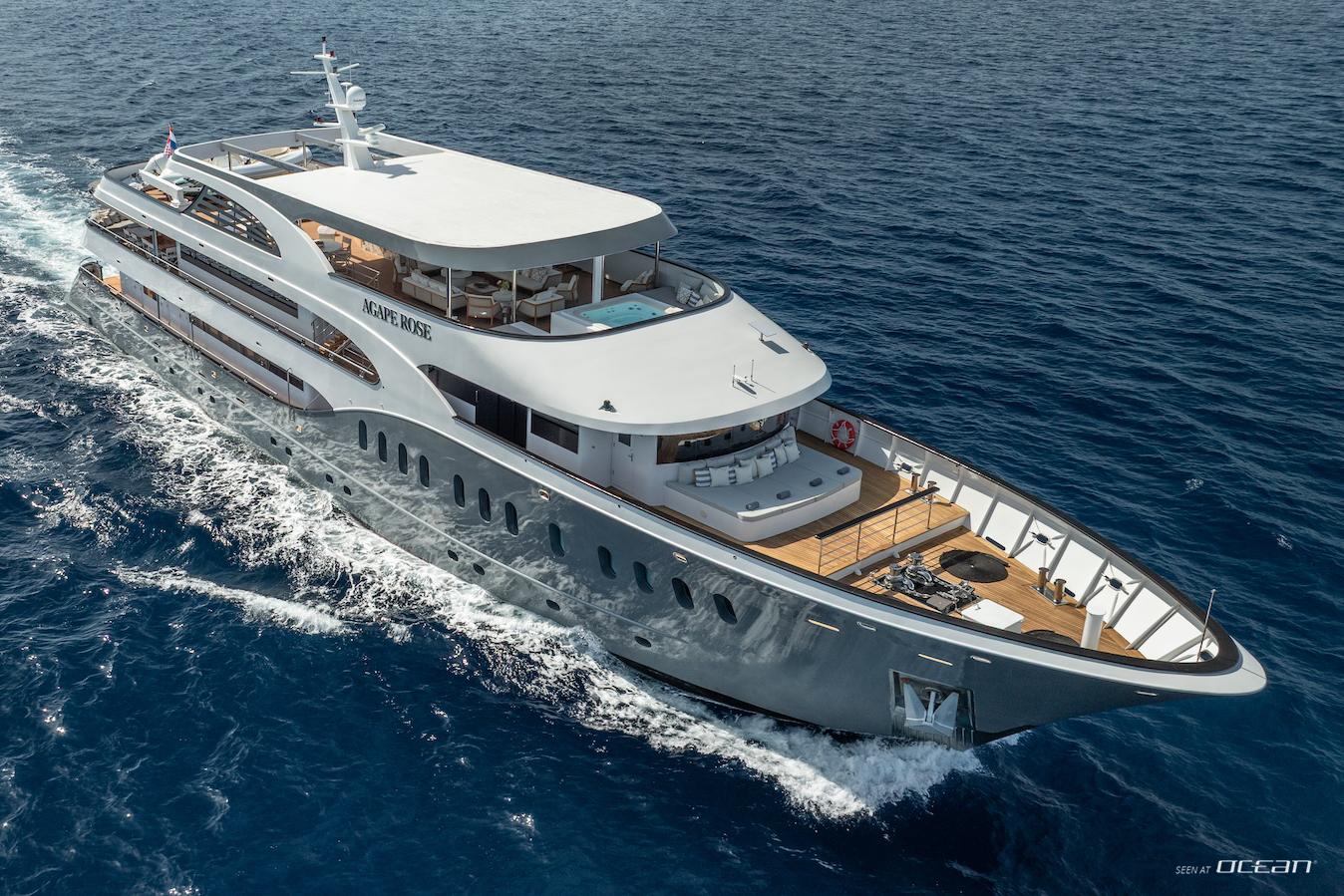 Luxury mini cruiser AGAPE ROSE was built in 2017 but joined our private luxury cruiser fleet in 2021 only as a 48m superyacht with accommodation for up to 22 guests sleeping in 11 well-appointed cabins. Her layout has been designed with utmost flexibility to provide 5 double-bed cabins, comprising king and queen-size beds, and 7 convertible cabins available as double or twin beds making charter yacht AGAPE ROSE a great yacht for couples, friends, and families at the same time. All cabins come with en-suite bathrooms, LED-TVs, sound systems, and safes.