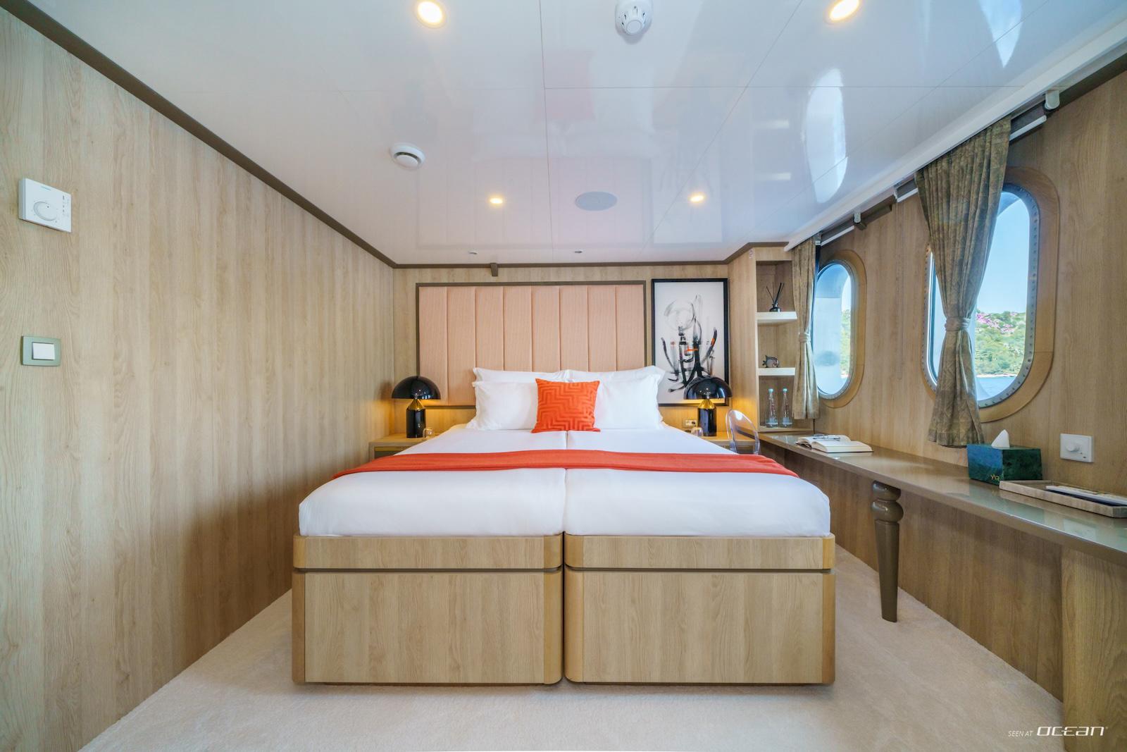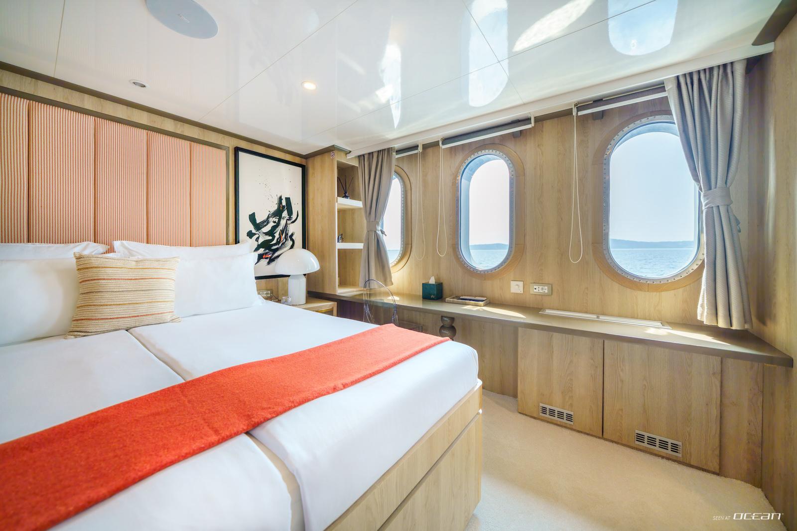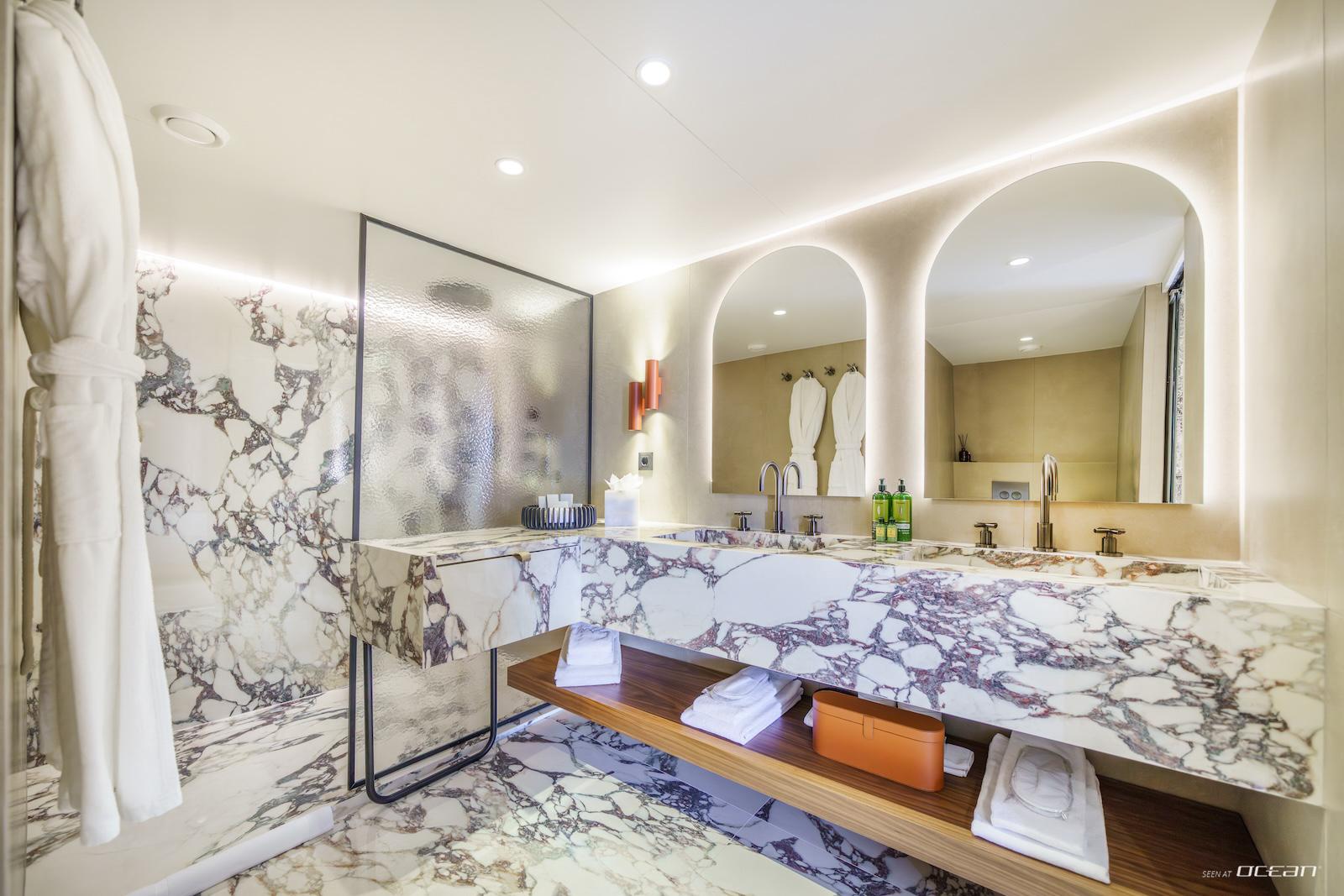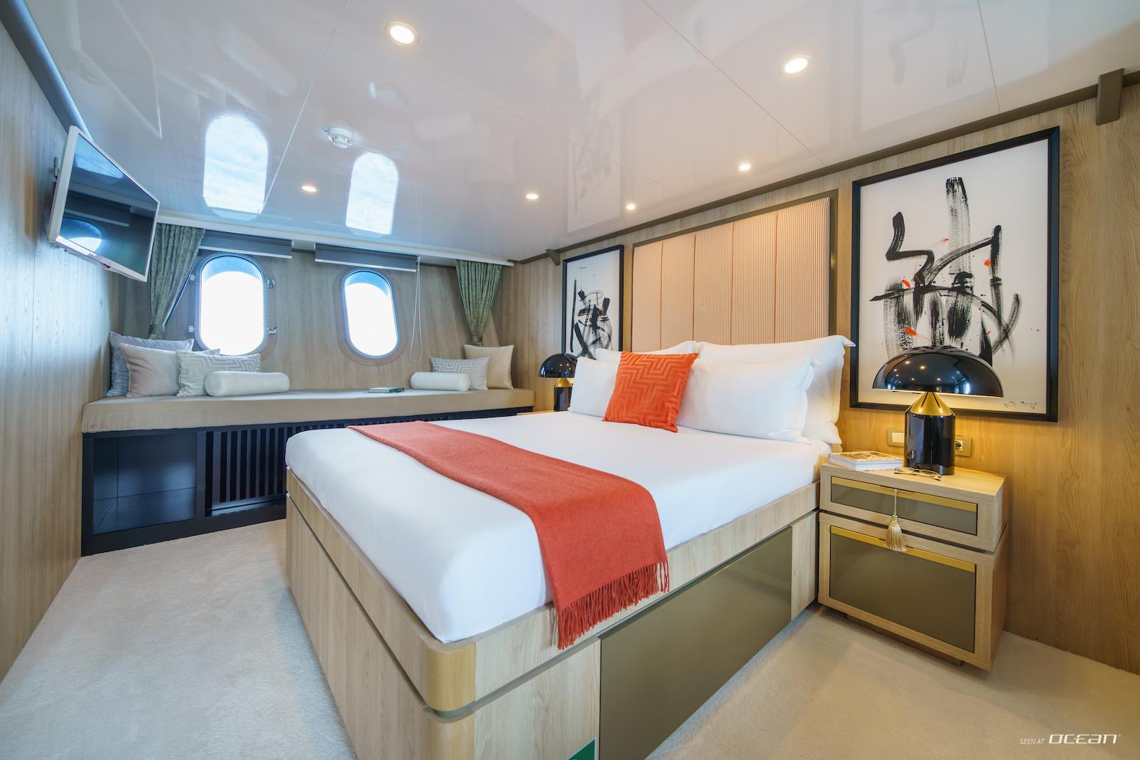 Luxury mini cruiser AGAPE ROSE was built in 2017 but joined our private luxury cruiser fleet in 2021 only as a 48m superyacht with accommodation for up to 22 guests sleeping in 11 well-appointed cabins. Her layout has been designed with utmost flexibility to provide 5 double-bed cabins, comprising king and queen-size beds, and 7 convertible cabins available as double or twin beds making charter yacht AGAPE ROSE a great yacht for couples, friends, and families at the same time. All cabins come with en-suite bathrooms, LED-TVs, sound systems, and safes.