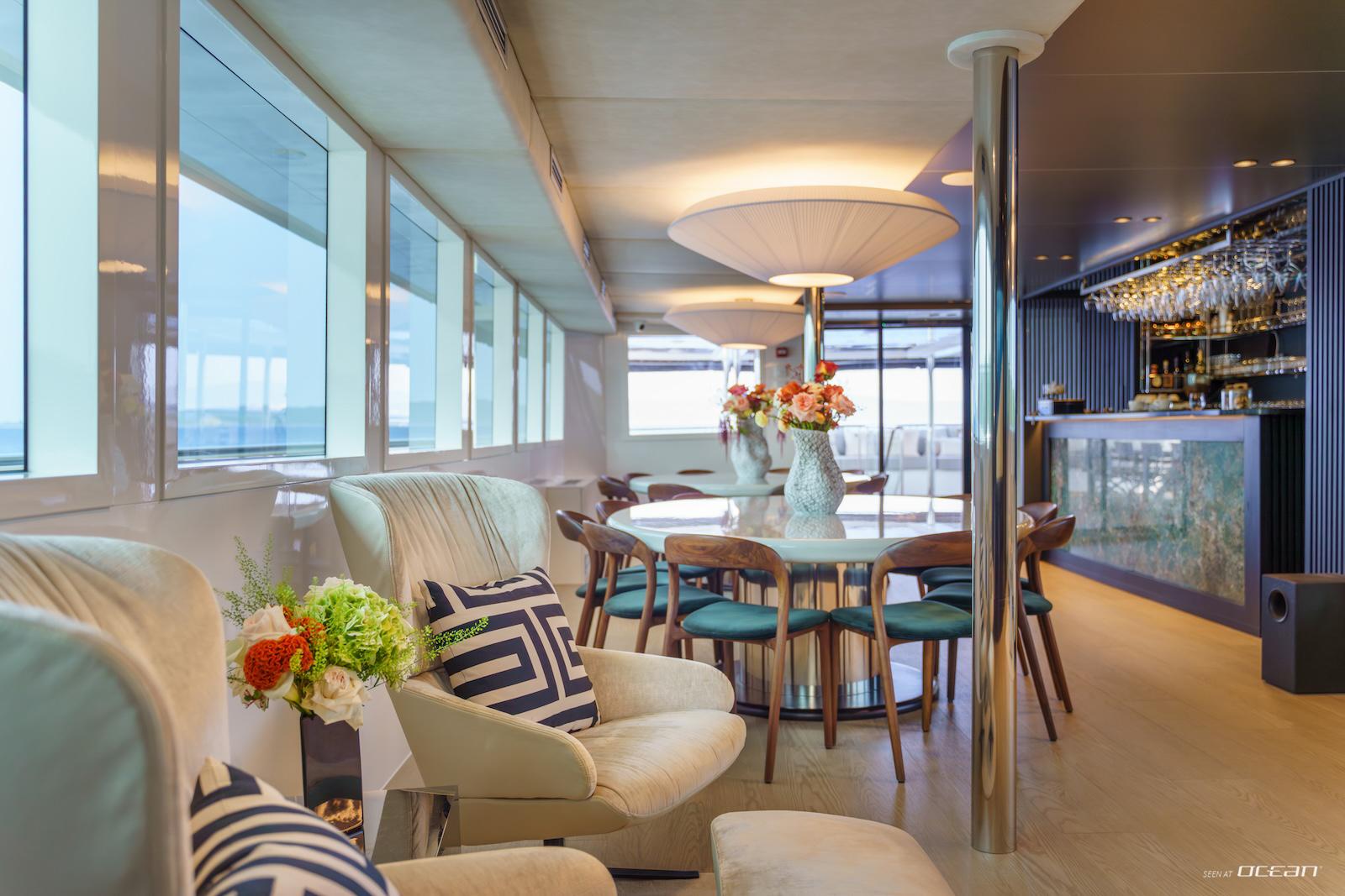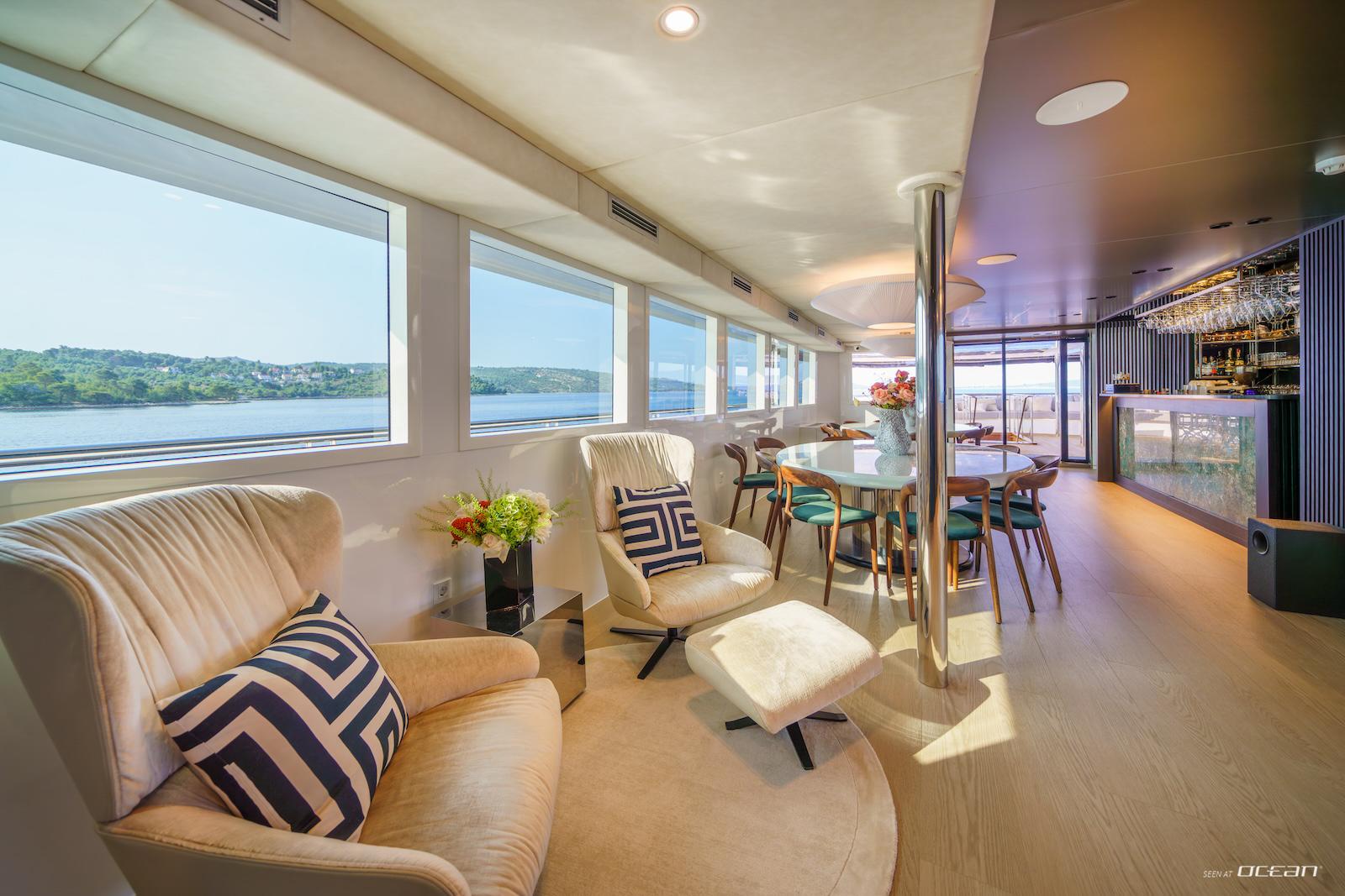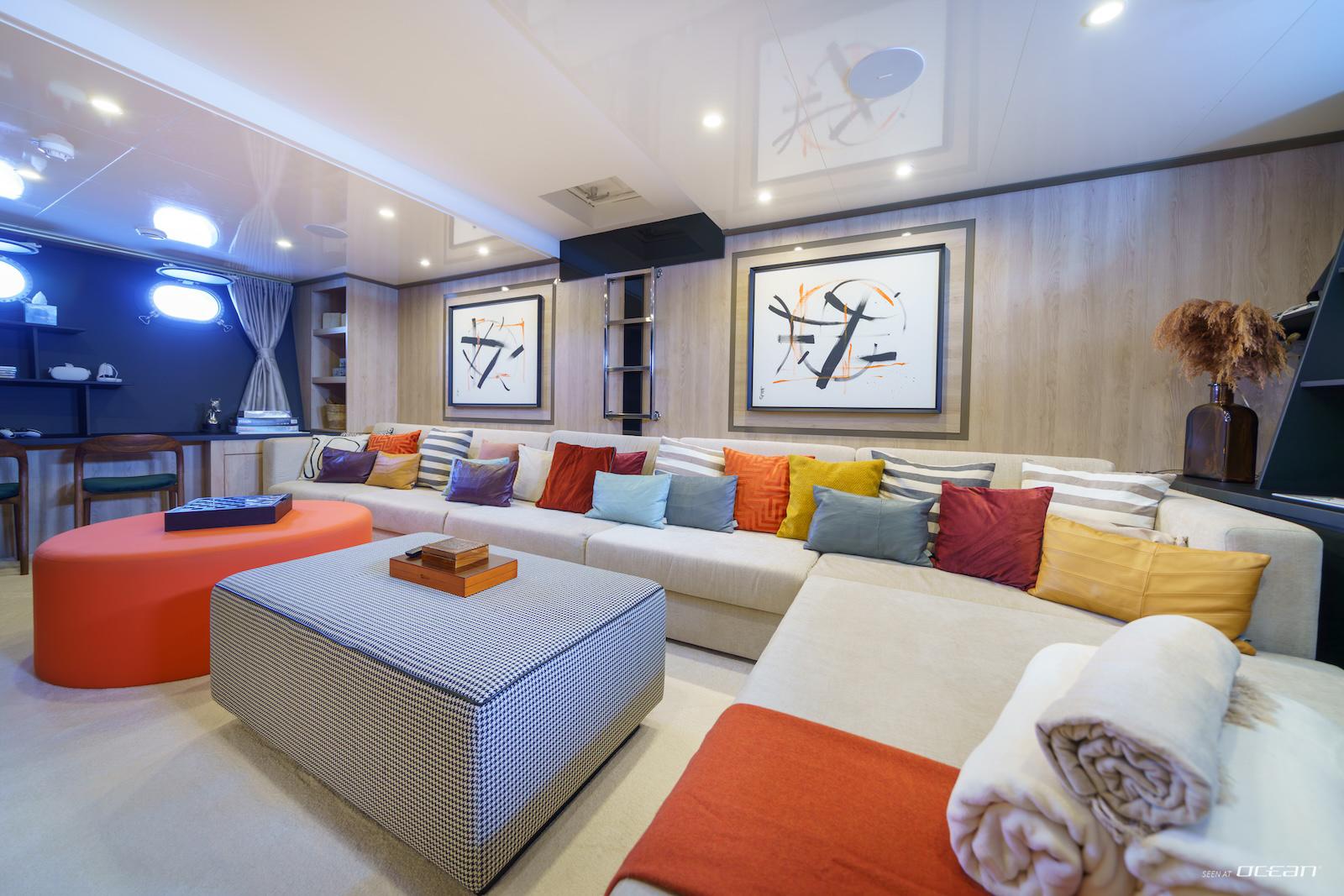 All cabins with en-suite bathrooms, air condition throughout, generators, watermakers, deck jacuzzi, Wi-Fi internet, each cabin with TV, sound system and safe, state-of-the-art NOHRD gym room, sauna and massage rooms, full home movie theatre room, all outside cushions and sun pads for generous sunbathing areas, swimming platform, stern/cockpit shower and a variety of water toys.