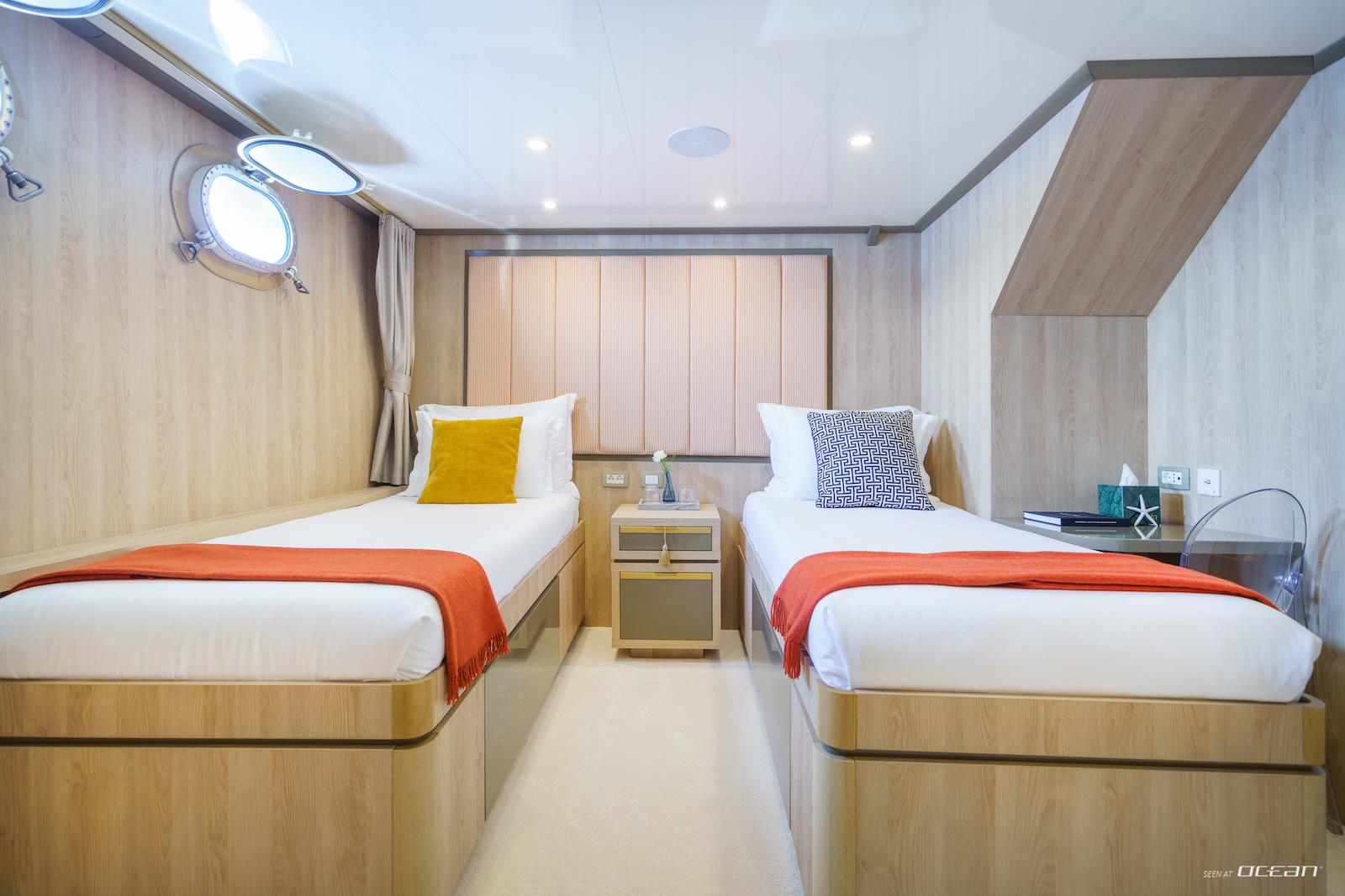 Cabin configuration: 2 master, 2 double, 7 double/twin convertible cabins