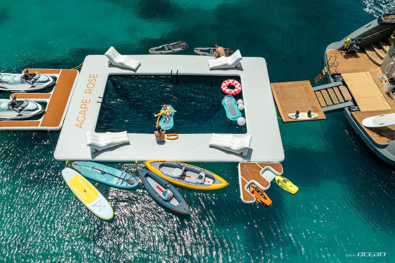 2 x 6.5m Ris Marine tenders with 150hp engines, 1 operational crew tender, 2 SeaDoo GTI 130 jet skis, Seabob F5, Seabob F5 S, fliteboard eFoil, 4 stand-up paddleboards, 2 kayaks, inflatable swimming platform and netted pool, inflatable slide, waterskis for adults and children, wakeboards, towable ringo and sofa, 12 snorkeling sets and 4 fishing rods