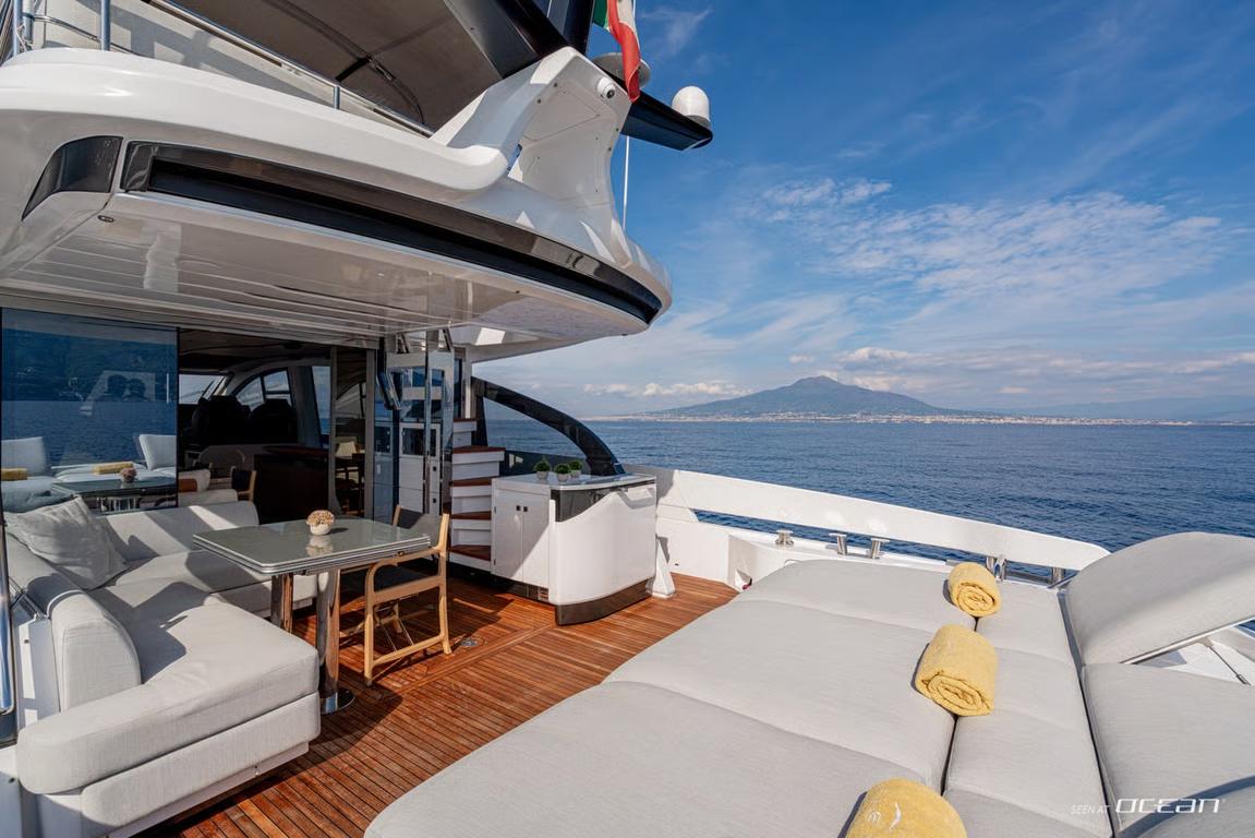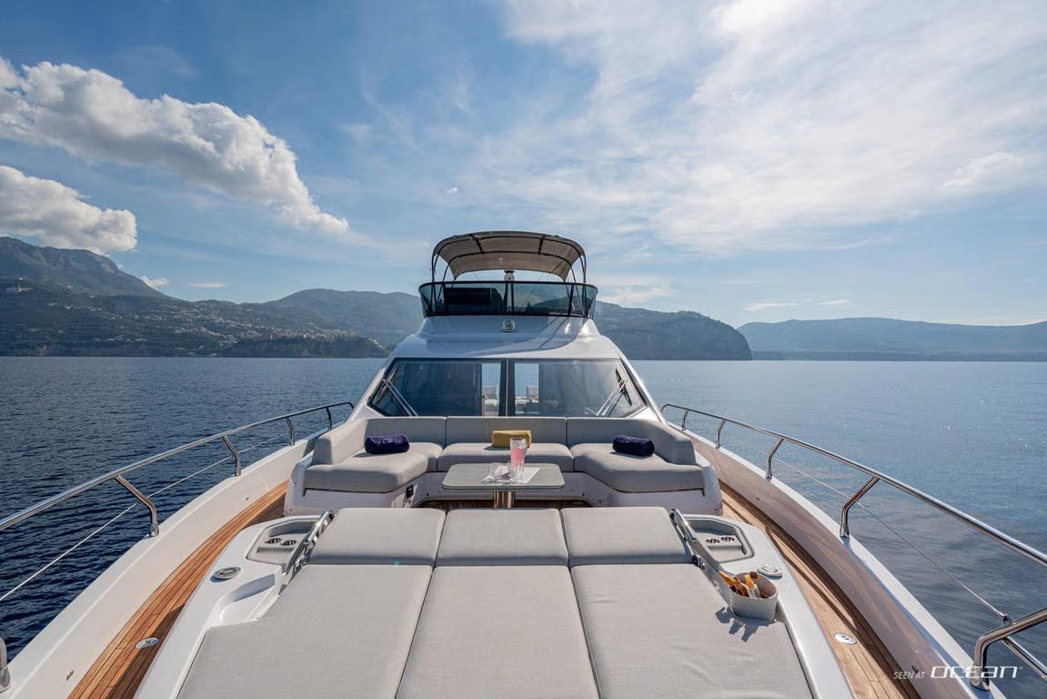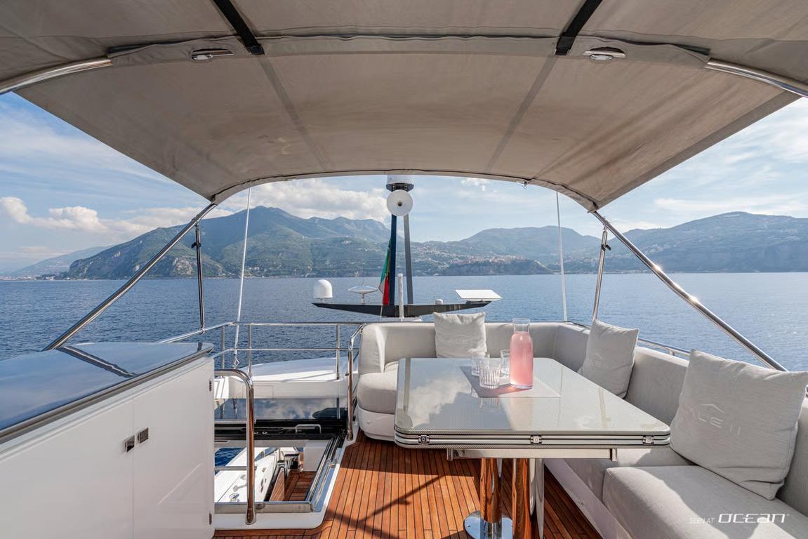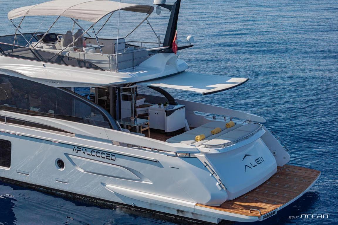 Delivered in 2024, ALE II enhances our Naples-based luxury yacht charter fleet with the unmistakable character of the Azimut S7. Built using advanced carbon fiber technology, she combines dynamic performance with refined onboard comfort, creating an effortless cruising platform for southern Italy. Designed for elegant journeys along the Naples and Amalfi Coast, ALE II represents a contemporary approach to luxury motor yacht charter.