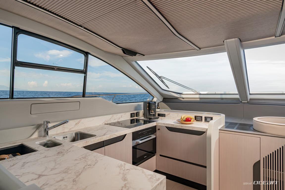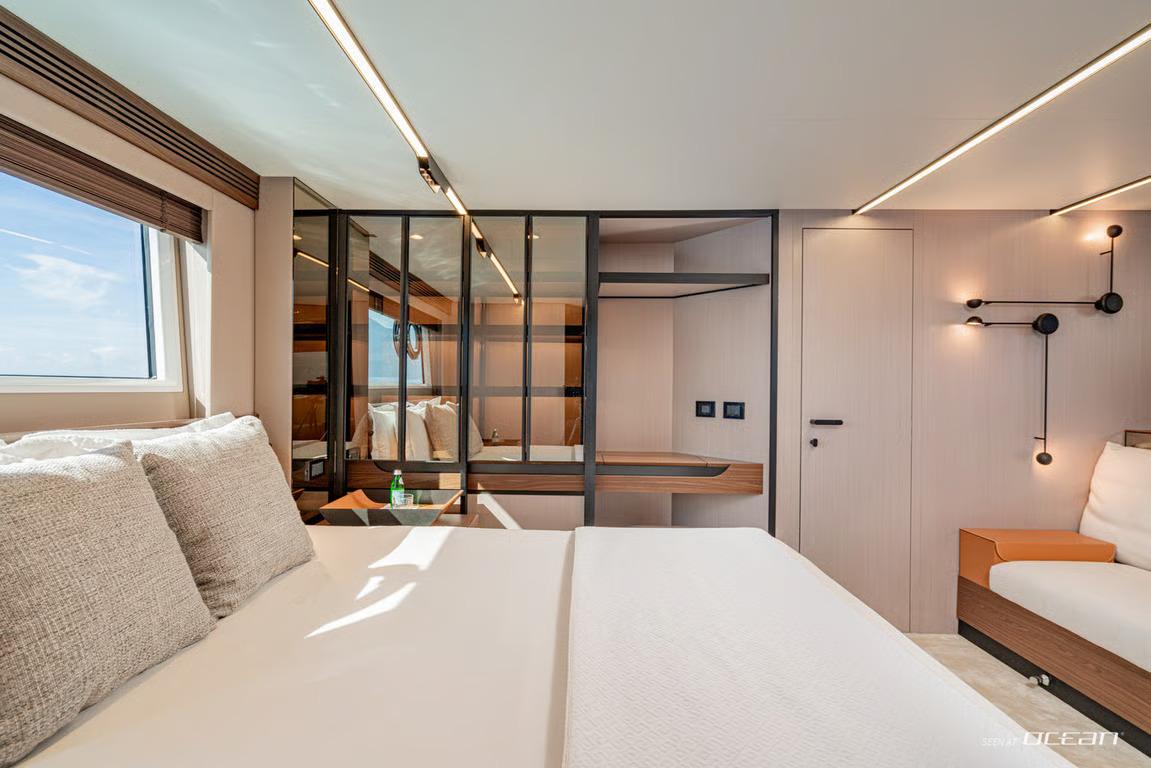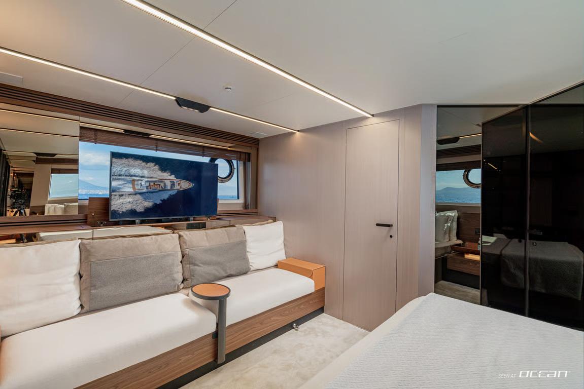 Azimut S7 stands out for her streamlined profile and intelligently designed living spaces, where large panoramic windows invite natural light throughout the interior. The main salon connects fluidly with the aft deck, encouraging a relaxed indoor-outdoor lifestyle. Fully-stabilized both underway and at anchor, ALE II delivers a smooth and composed experience, complemented by Starlink connectivity and Bluetooth sound for modern onboard living.