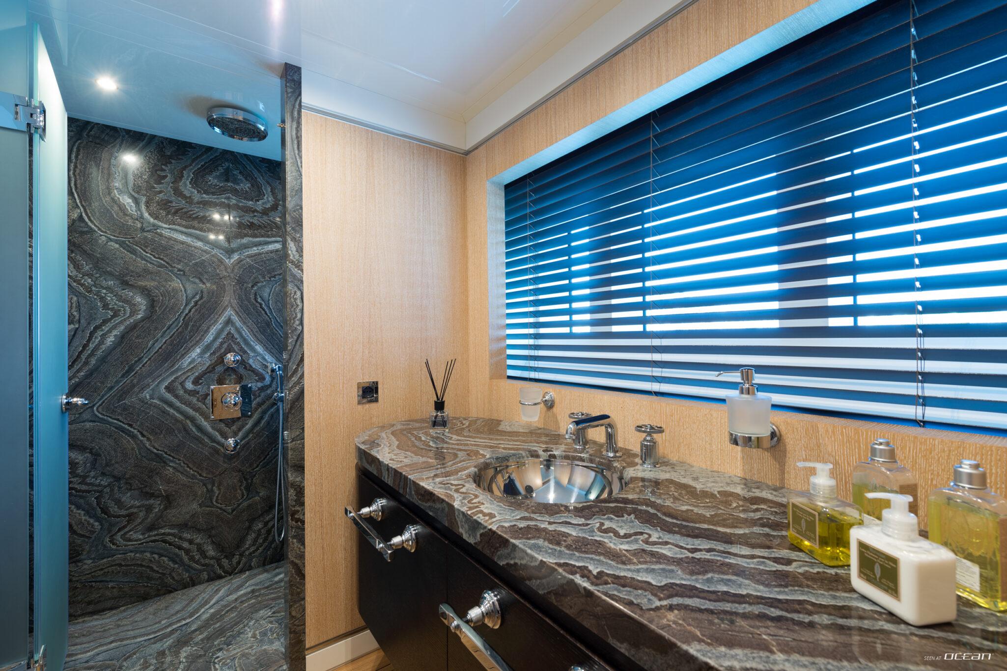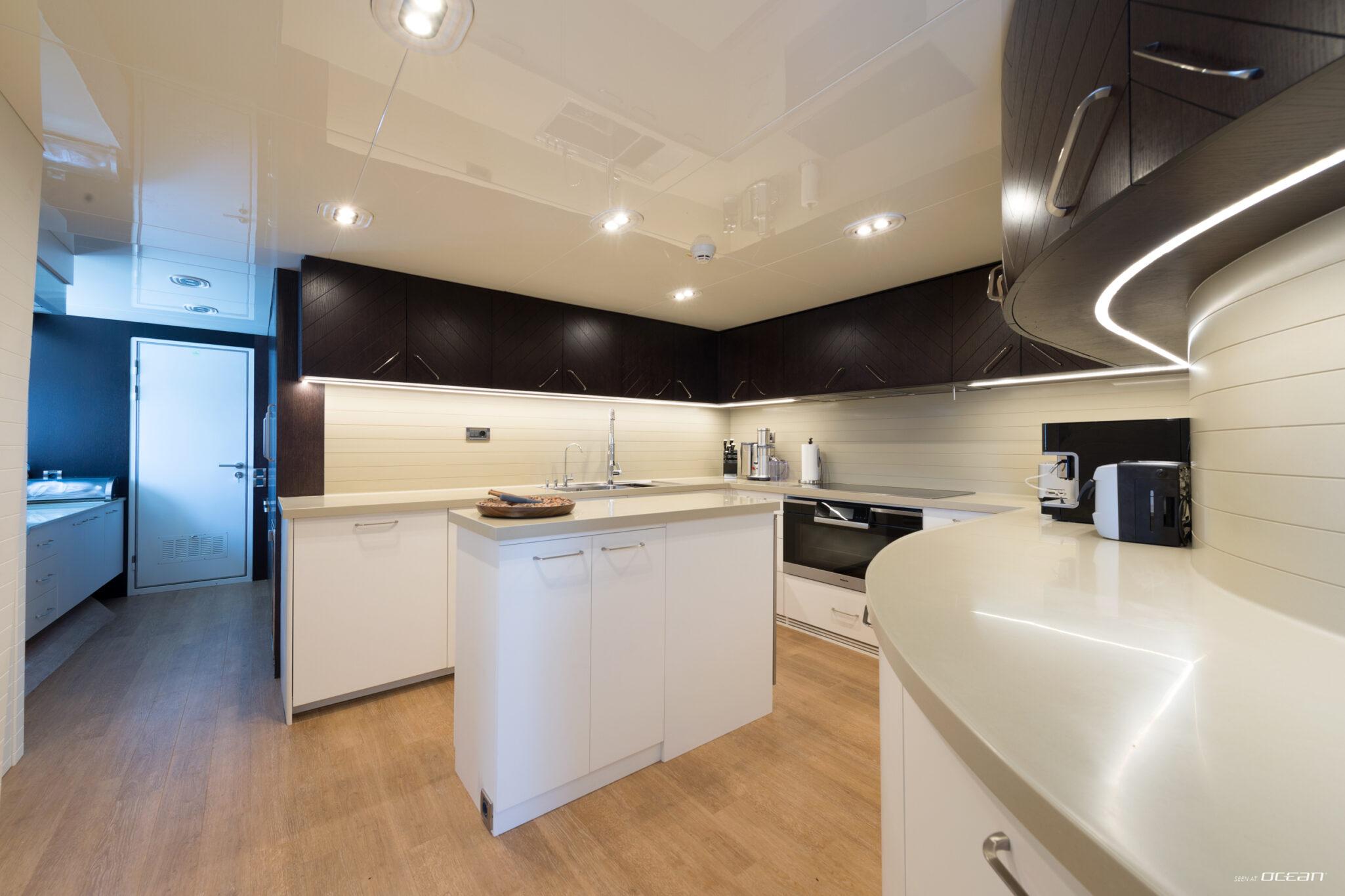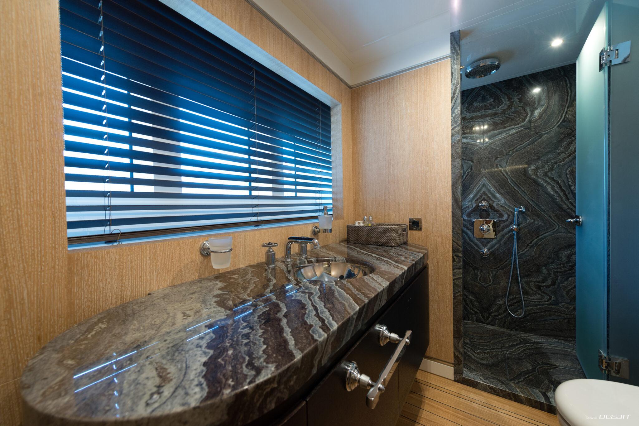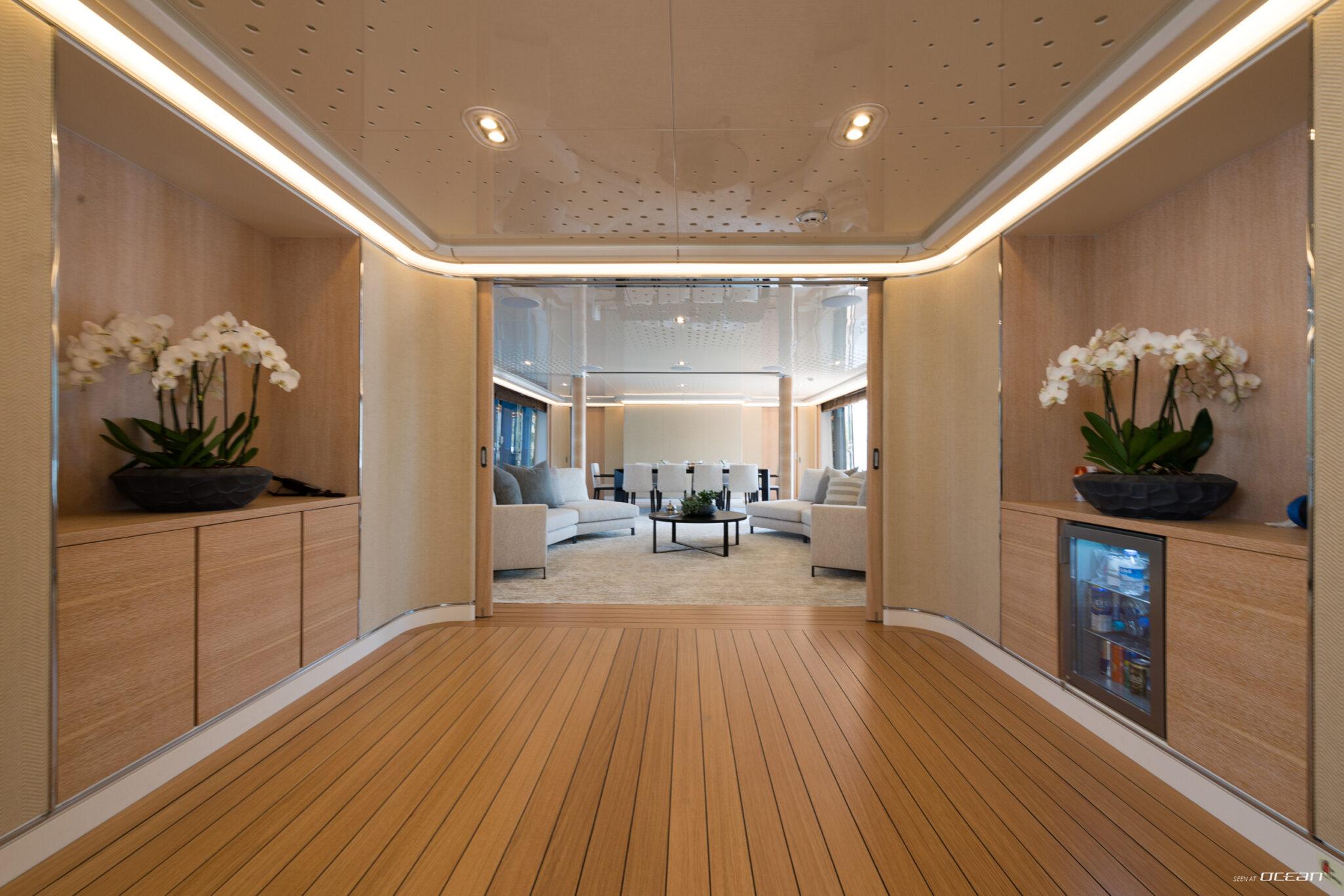Charter Yacht AQUARIUS accommodates up to 10 guests in 5 cabins, including a main deck master suite with 2 balconies and an office, along with 4 double cabins on the lower deck, one arranged as a twin. This layout supports a variety of group configurations, from families to couples, while each cabin is equipped with ensuite facilities, smart TVs, Starlink internet, and integrated audio-visual systems for onboard entertainment.