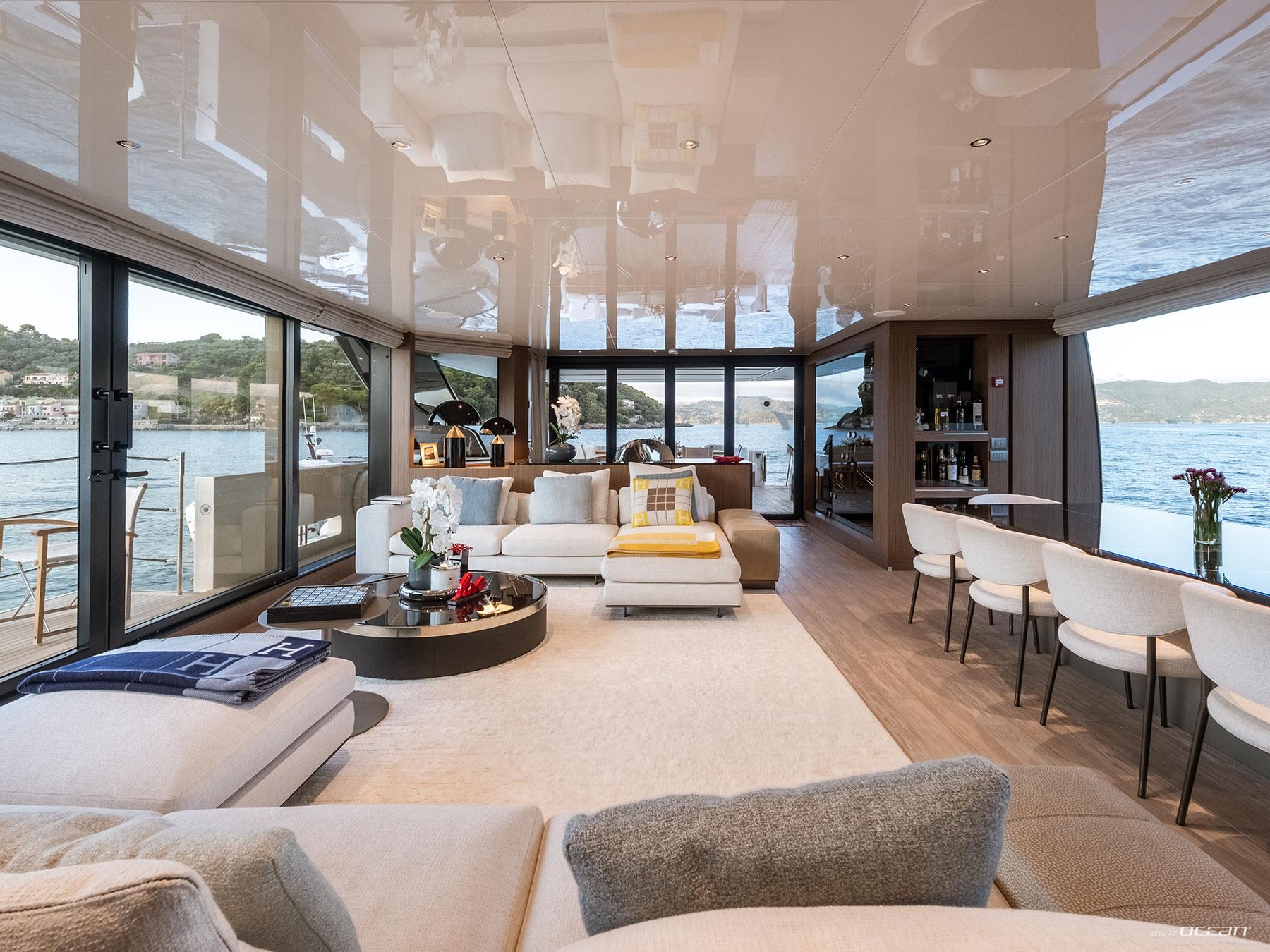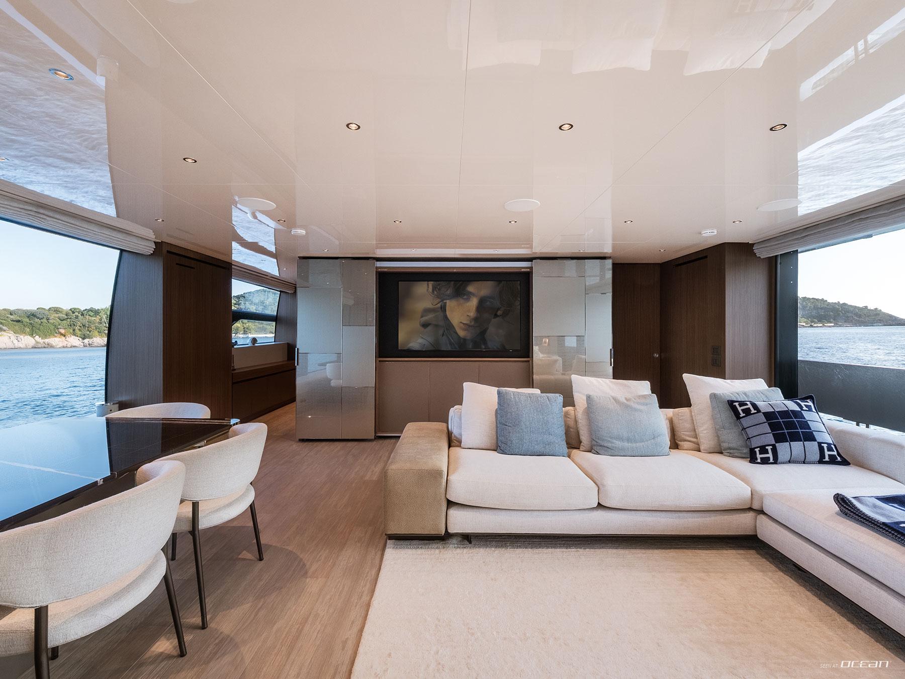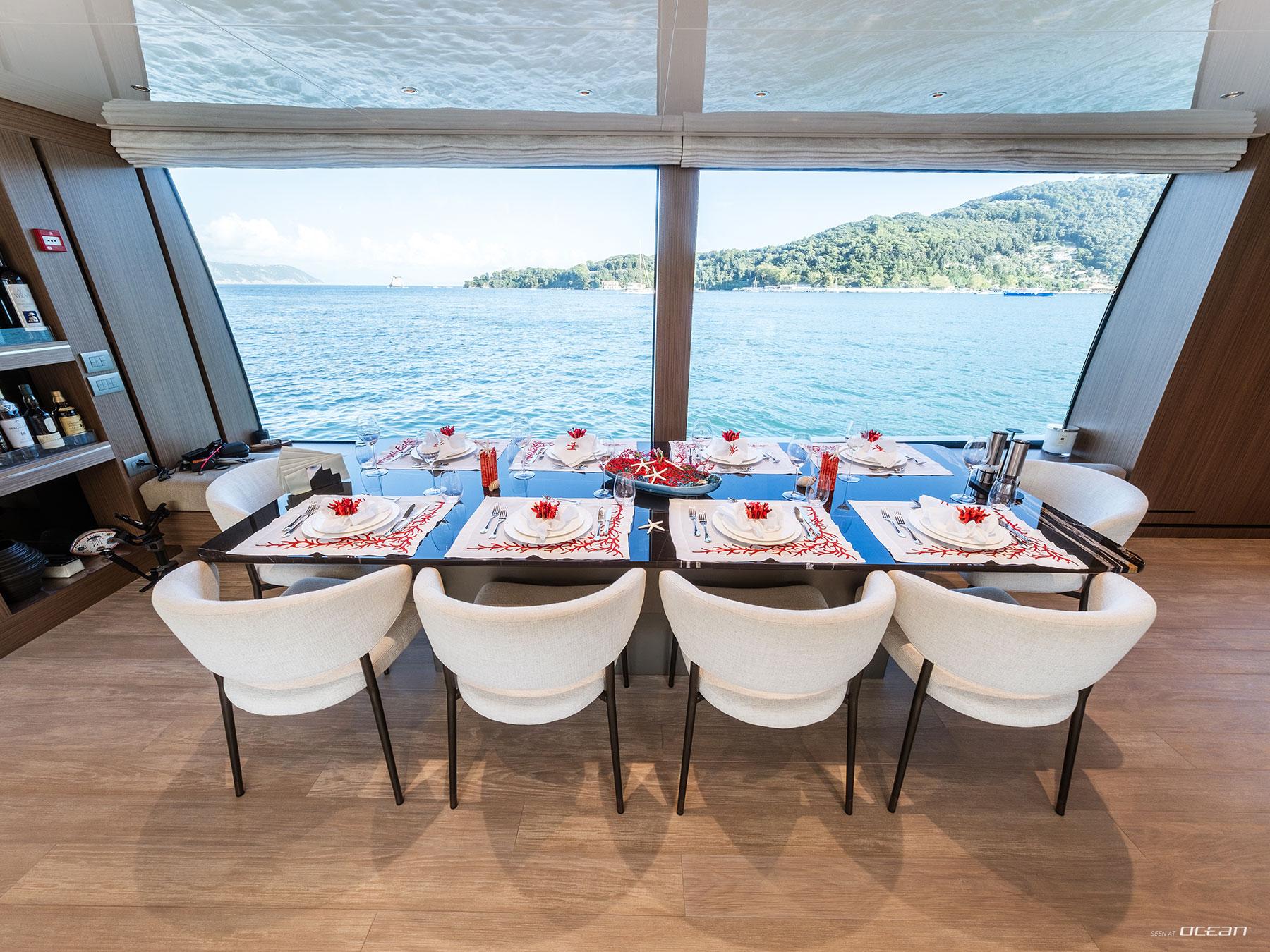 On board M/Y ARESYA for charter, every area is designed to enhance the connection with the surrounding seascape. Outdoor living unfolds across multiple levels, from the bow and foredeck lounges to the expansive flybridge, while the beach club aft creates a natural extension of life on the water. Generous proportions and thoughtful design create an effortless balance between privacy, relaxation, and social interaction.