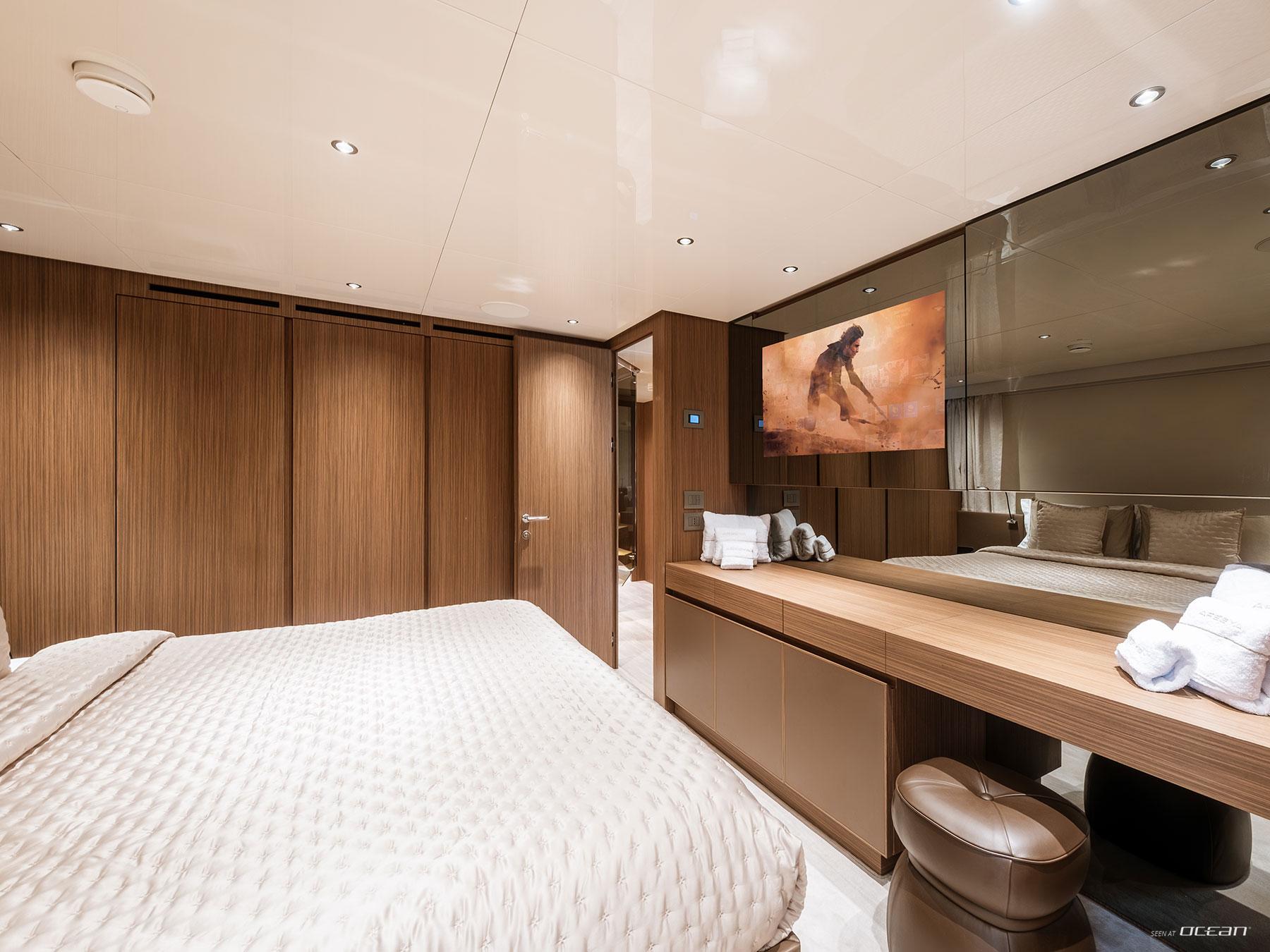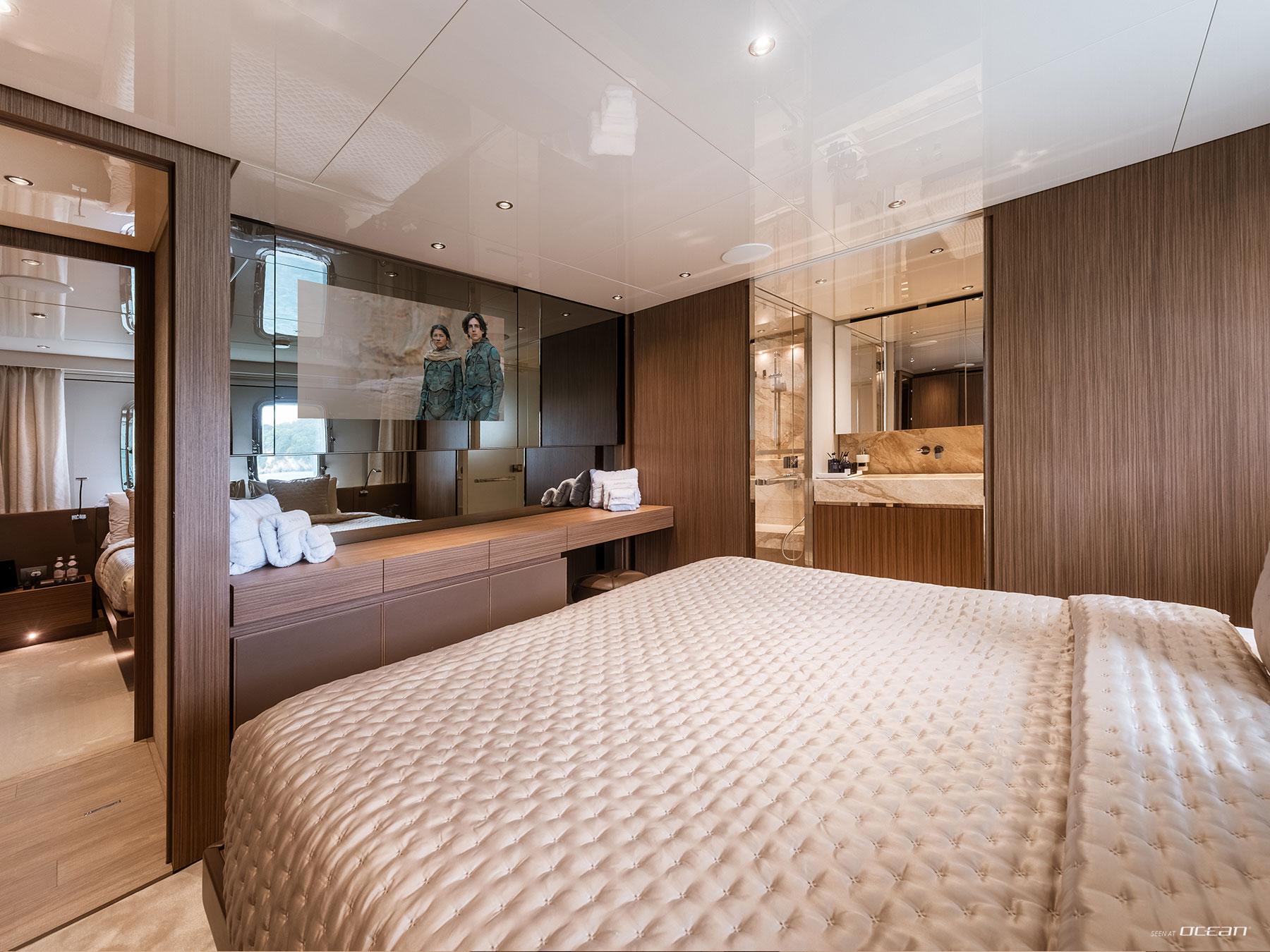 Up to 12 guests are welcomed on board Charter Yacht ARESYA across 5 well-appointed cabins, including a main deck master suite and a versatile lower deck arrangement with 2 doubles and 2 twin cabins with pullman beds. This configuration makes her particularly well suited for families and groups of friends. Each cabin offers ensuite facilities, smart TVs, Bluetooth sound systems, and Starlink Wi-Fi internet, while full stabilization ensures comfort both underway and at anchor.