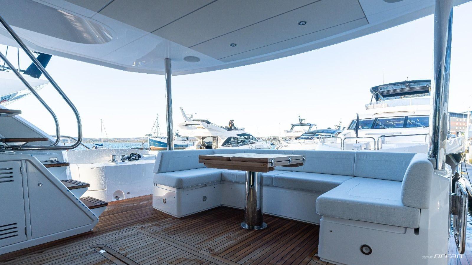 All cabins with en-suite bathrooms, air condition throughout, generator, stabilizers at anchor and underway, watermaker, Starlink, Wi-Fi internet, TV in salon and all cabins, Bluetooth sound system with outdoor speakers, beach club with electric Grill fitted in a drop-down workstation and fold-down platform seat, and a variety of water toys.