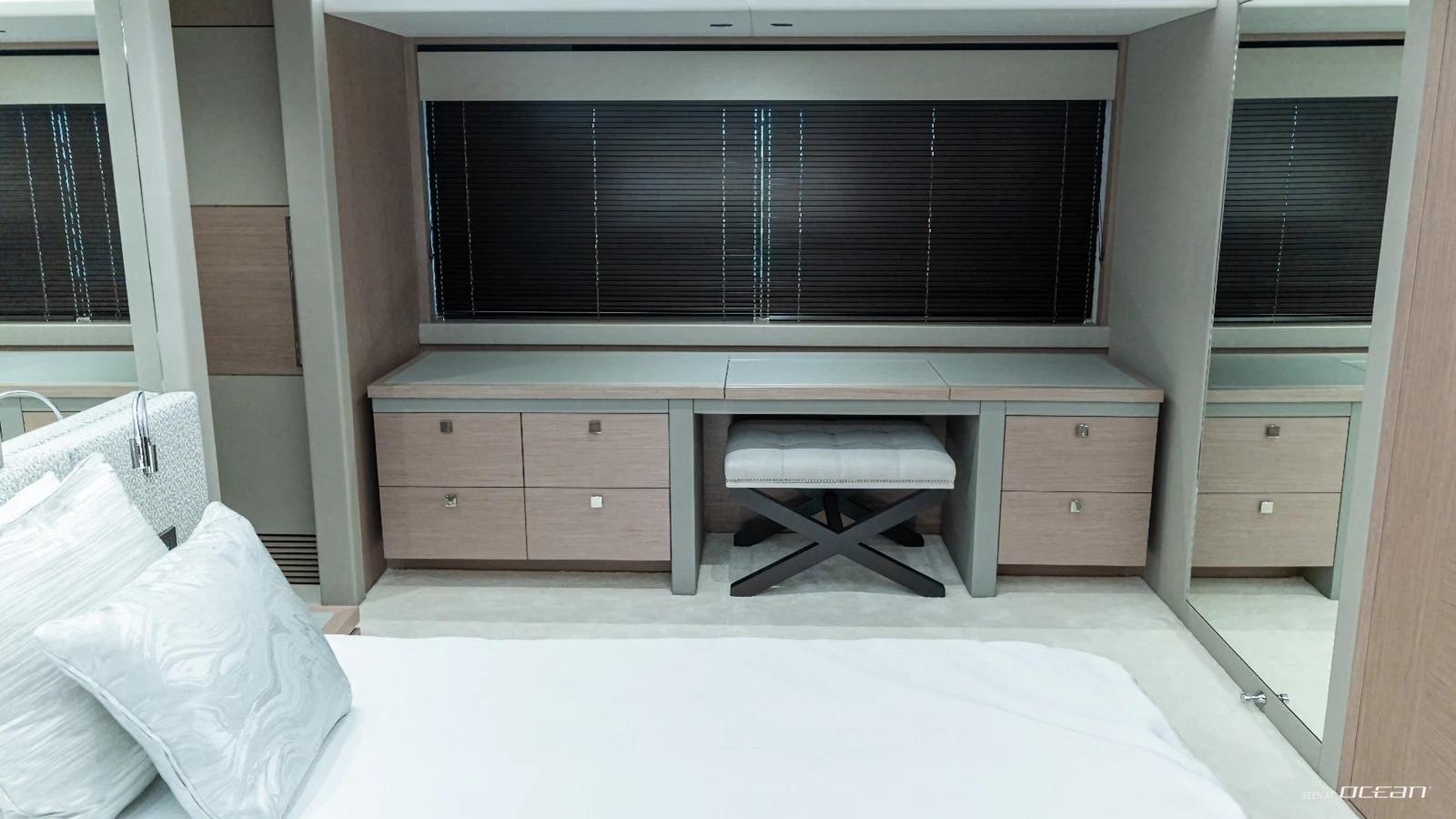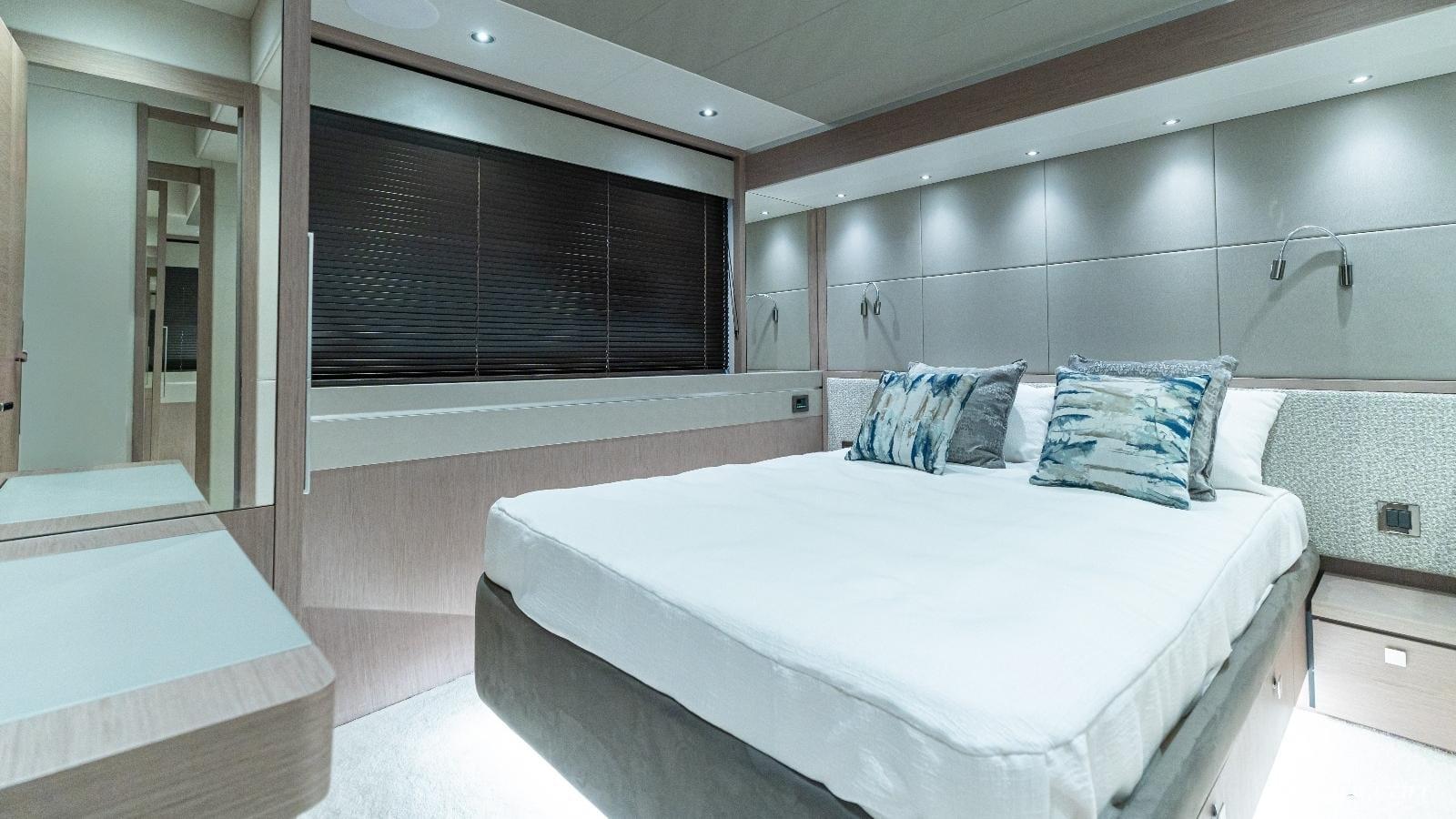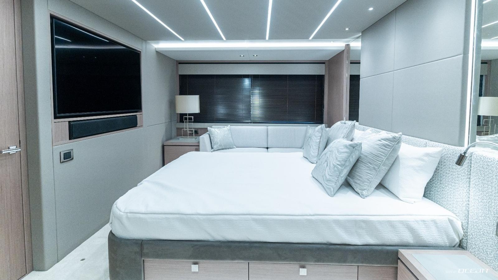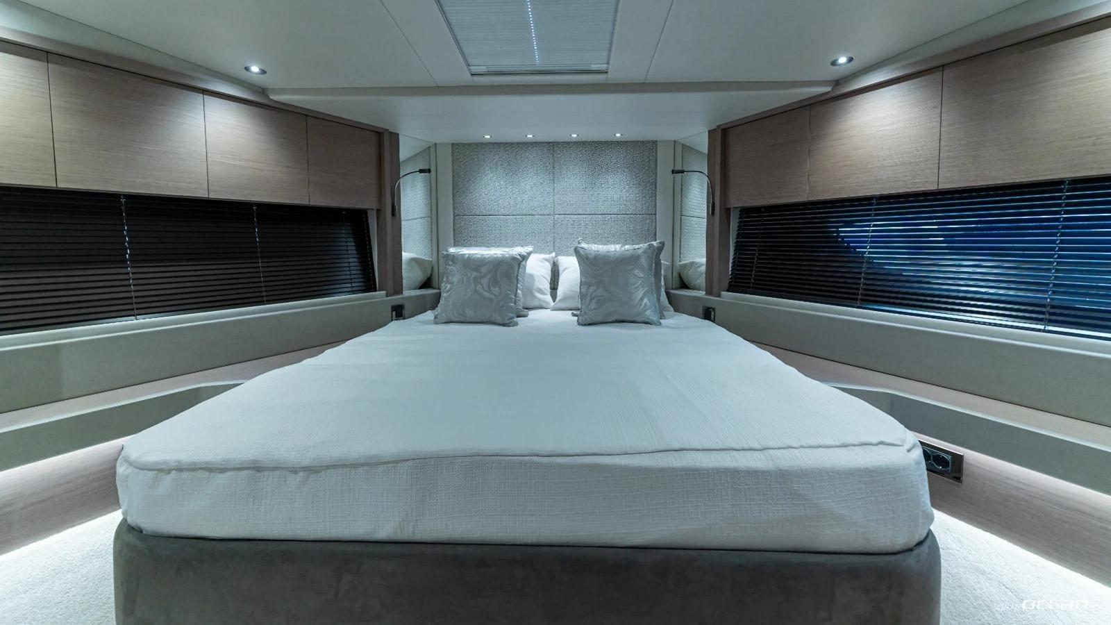 Accommodation on board Sunseeker M/Y ASCEND is arranged for up to 8 guests in 4 ensuite cabins, including a deluxe master stateroom, 2 VIP double cabins, and a convertible twin. Interiors are finished in a contemporary palette and filled with natural light, creating a relaxed and welcoming atmosphere. Fully child-friendly and equally suited to couples, ASCEND is stabilized both underway and at anchor, ensuring smooth cruising throughout the journey.