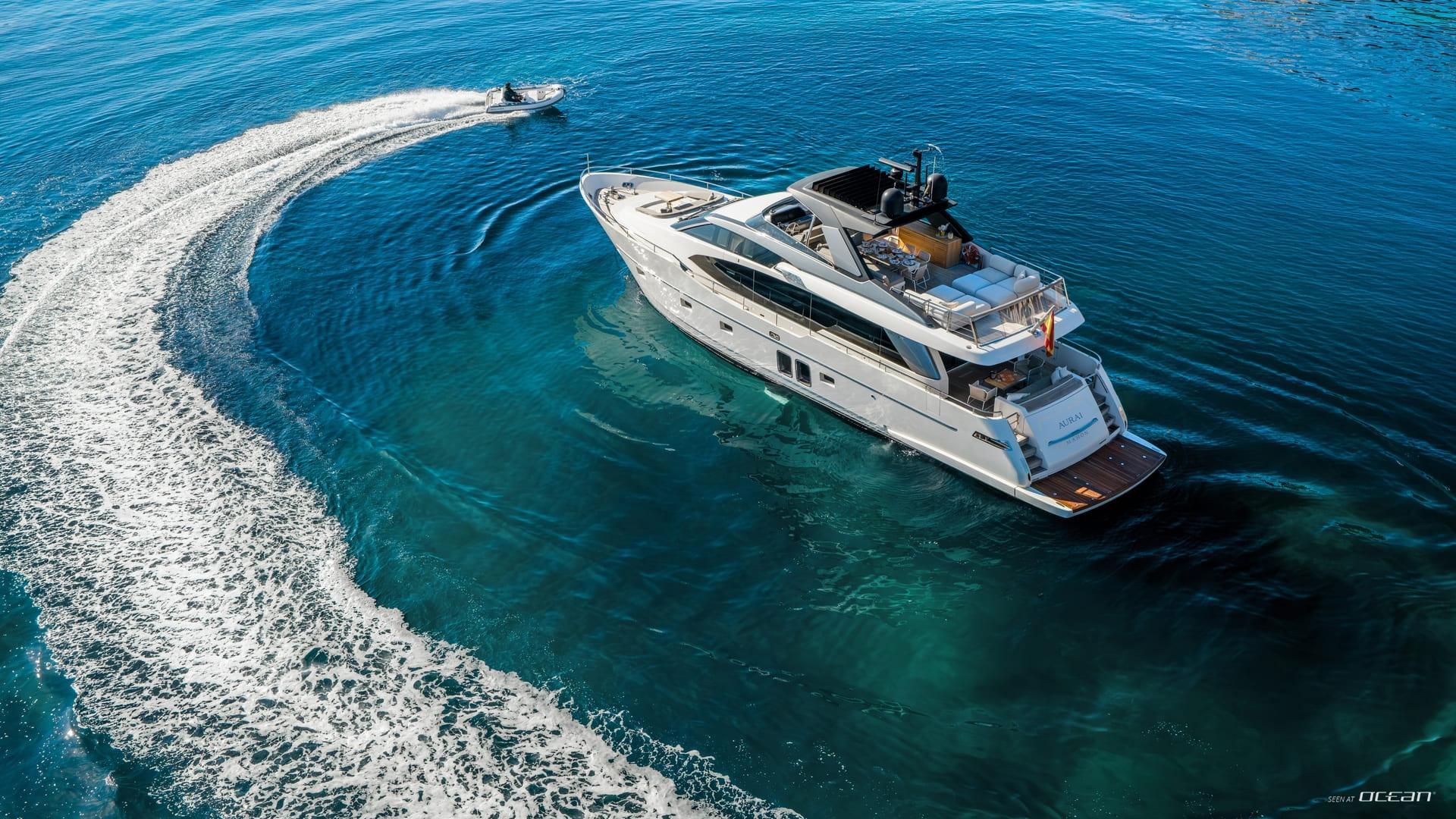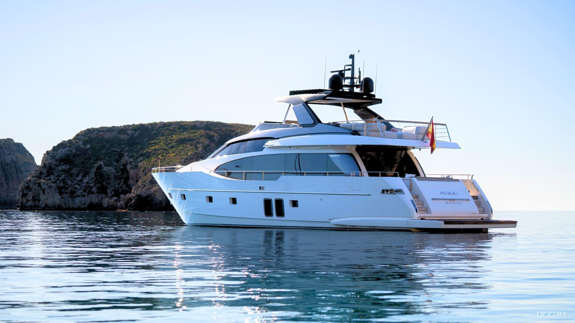 AURA enhances our Palma-based charter selection as a contemporary Sanlorenzo SL78 built in 2022, offering a refined approach to luxury motor yacht cruising in the Balearics. Known for her clean exterior lines and intelligent use of space, the SL78 reflects Sanlorenzo’s signature balance of design and functionality. Expansive windows and open living areas create a bright and inviting environment, perfectly suited for exploring Mallorca, Ibiza, and Formentera.
