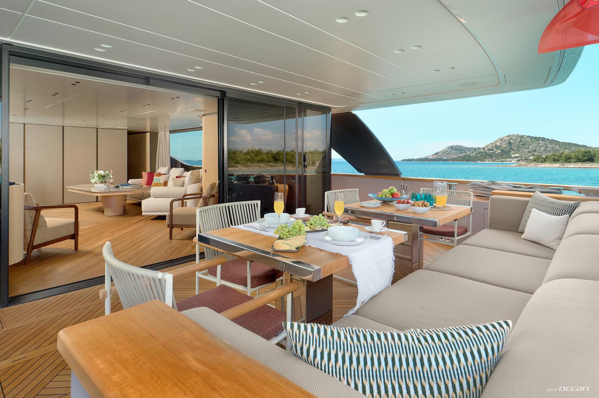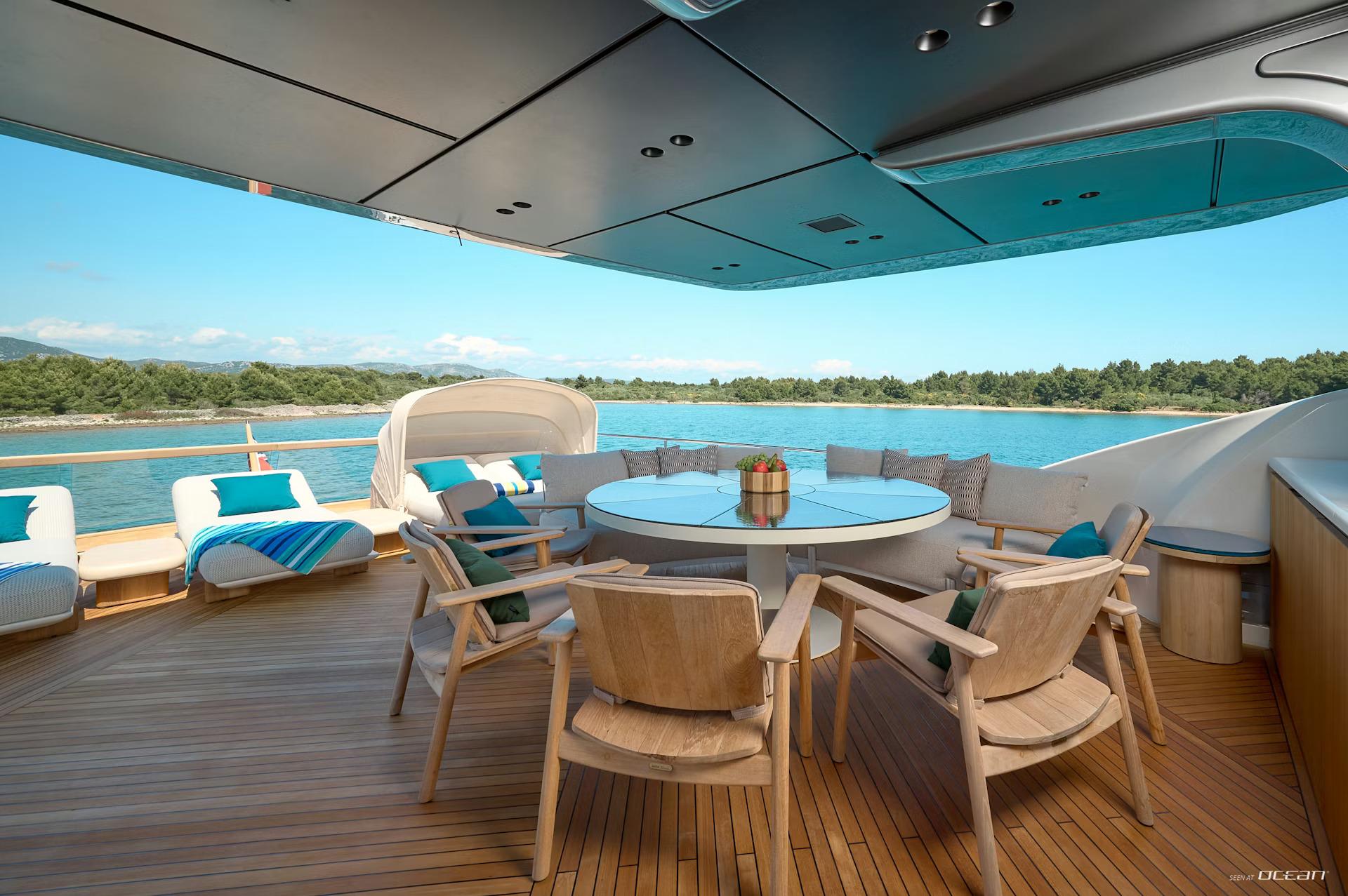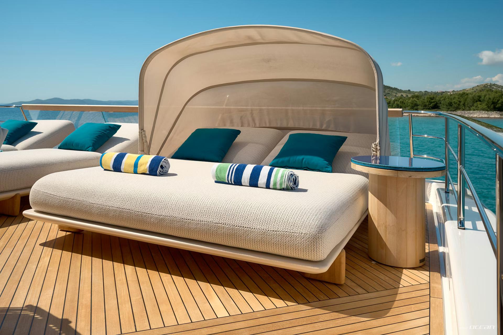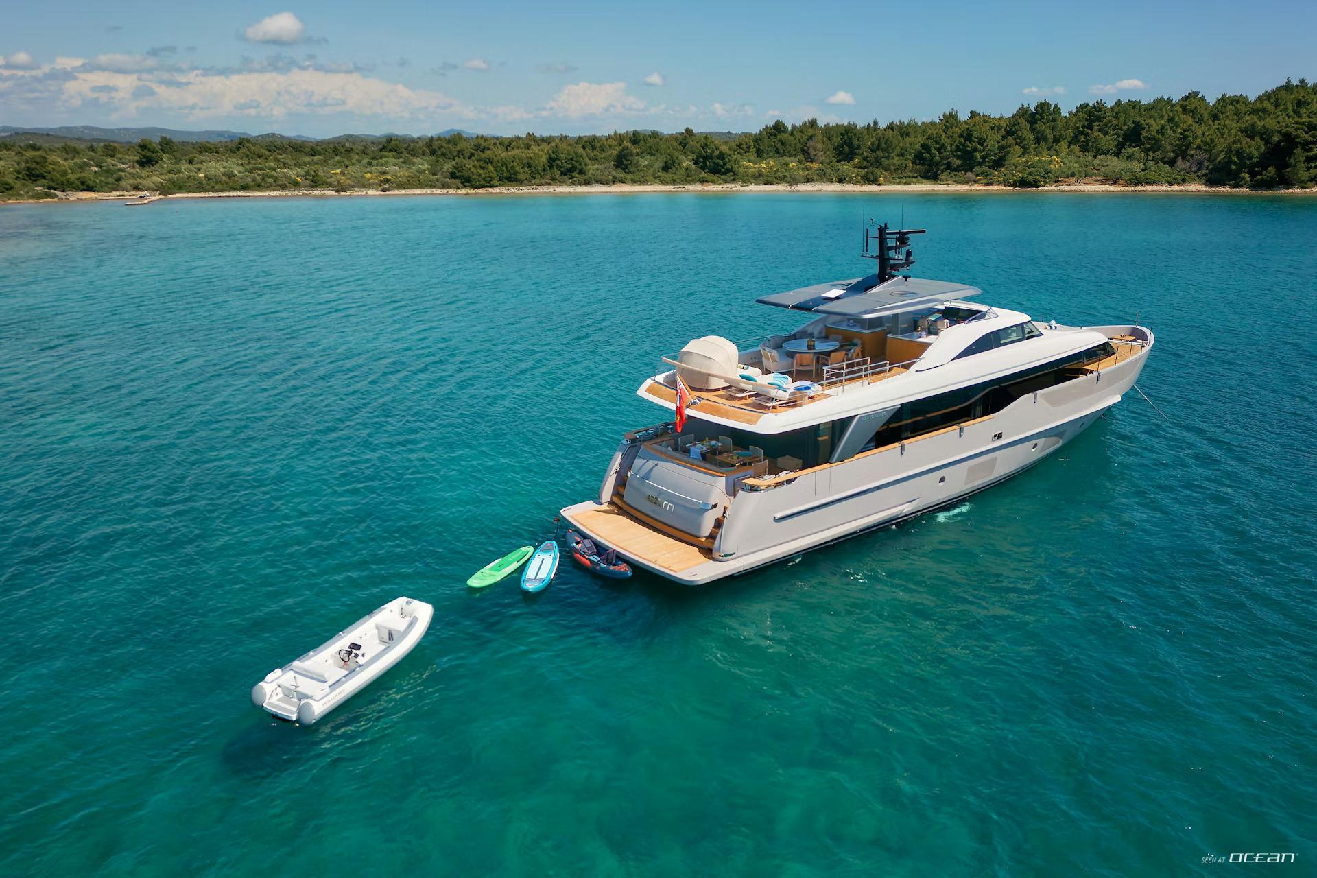 Sanlorenzo SD90 AZZURRI showcases the shipyard’s signature balance of volume, comfort, and understated style, paired with a layout that flows naturally between indoor and outdoor spaces. The main salon opens seamlessly onto the aft deck for shaded dining, while the foredeck and flybridge invite guests to unwind with sunpads, lounges, and open views across the coastline. Stabilizers underway and at anchor ensure smooth cruising throughout Croatia, while Starlink connectivity and advanced audio-visual systems keep life onboard effortlessly connected.
