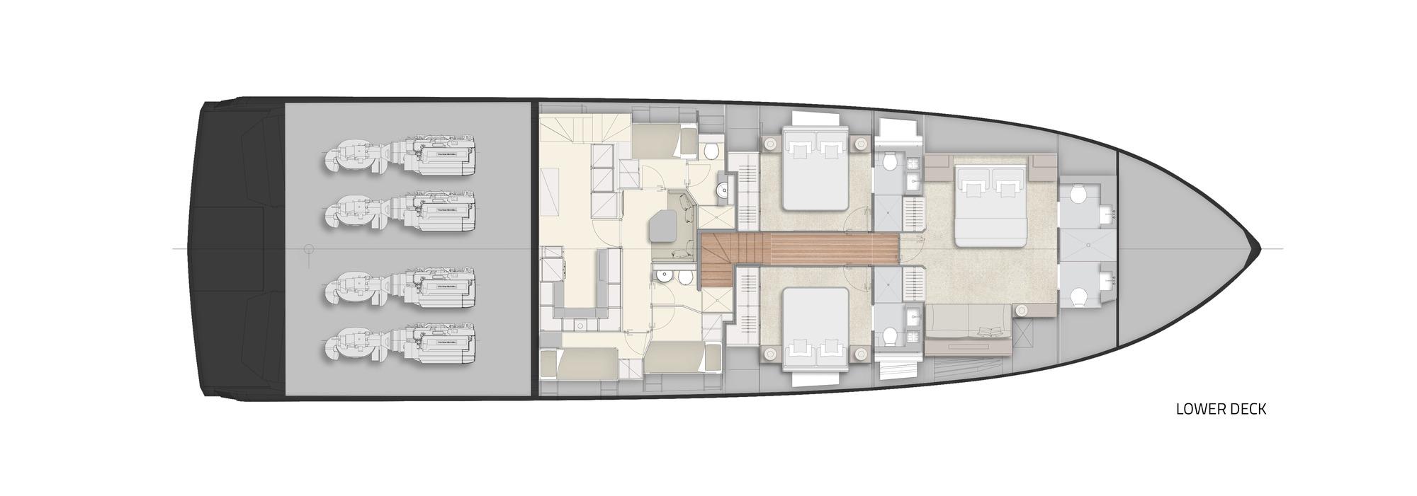BAD MUTHA was made for fun as much as finesse. Certified as an RYA Training Centre, guests can obtain their personal watercraft license directly on board. Her collection of water toys includes a jet-ski, seabobs, fliteboards, wakeboards, SUPs, and towables for thrill-seekers of all levels. After the action, unwind with her PS5 gaming setup, full gym gear, and the latest audio-visual entertainment systems powered by Starlink internet. BAD MUTHA yacht for charter is proof that power and play can live side by side in perfect balance.
