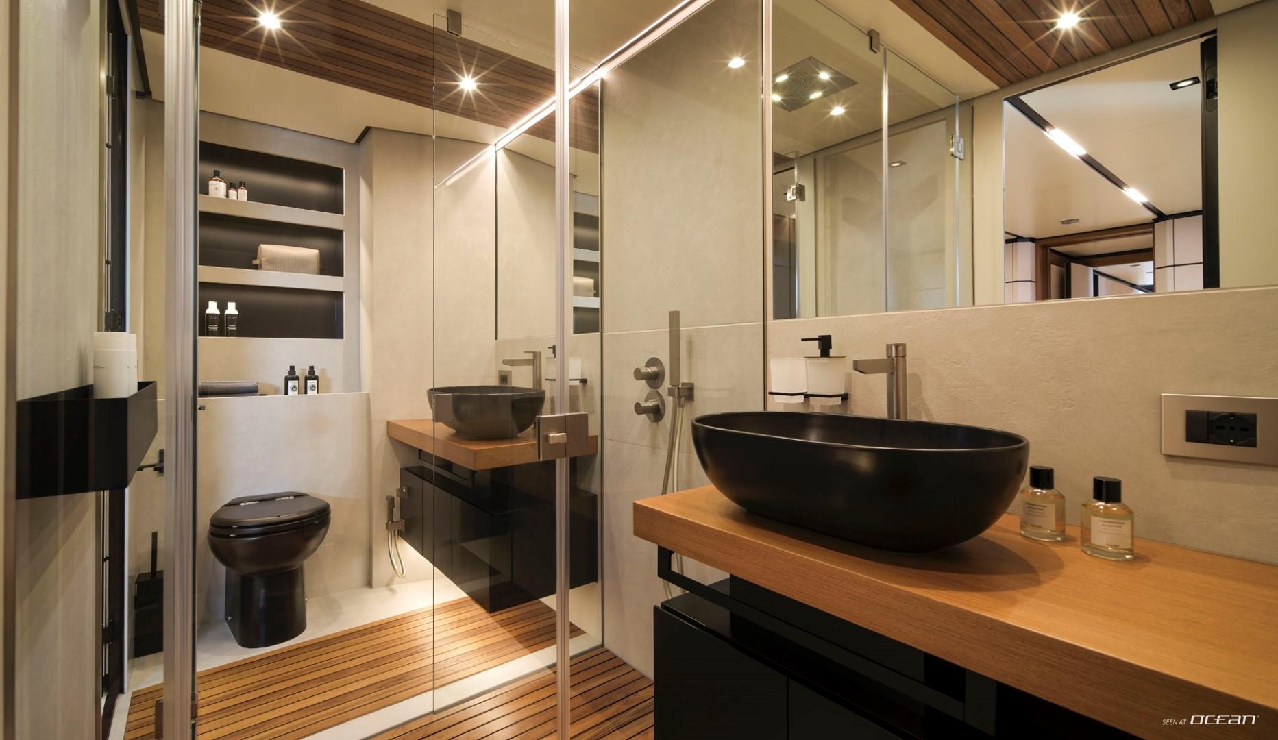 All cabins with en-suite bathrooms, air condition throughout, 2 generators, stabilizers at anchor, stabilizers underway, gym gear, jacuzzi, Wi-Fi internet, high standard audio video system with a centrally installed media server, and a centralized entertainment system. All luxury areas are provided with LED TVs and appropriate sound systems, all outside cushions and sun pads for generous sunbathing areas, beach club, hydraulic platform, and a variety of water toys.