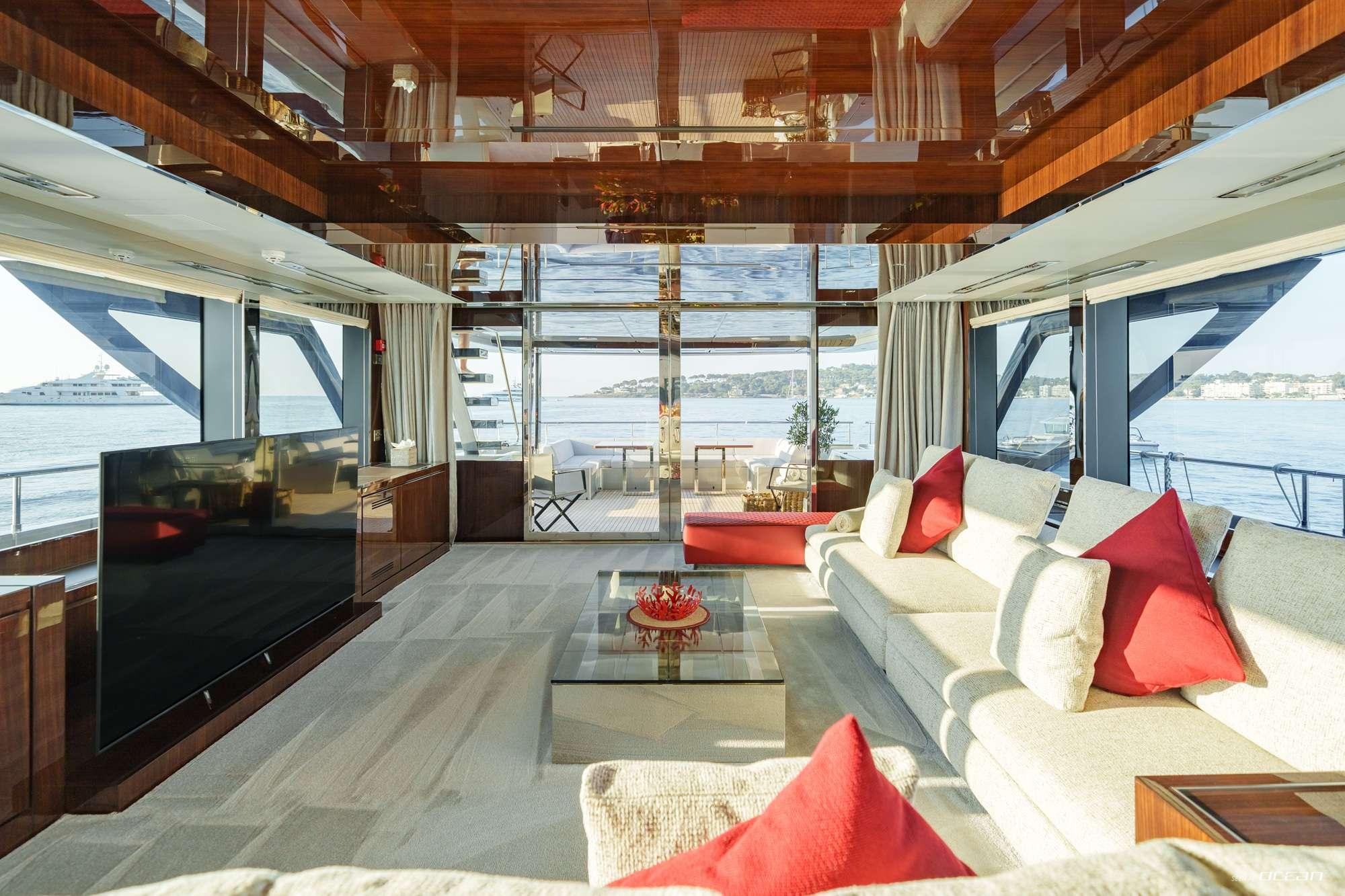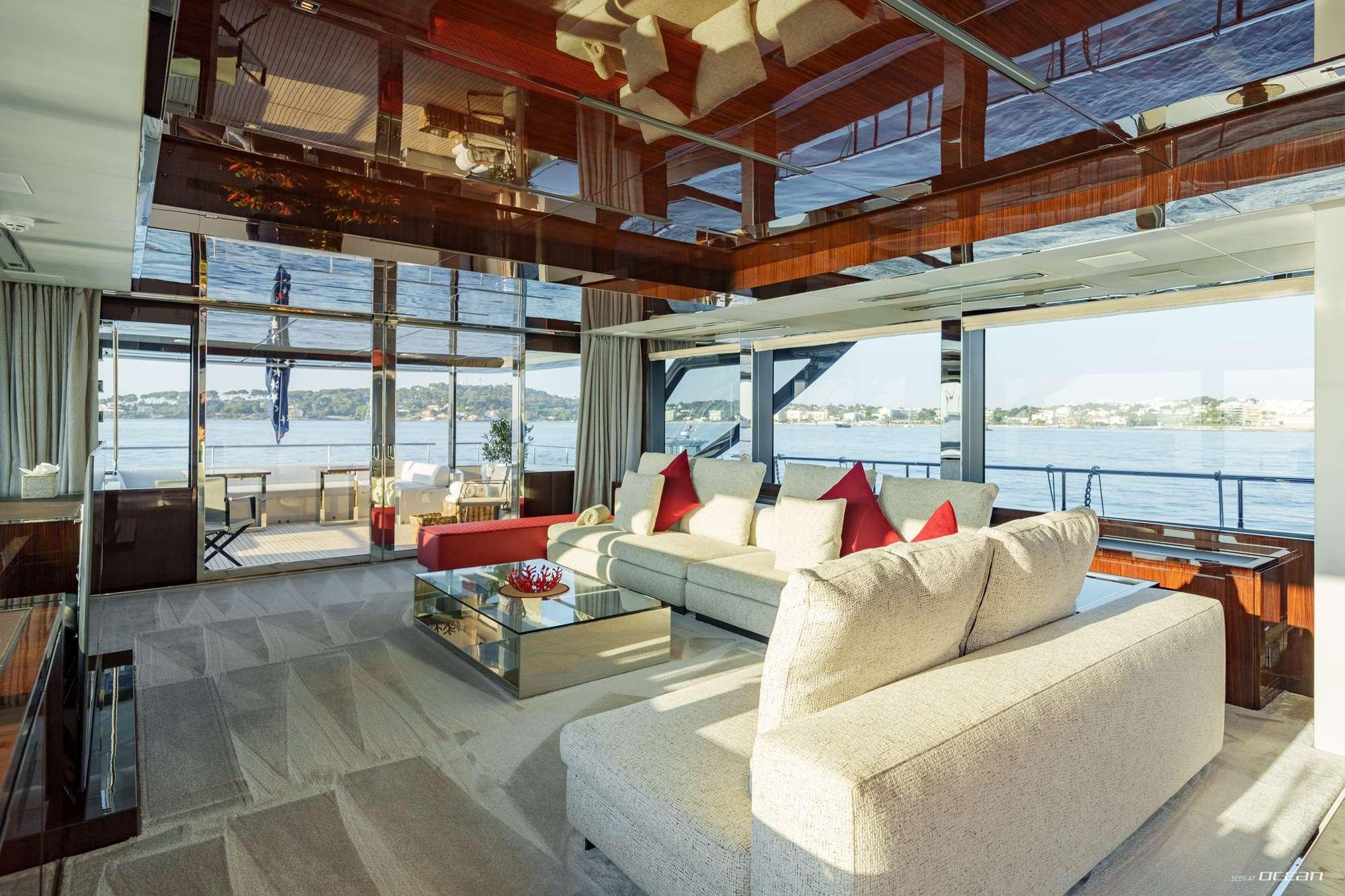 Step inside luxury yacht BELLA DONNA for charter, and you'll discover a sophisticated interior conceived by Officina Italiana Design. Defined by clean lines, high-gloss lacquered finishes, stainless steel accents, and luxurious textiles, the yacht’s living areas offer a chic, modern atmosphere. Floor-to-ceiling windows flood the salon with natural light, while sliding glass doors on both sides create a seamless flow between the interior and exterior. Every detail reflects Italian craftsmanship and cosmopolitan flair - a space that’s as inviting as it is elegant.