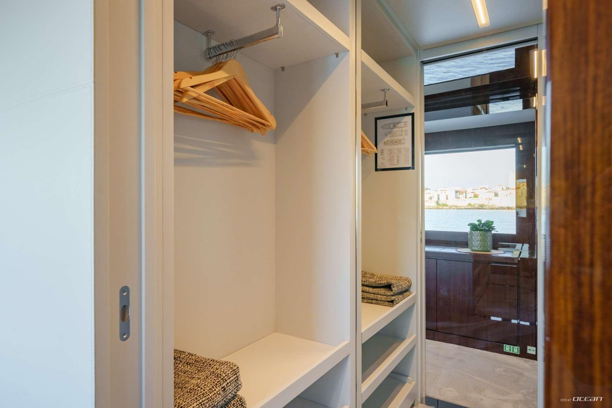 BELLA DONNA comfortably sleeps up to 11 guests in 5 well-appointed ensuite cabins. Her master suite is located forward on the main deck and features a king-size bed, double wardrobes, a walk-in closet, and a generous bathroom with his and hers sinks. Below deck, there are 2 VIP cabins, 1 double, and a twin that converts to a double with an extra pullman berth - perfect for families, couples or mixed charter groups. Stabilizers ensure smooth cruising both underway and at anchor, while a crew of 6, including an expert chef and seasoned captain, provides top-tier service leaving no wish unfulfilled.