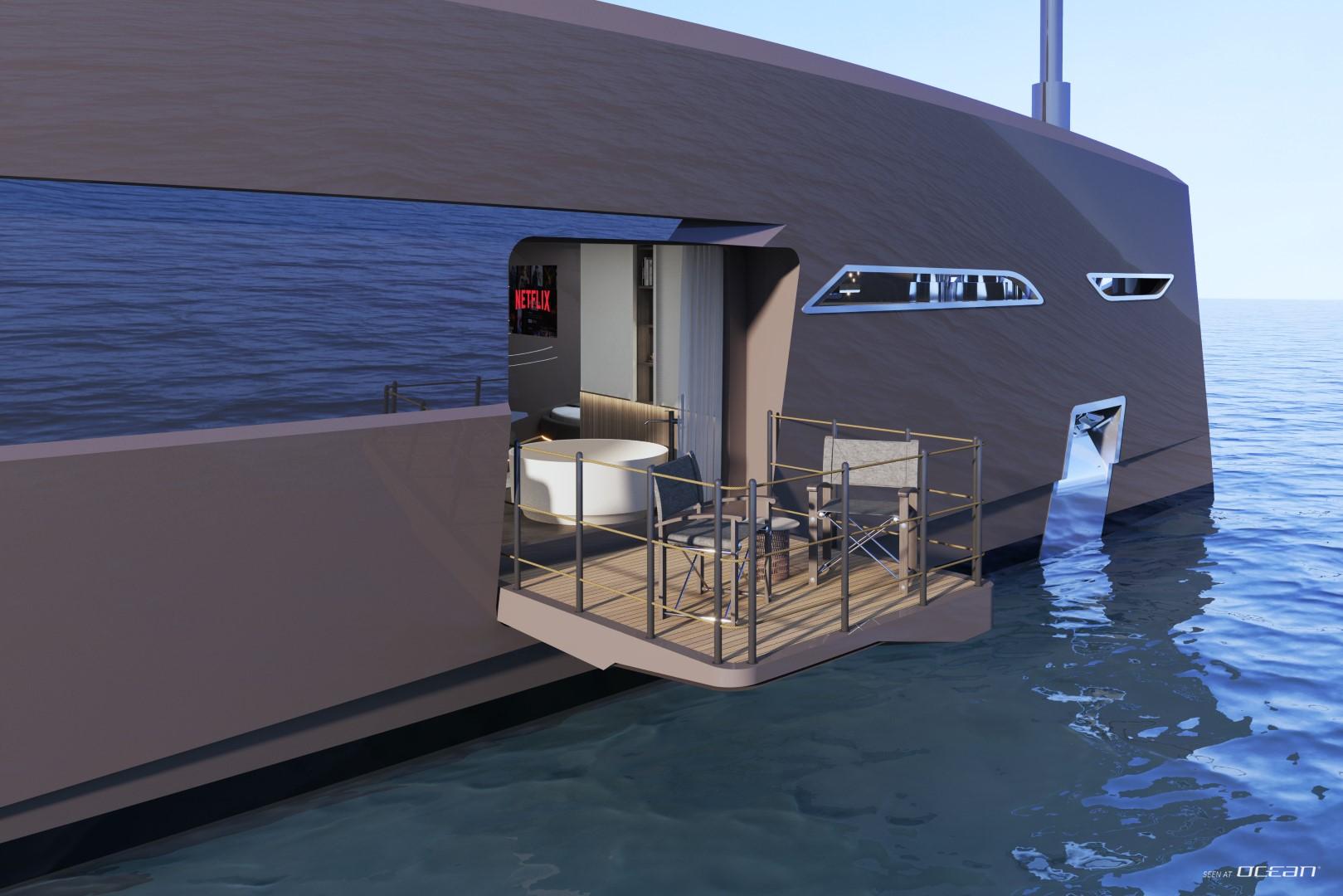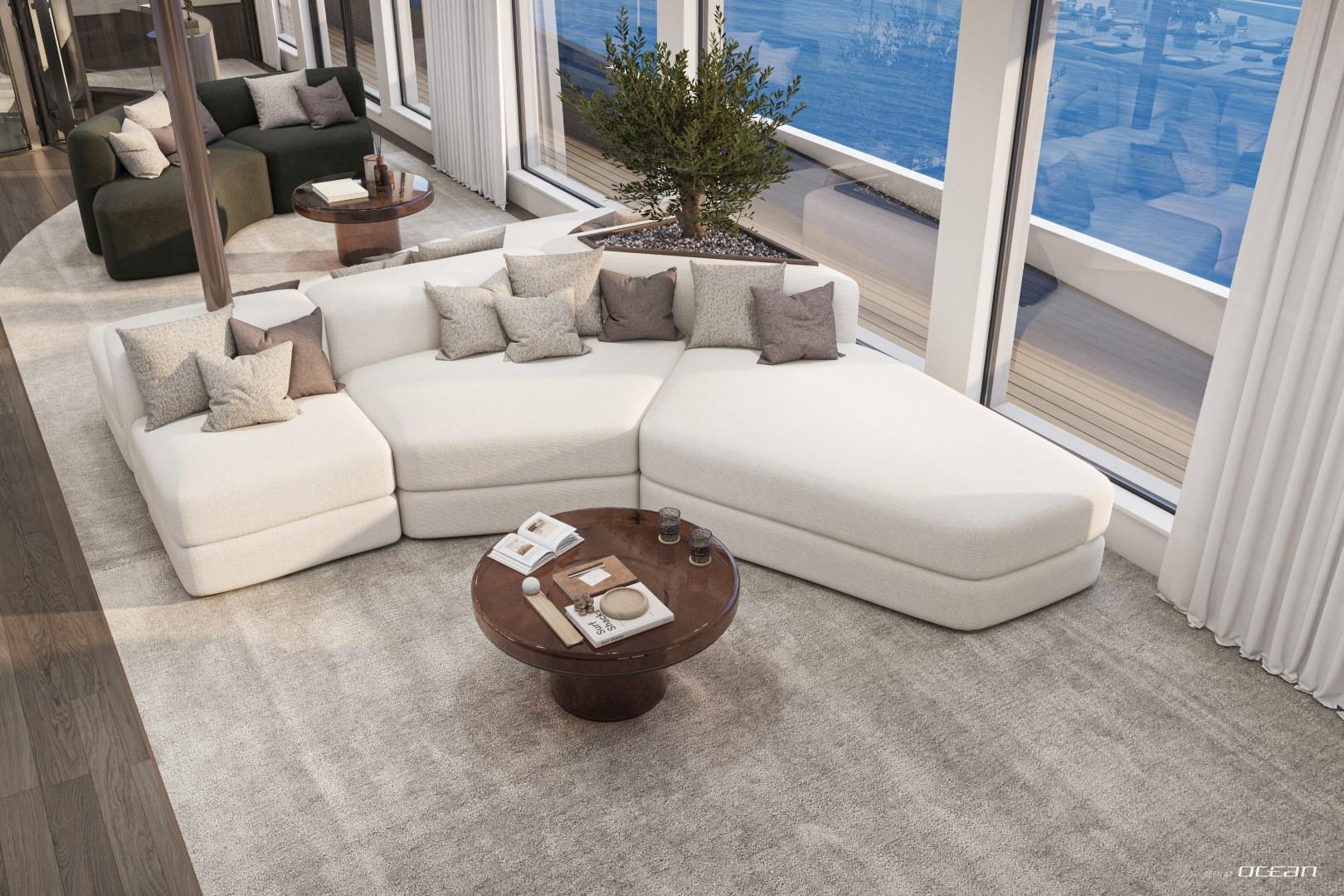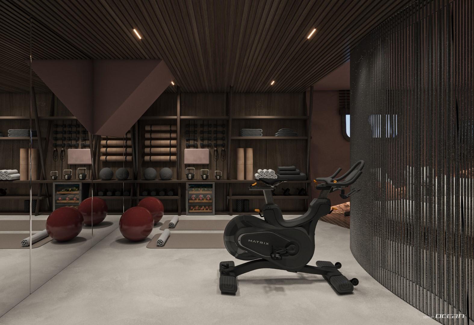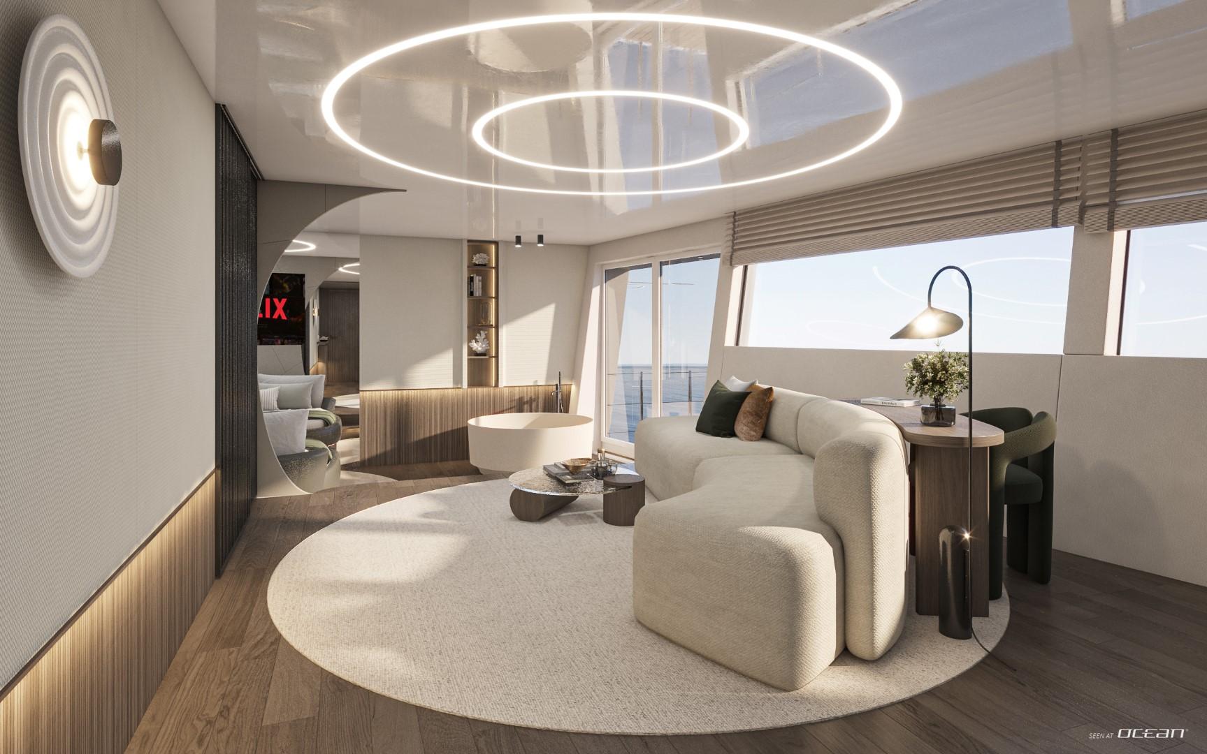 A glass elevator surrounded by a graceful spiral staircase connects every level, ensuring effortless access from the beach club to the sky deck. The spacious main saloon features a fold-out balcony and an open-plan dining area with panoramic views, creating a fluid connection between indoor and outdoor living. Wellness seekers will find complete indulgence on board - a dedicated spa with sauna, massage room, and beauty facilities complements an expansive whirlpool with waterfall and a fully equipped gym.