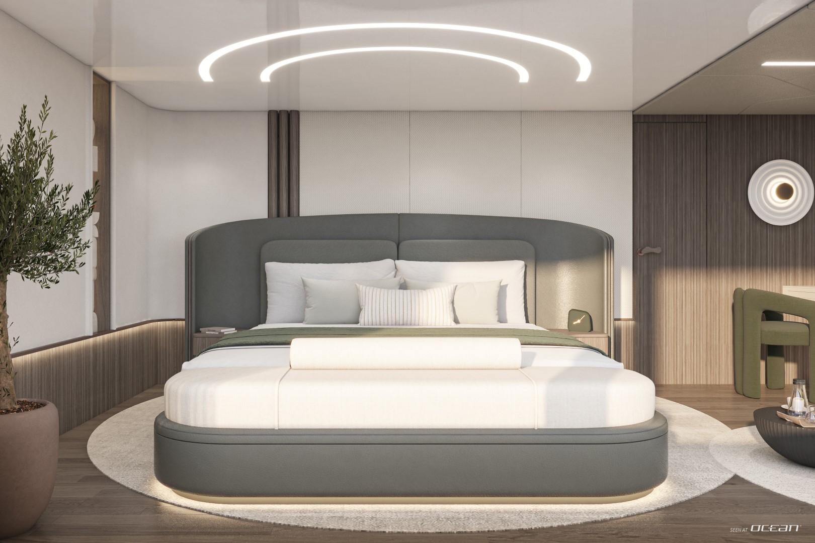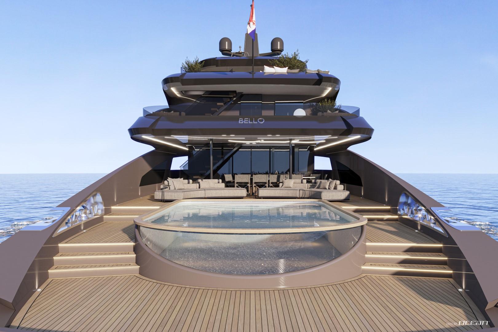 BELLO’s striking design blends bold exterior lines with serene interior refinement. Her tiered decks offer spectacular spaces to unwind - from an elegant beach club with an integrated pool to a foredeck Jacuzzi overlooking the horizon. A second pool on the upper deck invites relaxed gatherings under the sun. Inside, natural tones, soft lighting, and organic materials create a sophisticated yet welcoming ambiance that reflects contemporary yacht artistry at its finest.
