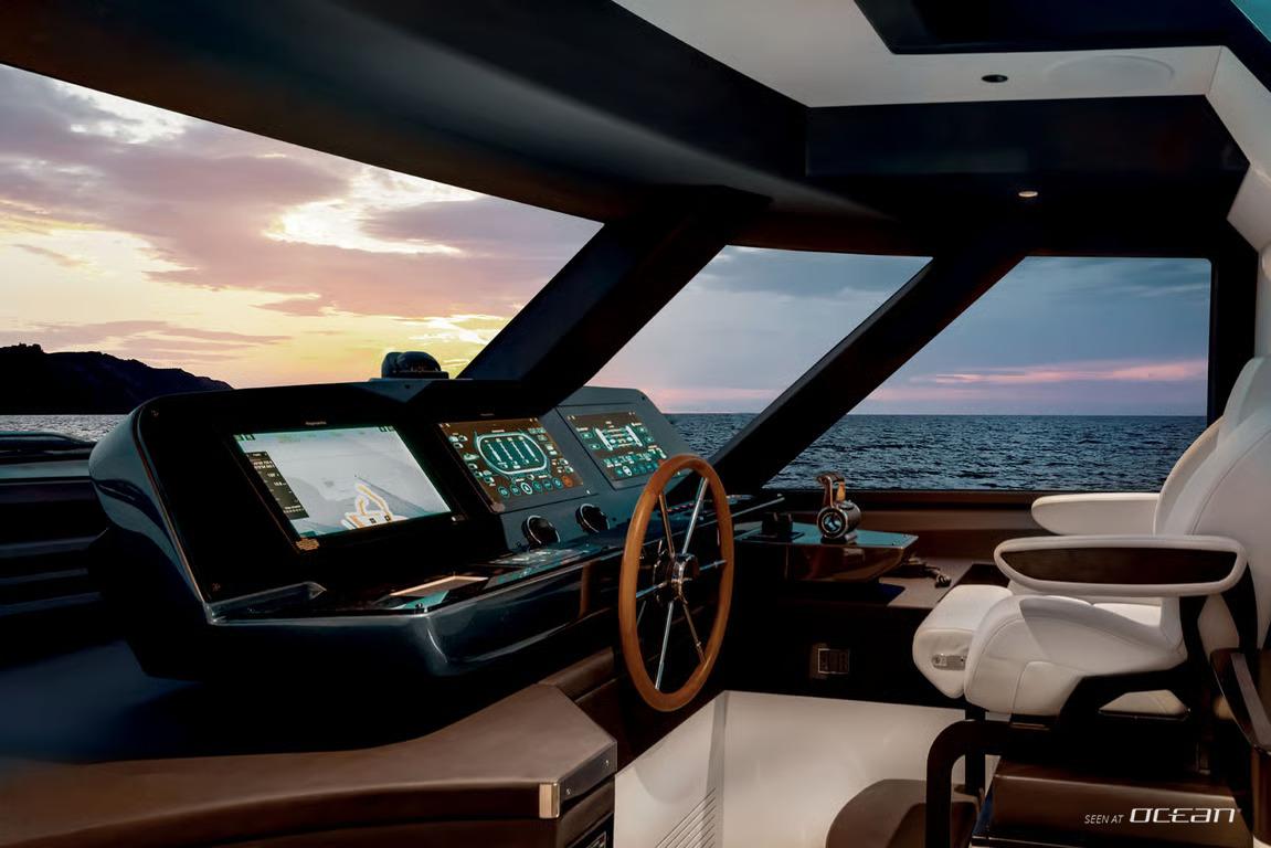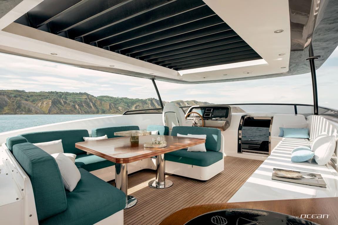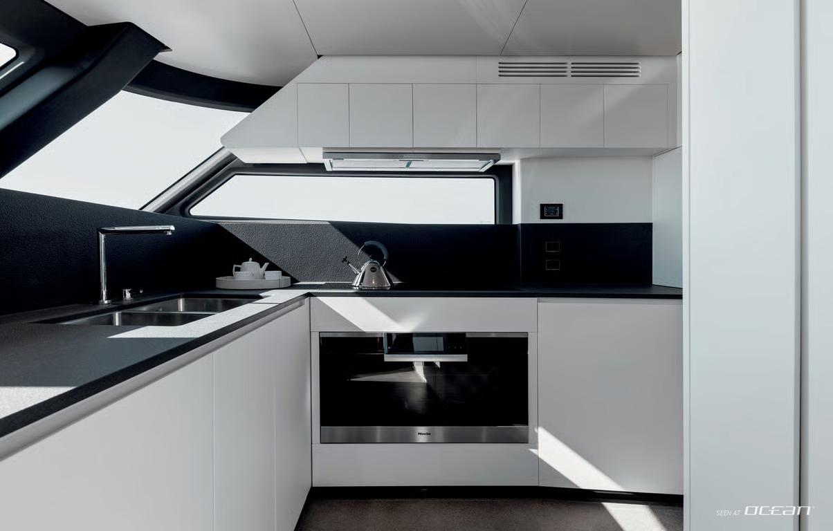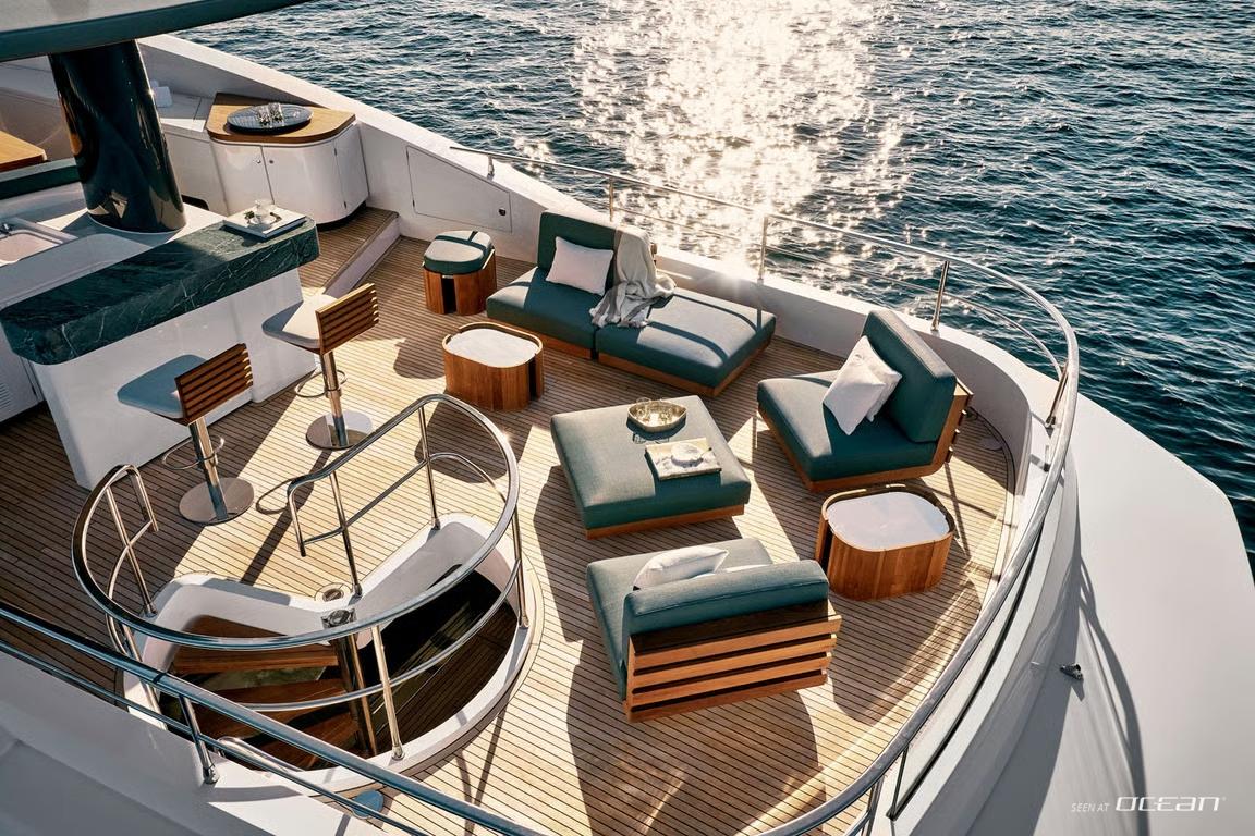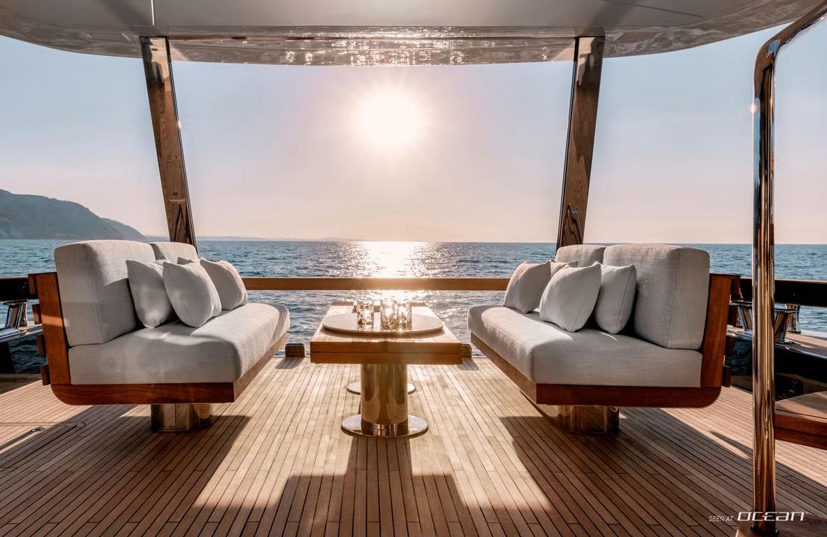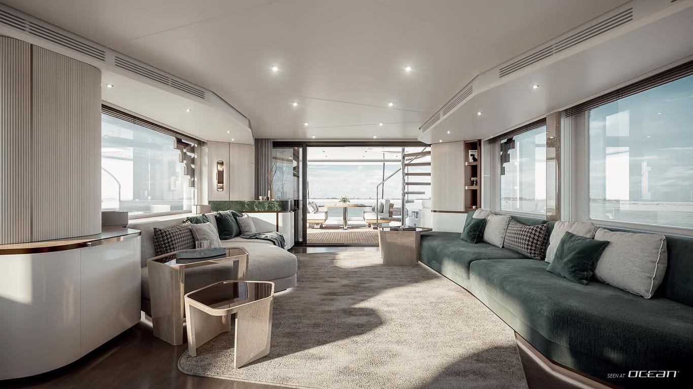 The interior design by Vincenzo De Cottis creates an inviting onboard atmosphere defined by light, space, and modern elegance. Soft marine tones, clean architectural lines, and expansive panoramic windows flood the main deck with natural light, enhancing the sense of openness throughout. Carefully selected materials balance refined aesthetics with practical durability, making BLUE EYES a welcoming retreat for relaxed charter living.