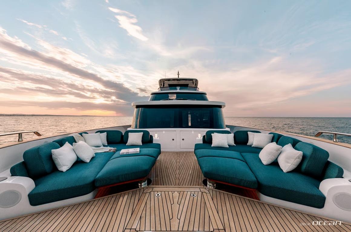 Stabilizers both underway and at anchor, combined with dynamic positioning, ensure exceptional comfort while cruising or at rest. Exterior deck spaces invite leisurely dining and sunbathing, while a fast tender, jet ski, seabobs, stand-up paddleboards, and an inflatable swim platform add playful energy to every day on the water. Supported by a professional crew of 4, BLUE EYES luxury charter yacht in Italy delivers a refined Naples and Amalfi Coast yachting experience shaped by style, ease, and effortless enjoyment.