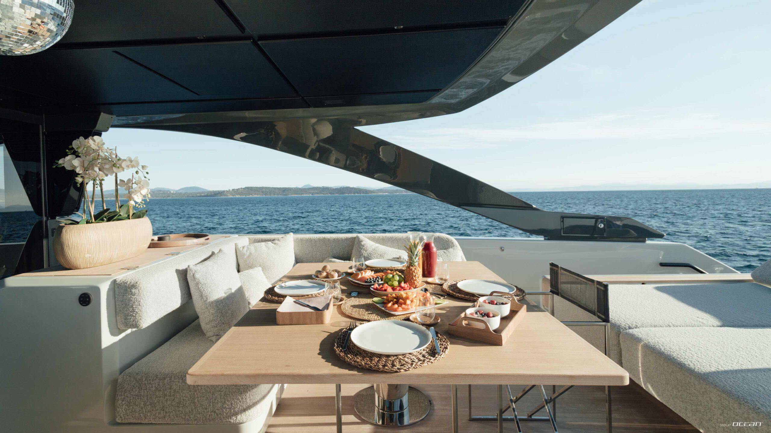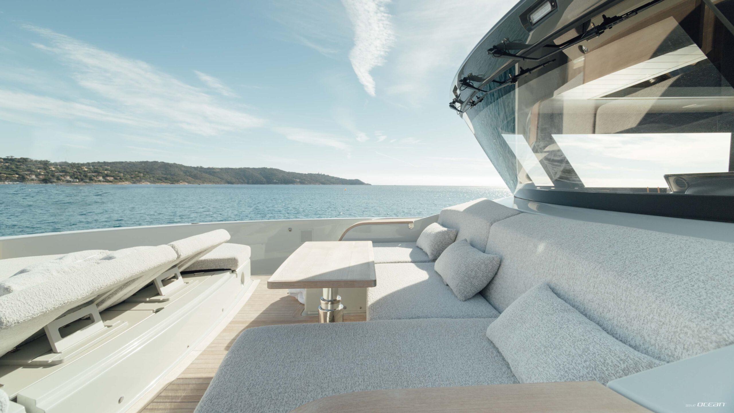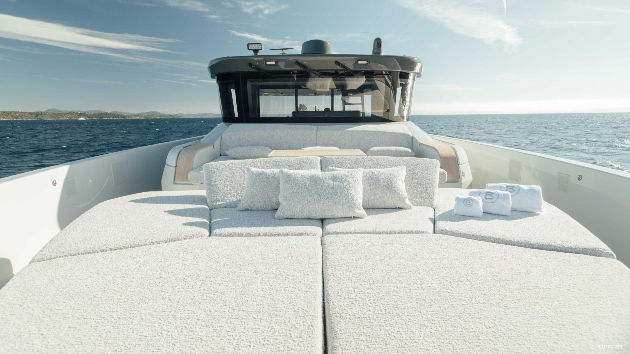 Outdoor life unfolds around the Bluegame beach club concept, offering direct access to the water and seamless launching of seabobs and standup paddleboards. Gym equipment and a BBQ complete the onboard lifestyle, ideal for relaxed days at anchor. With a professional crew of captain and stewardess delivering attentive service, BLUEGAME BG74 for charter cruises the Côte d’Azur, Corsica, and Sardinia with ease, delivering a polished French Riviera luxury yacht charter experience defined by design, freedom, and modern elegance.
