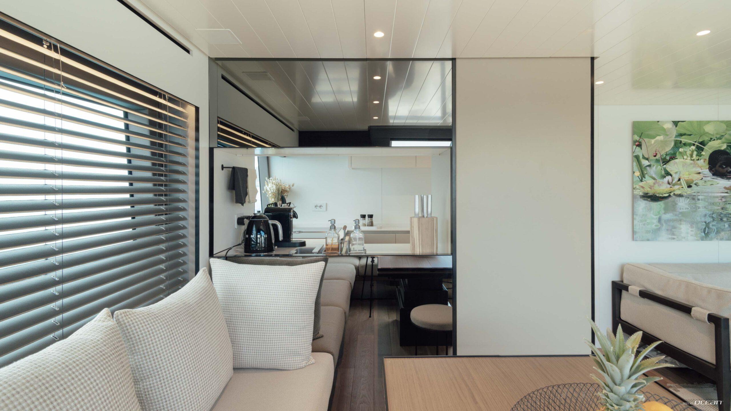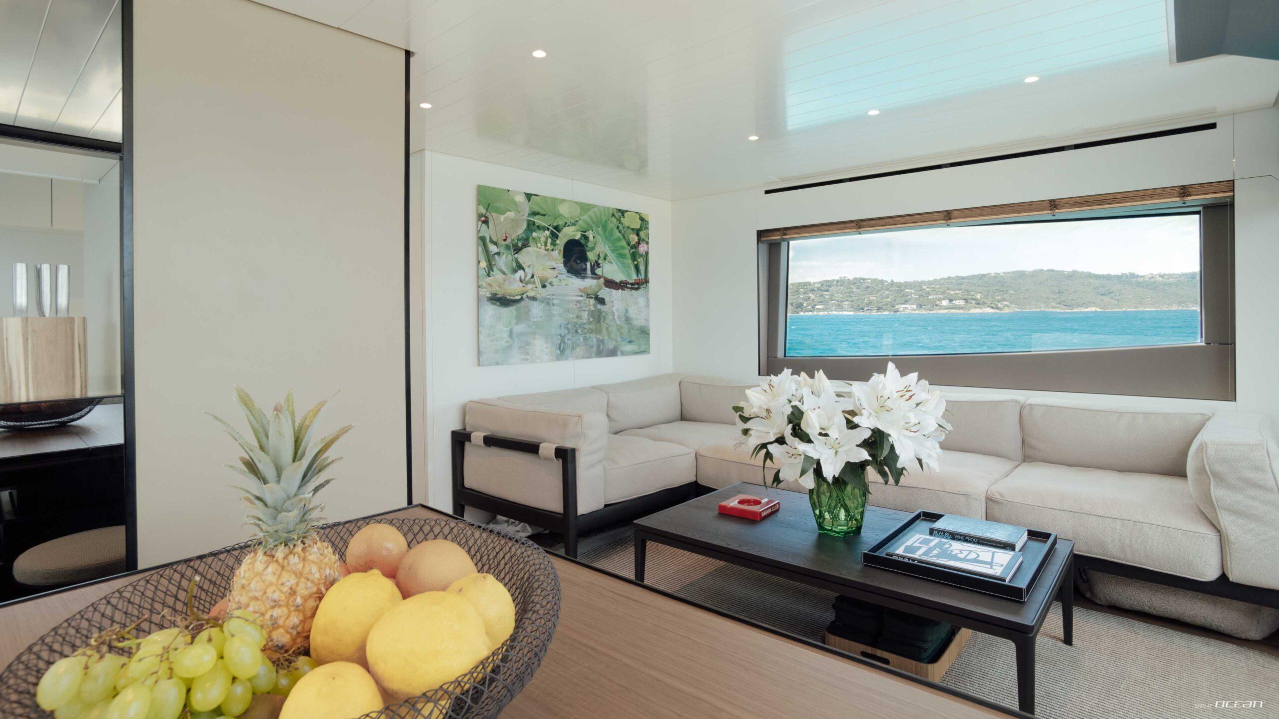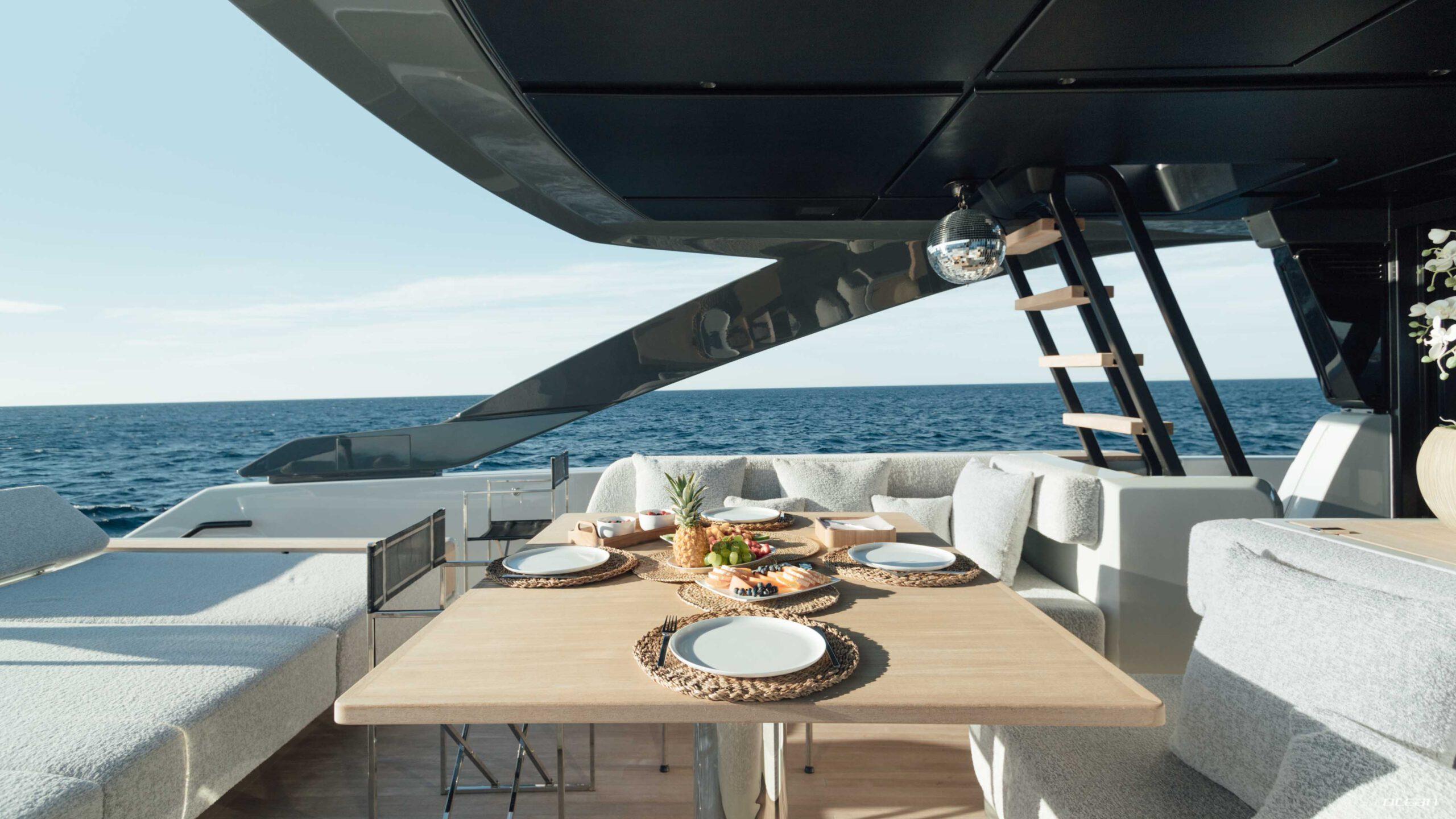 Outdoor life unfolds around the Bluegame beach club concept, offering direct access to the water and seamless launching of seabobs and standup paddleboards. Gym equipment and a BBQ complete the onboard lifestyle, ideal for relaxed days at anchor. With a professional crew of captain and stewardess delivering attentive service, BLUEGAME BG74 for charter cruises the Côte d’Azur, Corsica, and Sardinia with ease, delivering a polished French Riviera luxury yacht charter experience defined by design, freedom, and modern elegance.