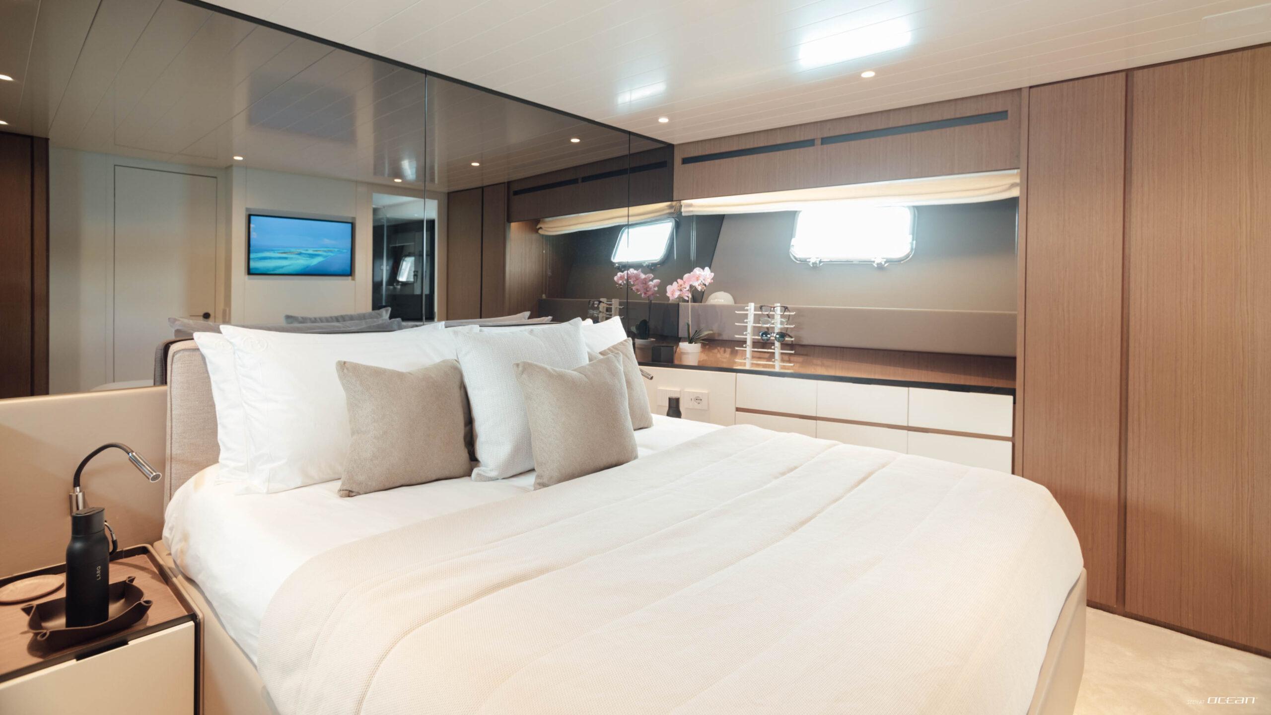 M/Y BLUEGAME BG74 welcomes up to 6 guests in 3 elegant double cabins, including a forward master stateroom and 2 versatile guest cabins that convert between double and twin layouts. This adaptable arrangement suits couples, families, or honeymooners seeking a private and intimate charter experience. Each cabin is equipped with ensuite bathroom facilities, smart TVs with Netflix, and Starlink internet, ensuring a high level of comfort throughout the journey.