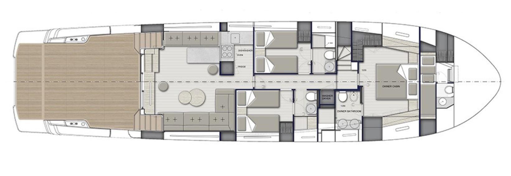 Cabin configuration: 1 master, and 2 twin (convertible) cabins