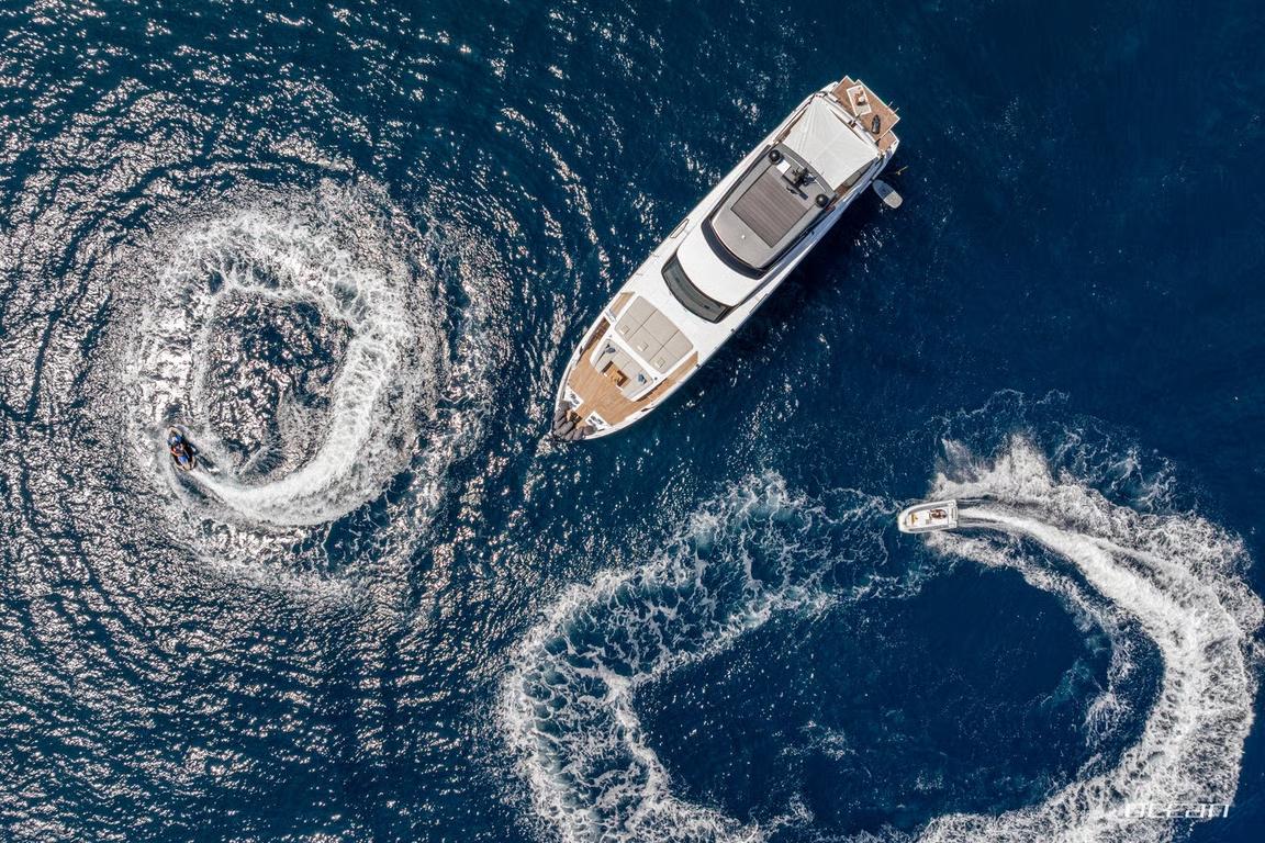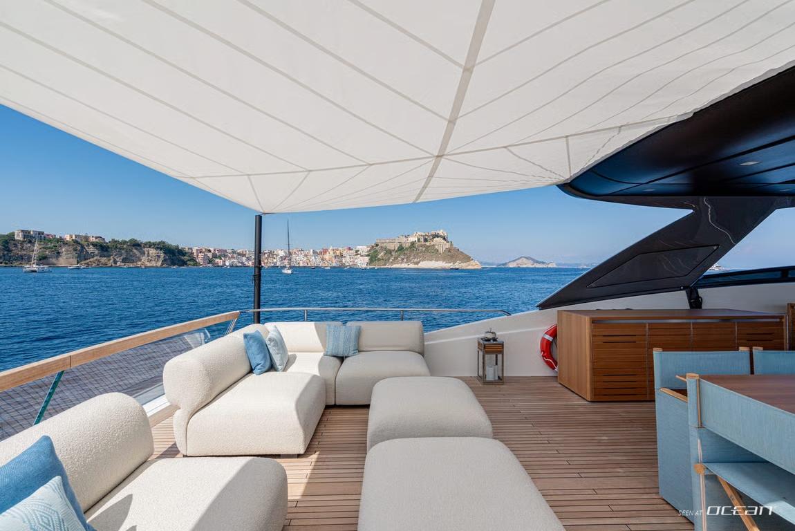 Adventure and fun are always within reach aboard CATCH ME. Her selection of water toys includes a seabob and an eFoil, providing excitement out on the water. The exceptional crew of 4 delivers impeccable service, ensuring a bespoke Luxury Yacht Charter Naples and Amalfi Coast experience tailored to every guest’s needs. She also features a stunning flybridge with spectacular seascapes and a retractable hardtop bimini, perfect for enjoying the sun or relaxing in the shade.