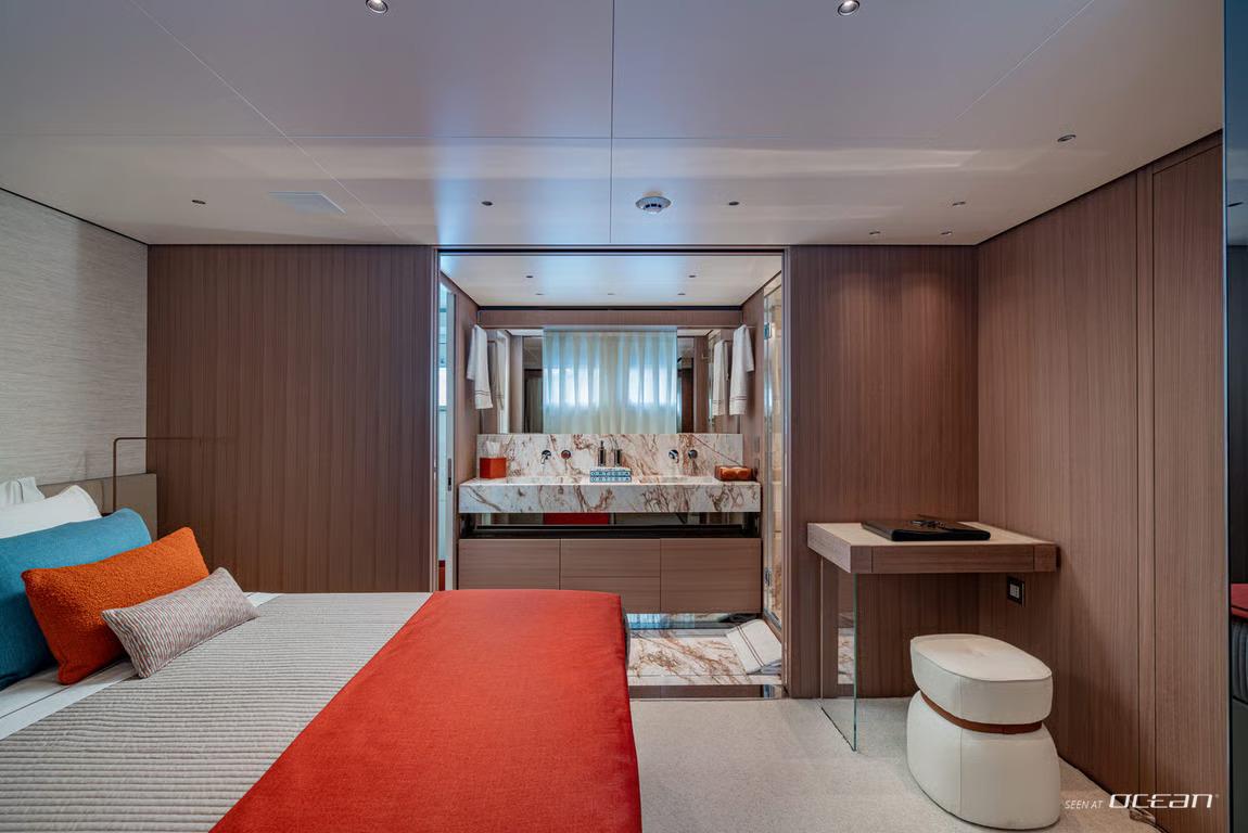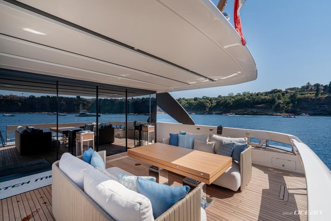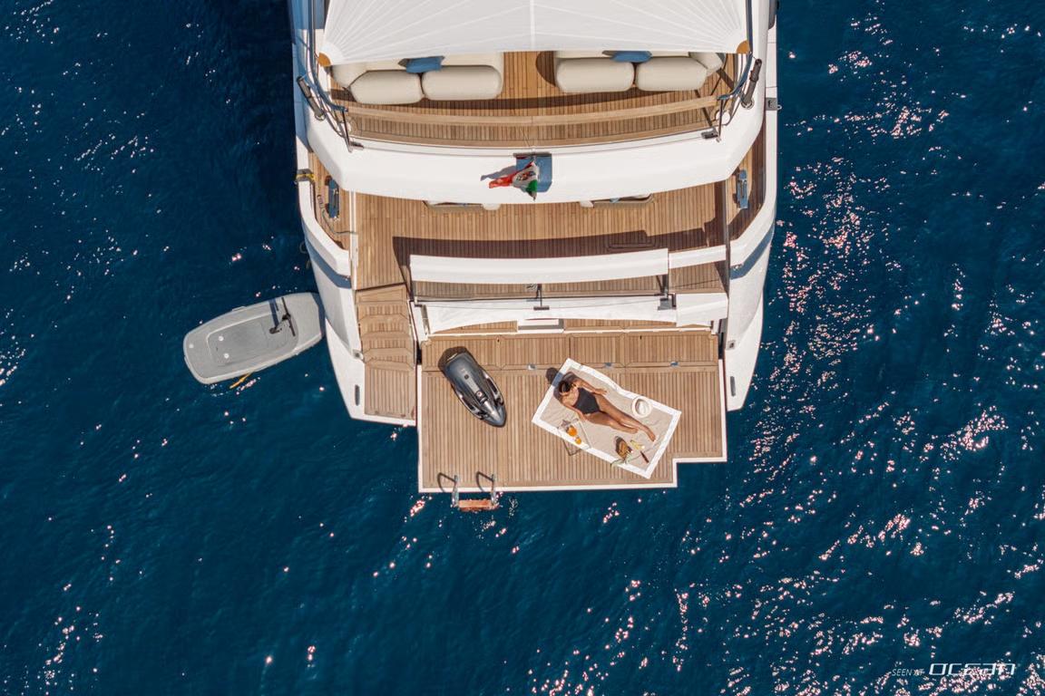 The CATCH ME yacht for charter stands out with her unique asymmetric layout. By incorporating a single-side gangway, this design maximizes interior volume, enhancing both space and luminosity. Expansive glazing floods the interior with natural light, creating a seamless connection between the sea and onboard living spaces.