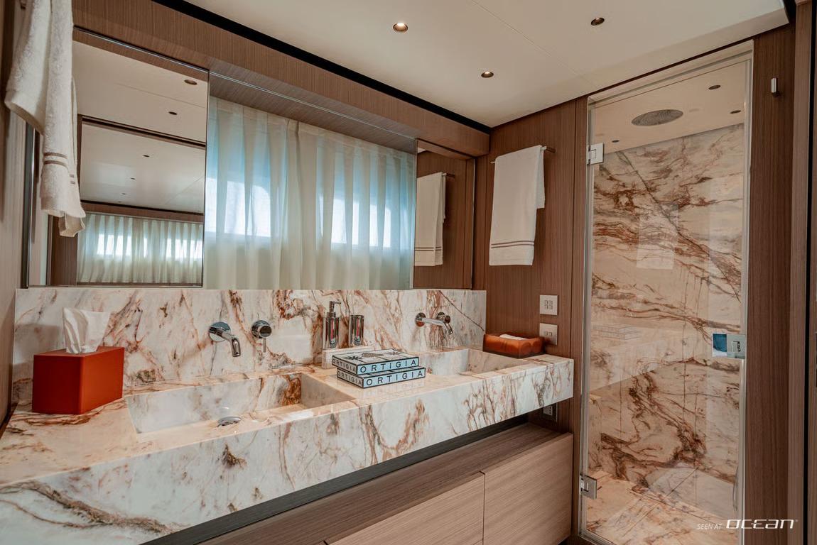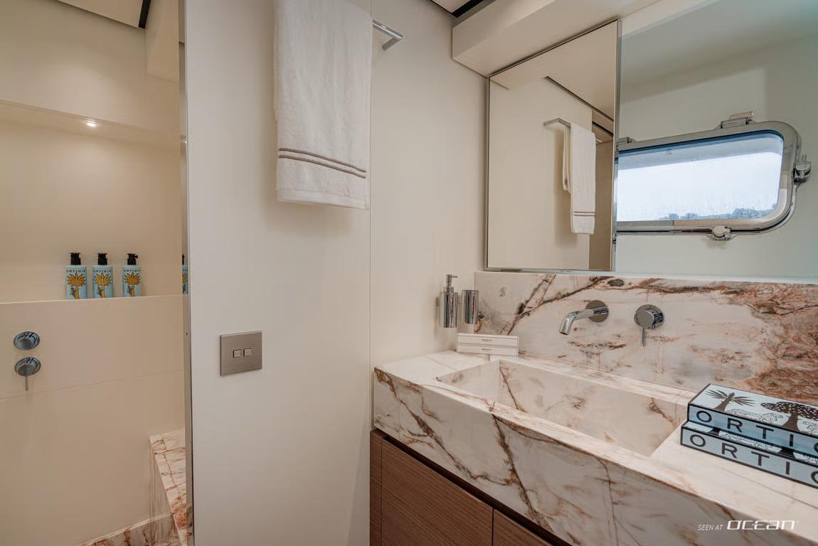 All cabins with en-suite bathrooms, generators, watermakers, stabilizers underway, stabilizers at anchor, smart TV in all cabins, Starlink, Wi-Fi internet, outdoor sound system, bathing platform, beach club, and a variety of water toys.