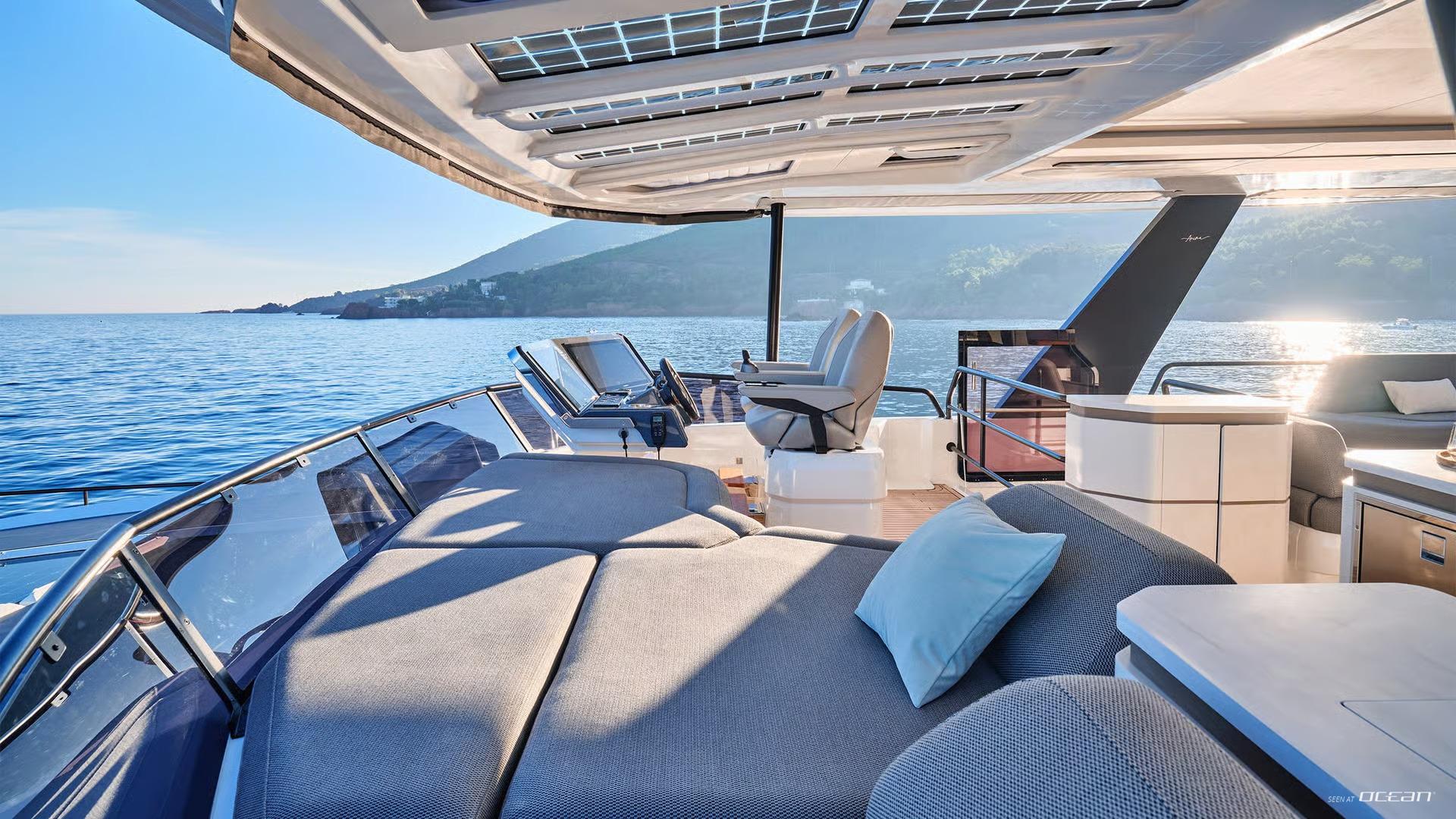 From bow to stern, CHRISTAL MIO 80 is crafted for open-air enjoyment. Her foredeck features a Jacuzzi, sunpads, and a wet bar, offering a private sanctuary during relaxed afternoons at anchor. Two side cockpits with opening wings bring guests even closer to the sea, while the aft Beach Club sits fully open to the water, transforming every anchorage into a resort-style setting during your charter. The expansive flybridge offers panoramic views, a dining area, a second wet bar, and generous lounging space for slow mornings, sunset drinks, and unforgettable al fresco evenings.