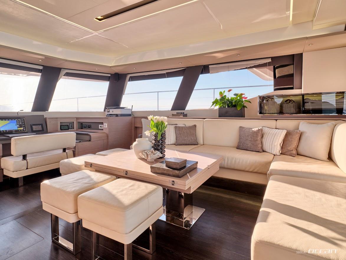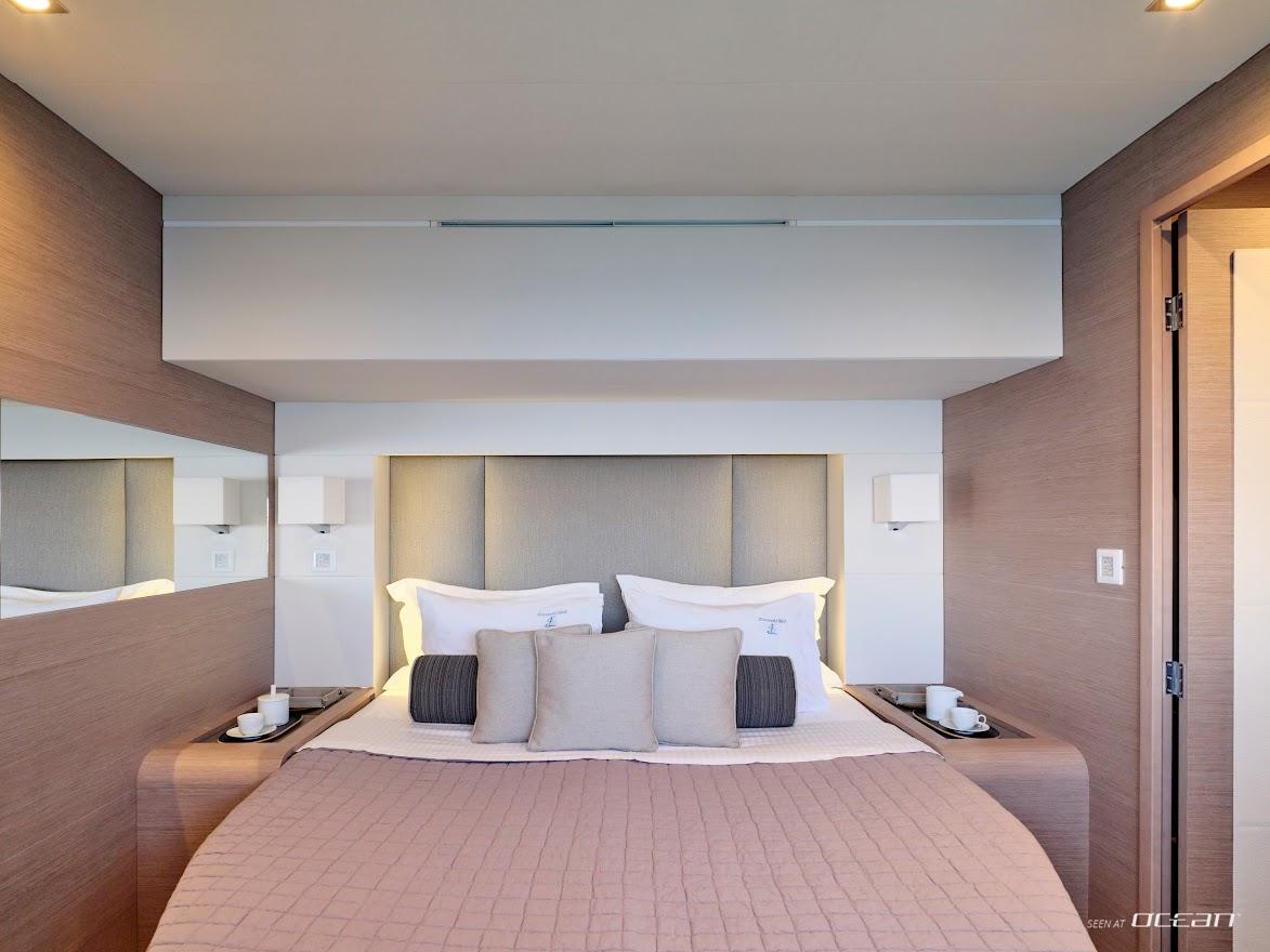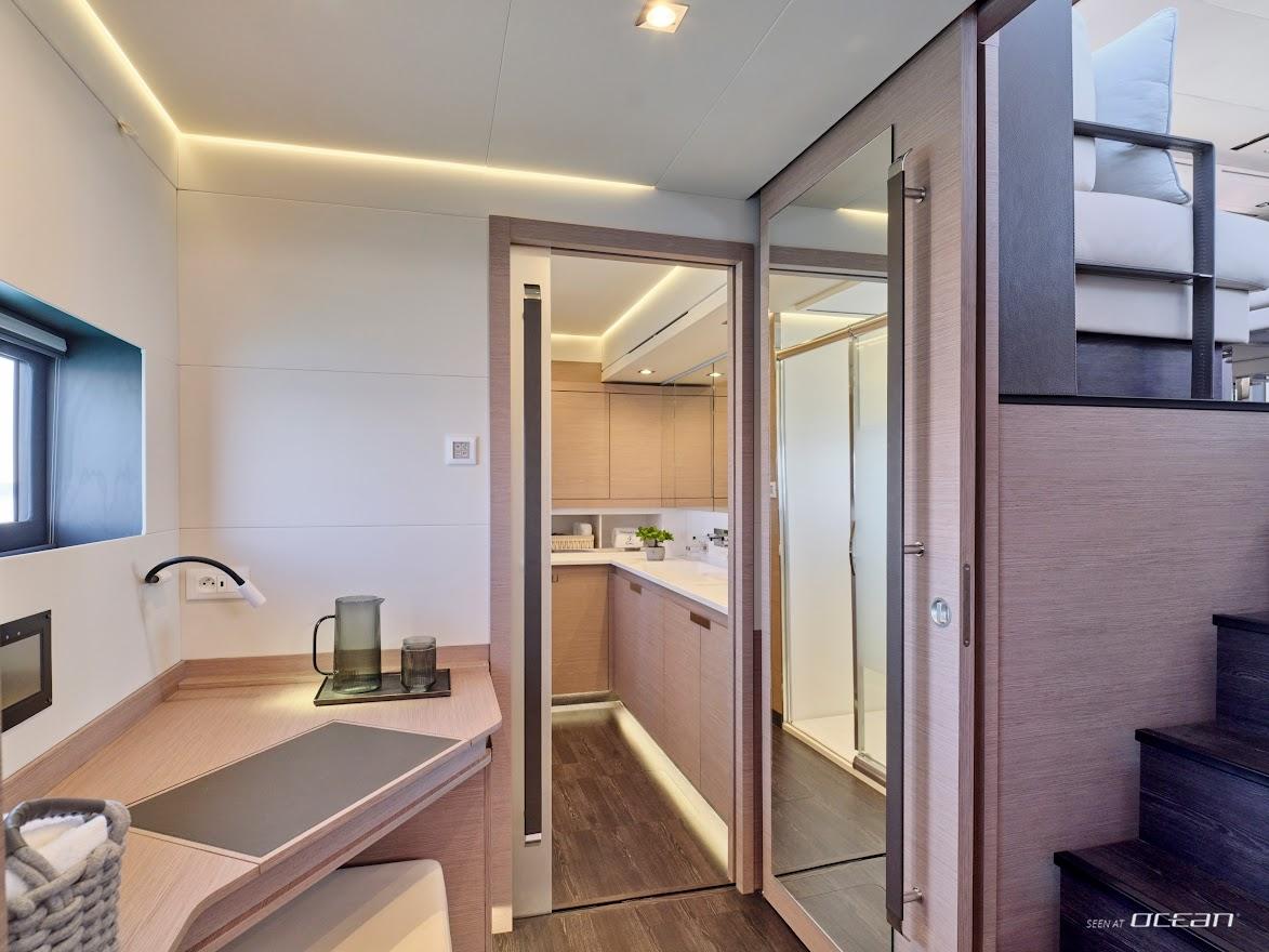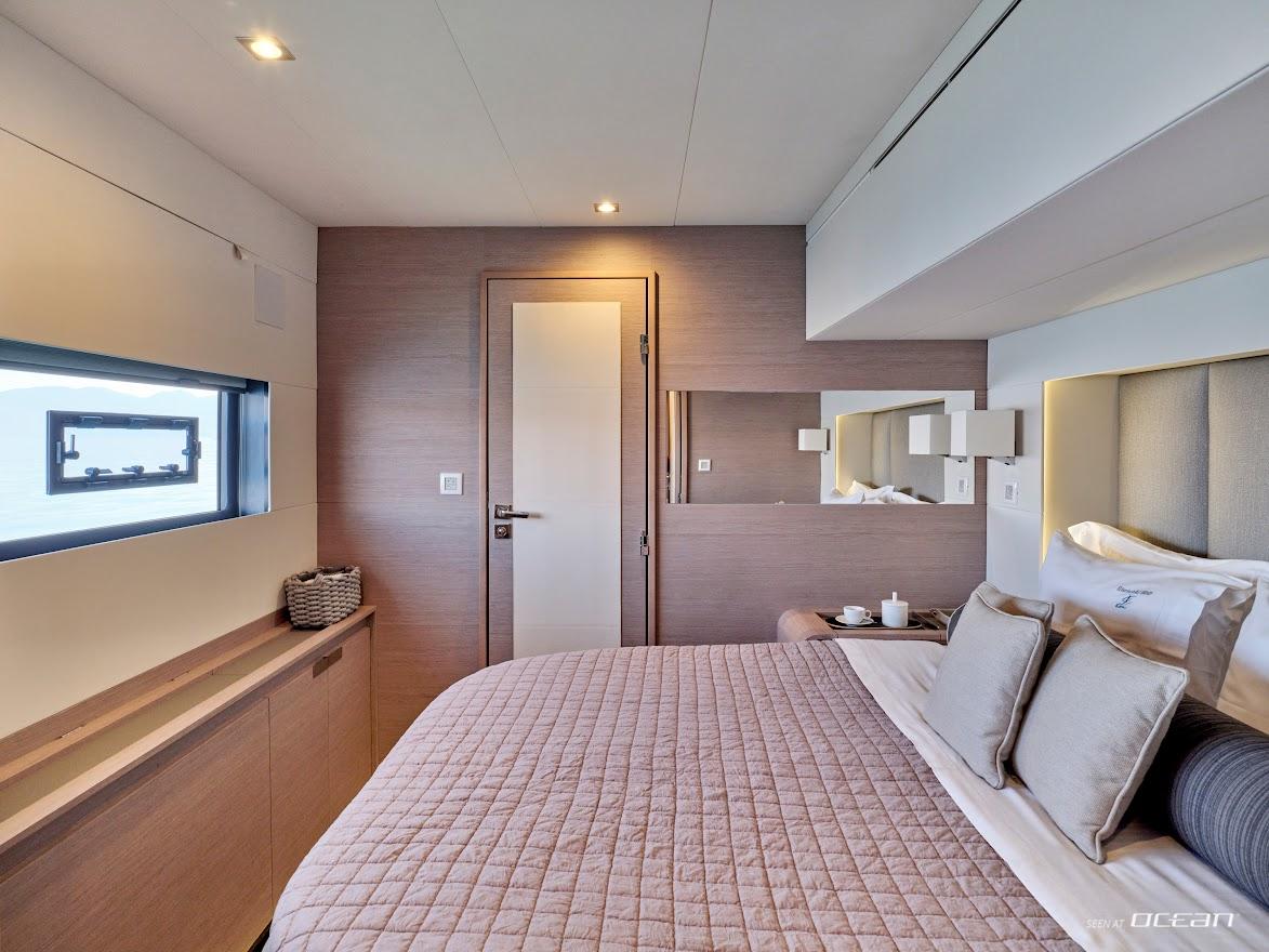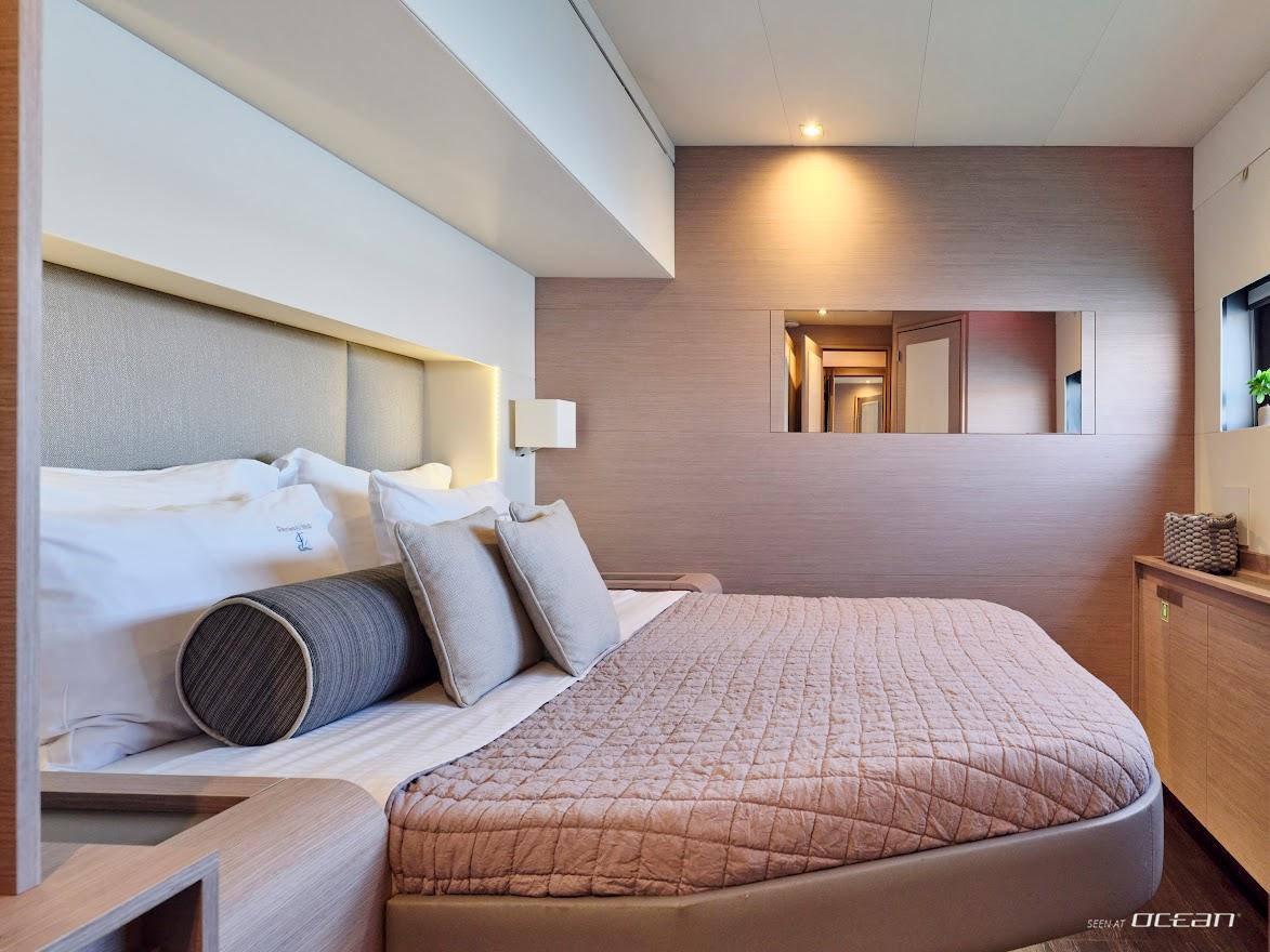 CHRISTAL MIO catamaran for charter accommodates 10 guests in 1 master suite and 4 double cabins, all ensuite. Her modern salon offers 360° views, a bright and inviting ambiance, and seamless access to outdoor entertaining areas. Every detail has been designed for both relaxation and functionality, making her the ideal luxury power catamaran for couples, families, or friends seeking privacy and space without compromise.