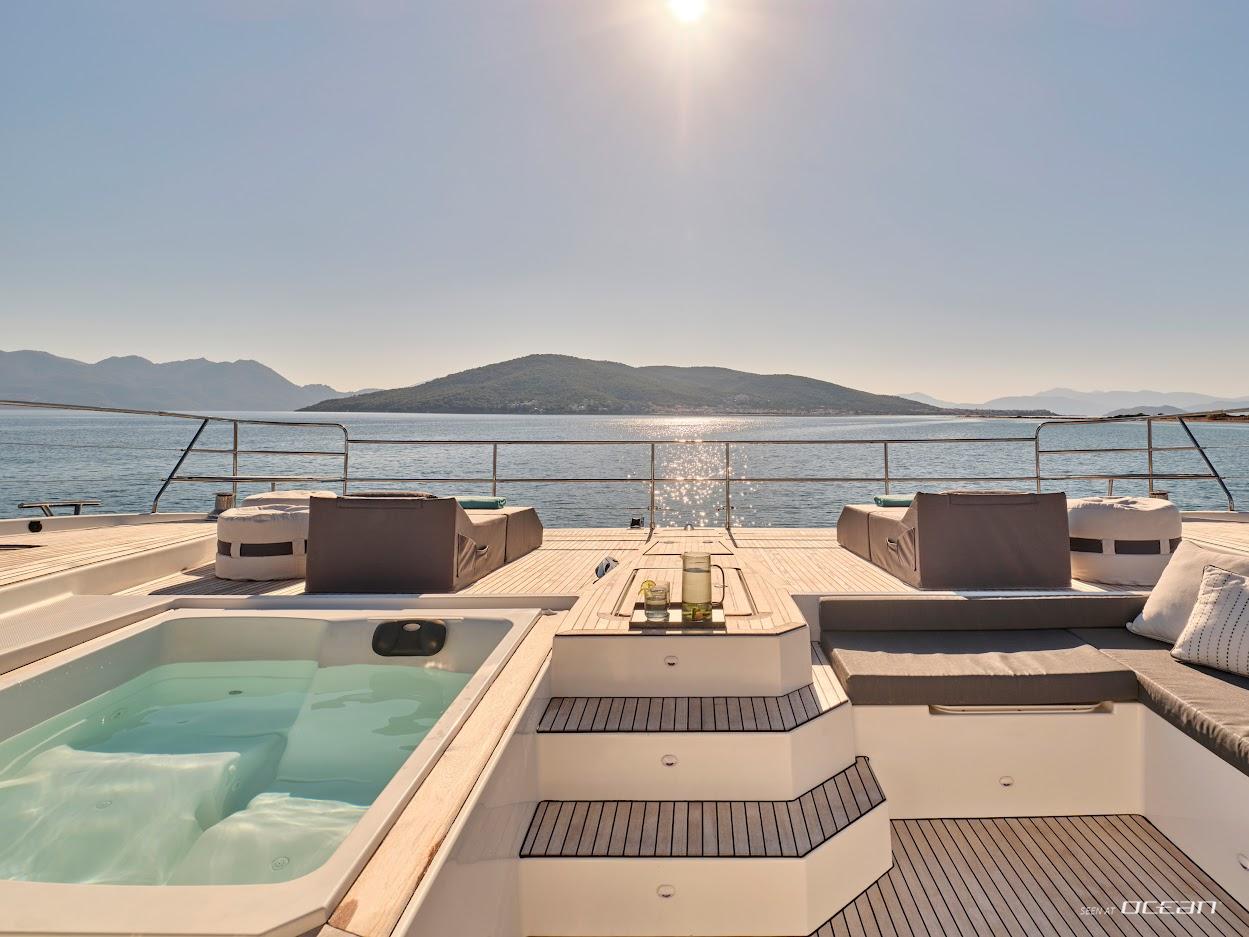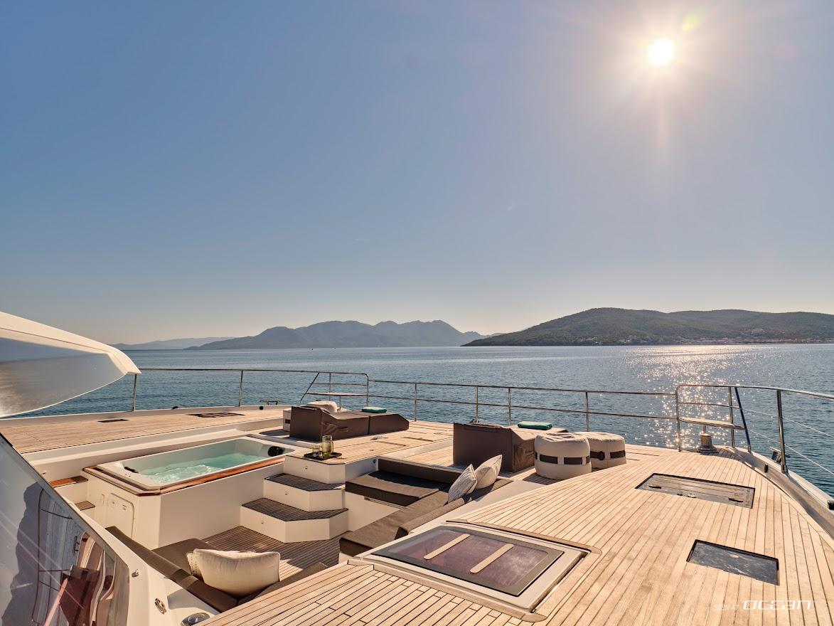 All cabins with en-suite bathrooms, air condition throughout, 2 generators, jacuzzi, watermaker, TV in salon and all cabins, Wi-Fi internet, sound system throughout the yacht and in each cabin, hydraulic swimming platform and a variety of water toys.