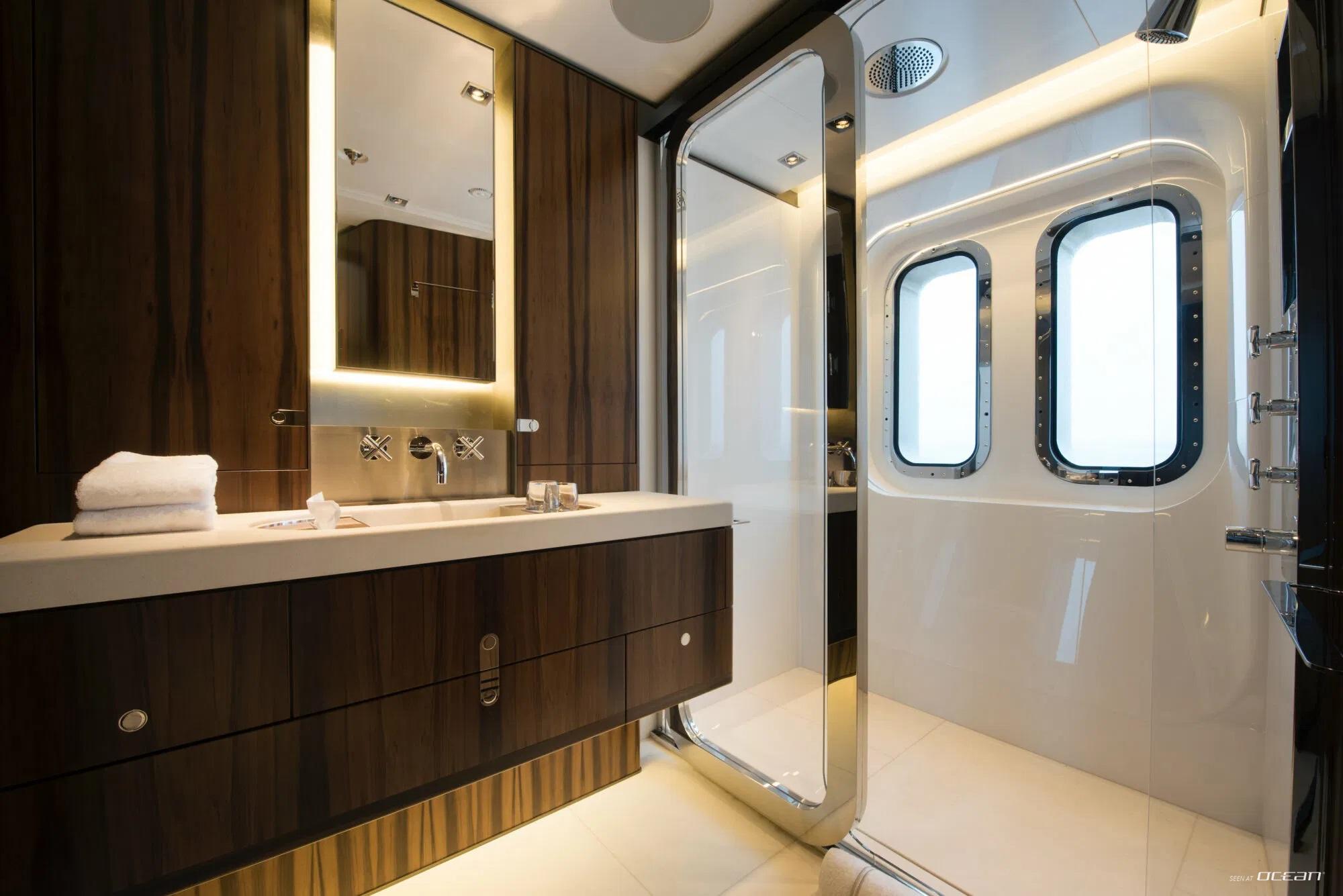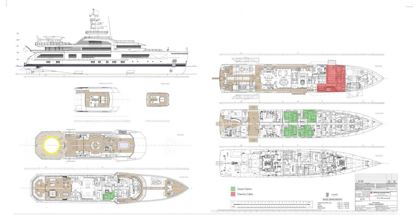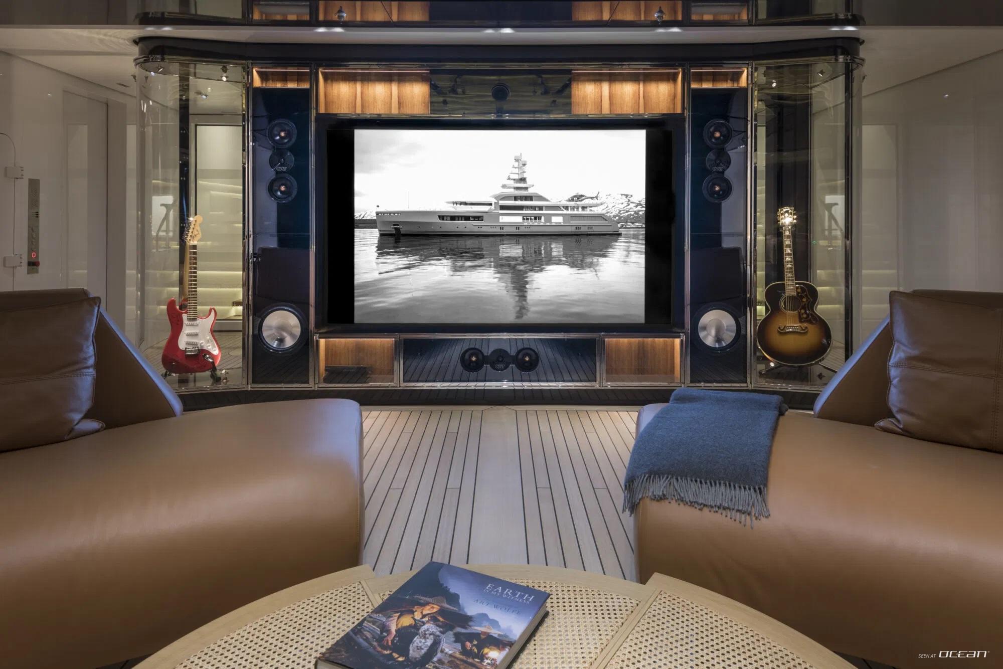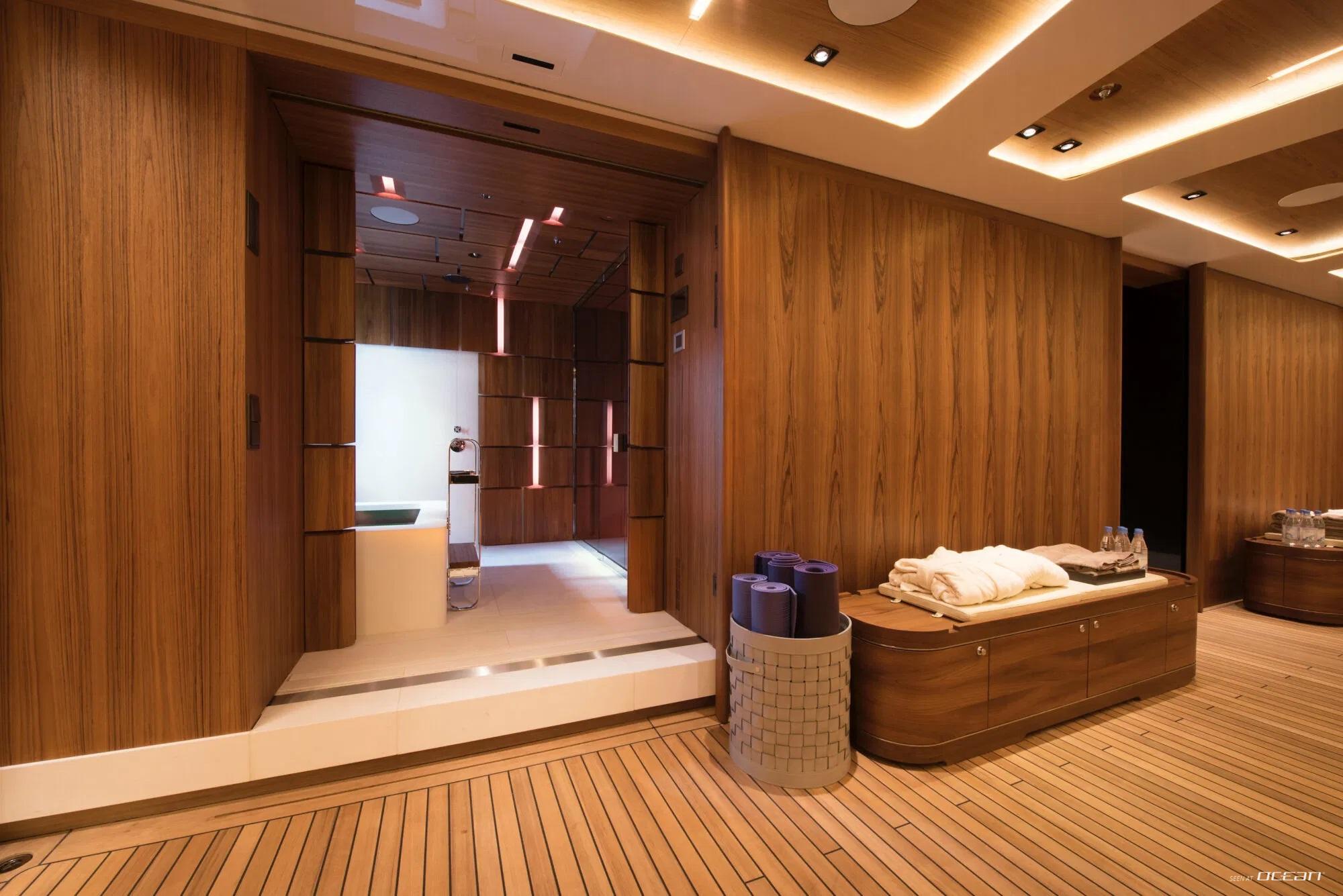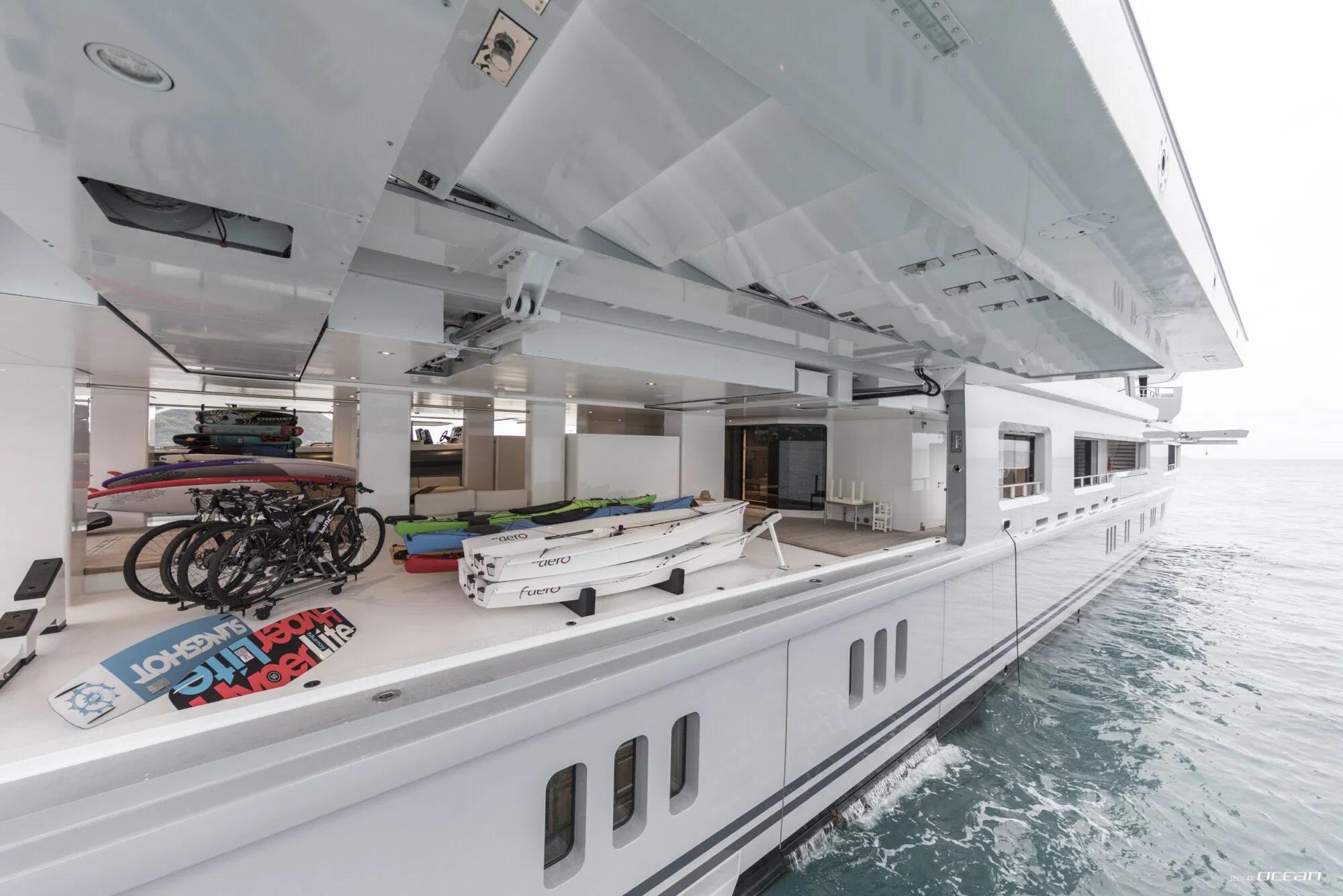En-suite bathrooms in all cabins, air condition throughout, generators, watermakers, jacuzzi, helipad, elevator, stabilizers at anchor and underway, TV in salon and all cabins, Apple TV, Spotify music streaming throughout vessel, California audio technology speakers & amplifiers, Sky UK (via Plexus IPTV), Bespoke Video on Demand (VOD) System, PULSE. 3000+ Movies and TV shows. (RUS & ENG), Mirage music server and library, outdoor cinema and sound system, full party lighting helideck setup via GrandMA, all areas controlled with Crestron via 55x Apple iPad Minis, in each room, Karaoke machine, PlayStation 4, Magbox IPTV, Starlink, Wi-Fi internet, Apple & Adobe Premier video editing suite for onboard videos, DJI drones & film equipment, Canon professional photography equipment, and a variety of water toys