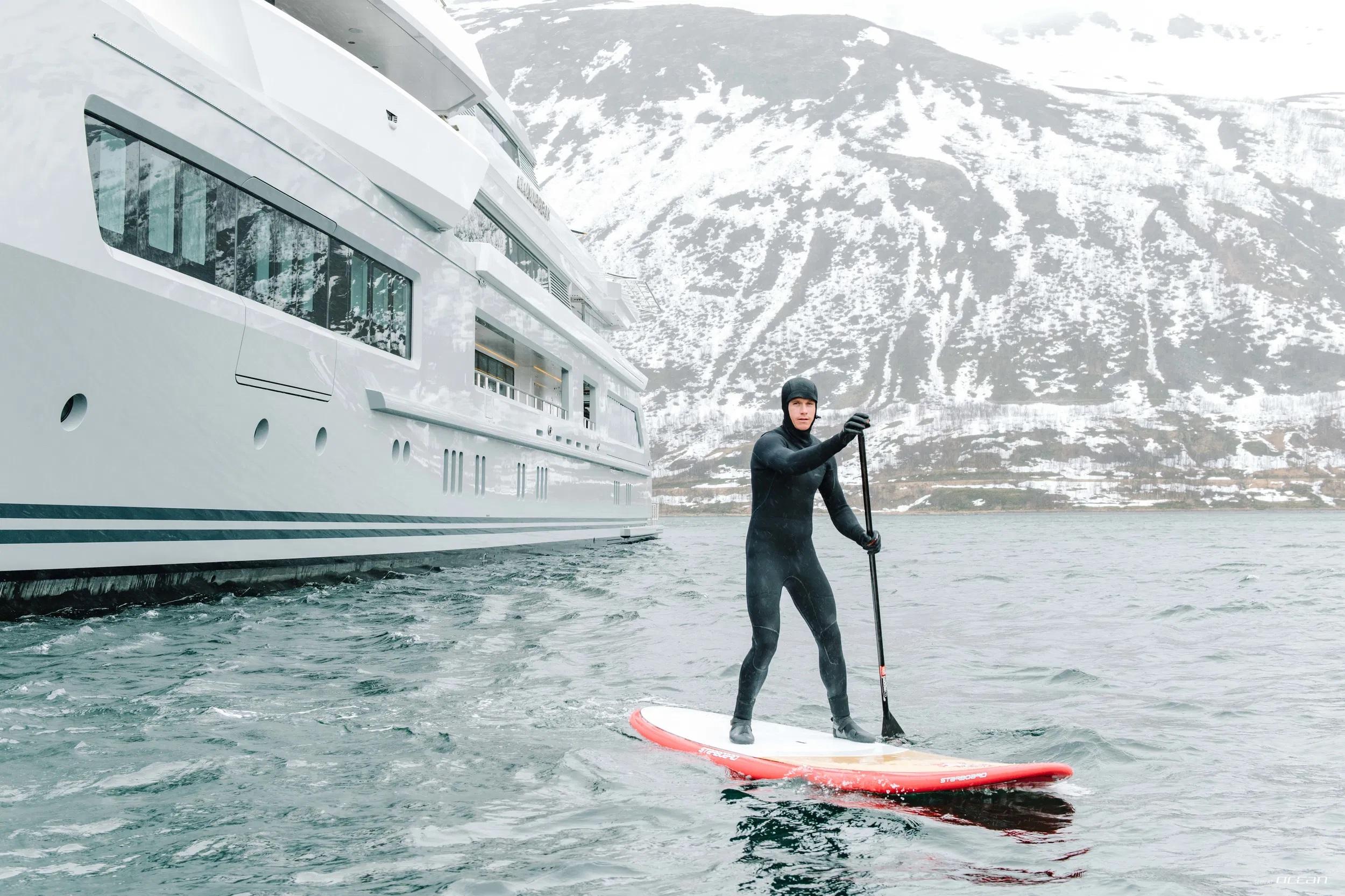 Luxury yacht for charter 73m Abeking & Rasmussen CLOUDBREAK offers the largest toy and tender collection in her category, with scuba diving gear, Seabobs, waverunners, electric boards, bikes, and extensive ski and snowboarding equipment. Her commercial-use certified helideck supports fast transfers and heli-ski adventures, while also transforming into a full party deck with advanced lighting and sound. Forward of the helideck, a circular cinema room allows guests to relive the day's action captured on GoPro cameras. The beach club features a gym, sauna, massage space, and direct access to the water. Whether cruising the Mediterranean or remote northern regions, she is designed for year-round adventure and unforgettable moments.