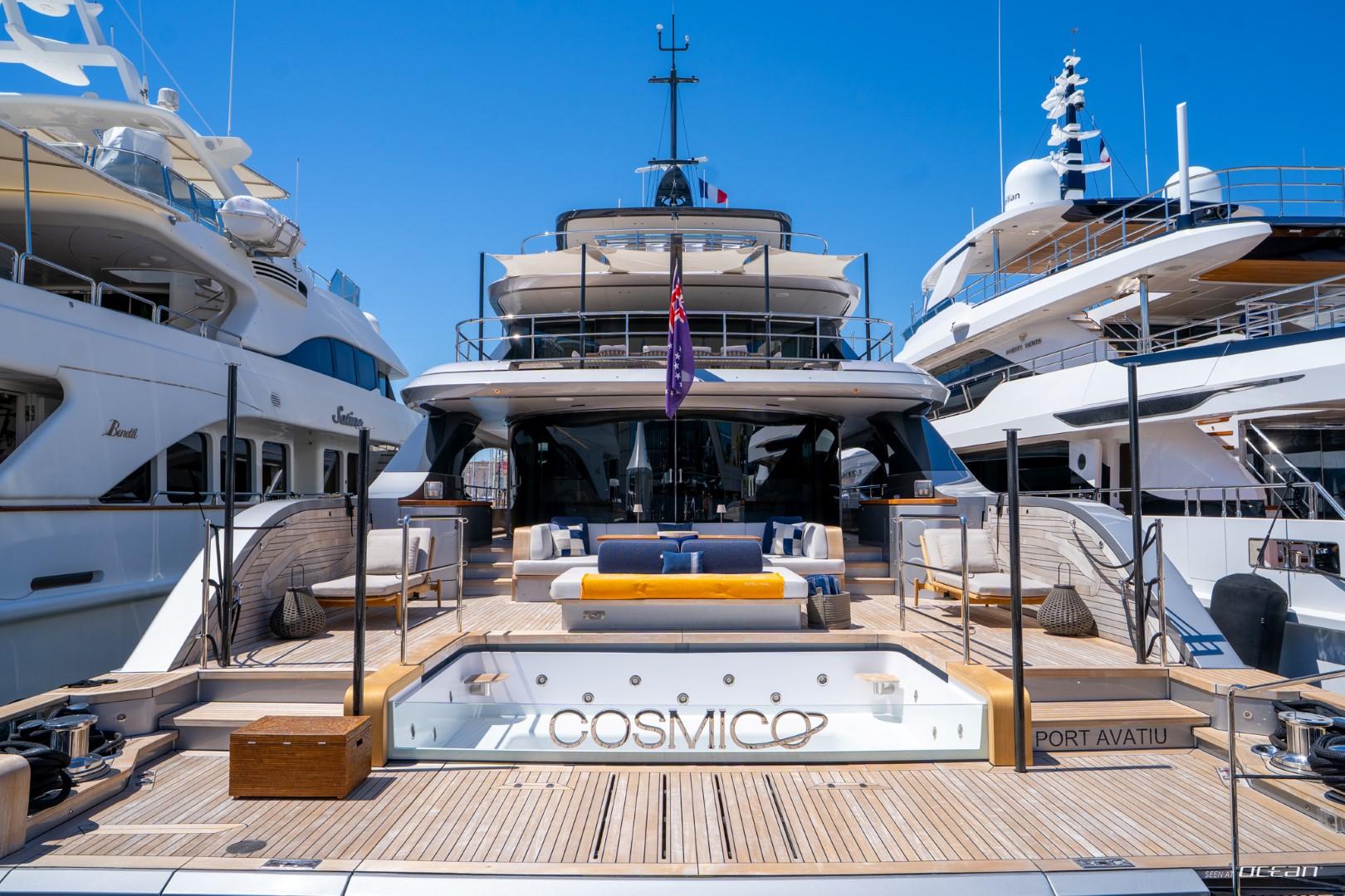 Based in Monaco, COSMICO stands as a modern expression of Italian superyacht craftsmanship along the French Riviera. Delivered in 2024 as a Benetti Oasis 40m superyacht, she blends contemporary design with open-sea lifestyle concepts that redefine Mediterranean cruising. Created by RWD with naval architecture by Pierluigi Ausonio and interiors by Bonetti Kozerski, she cruises effortlessly from Monaco to Italy and the Balearics, offering a luxury charter platform with unmistakable presence.