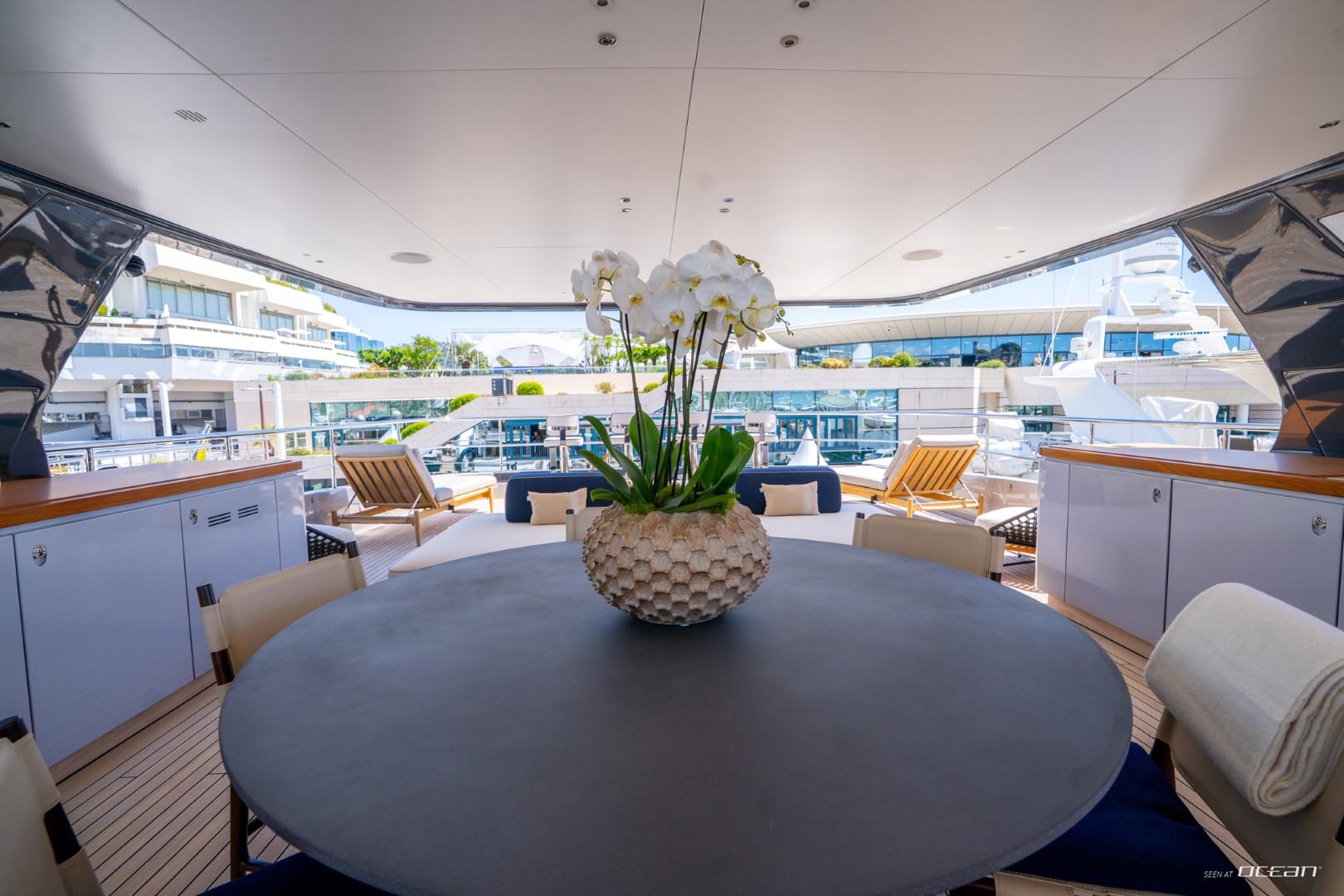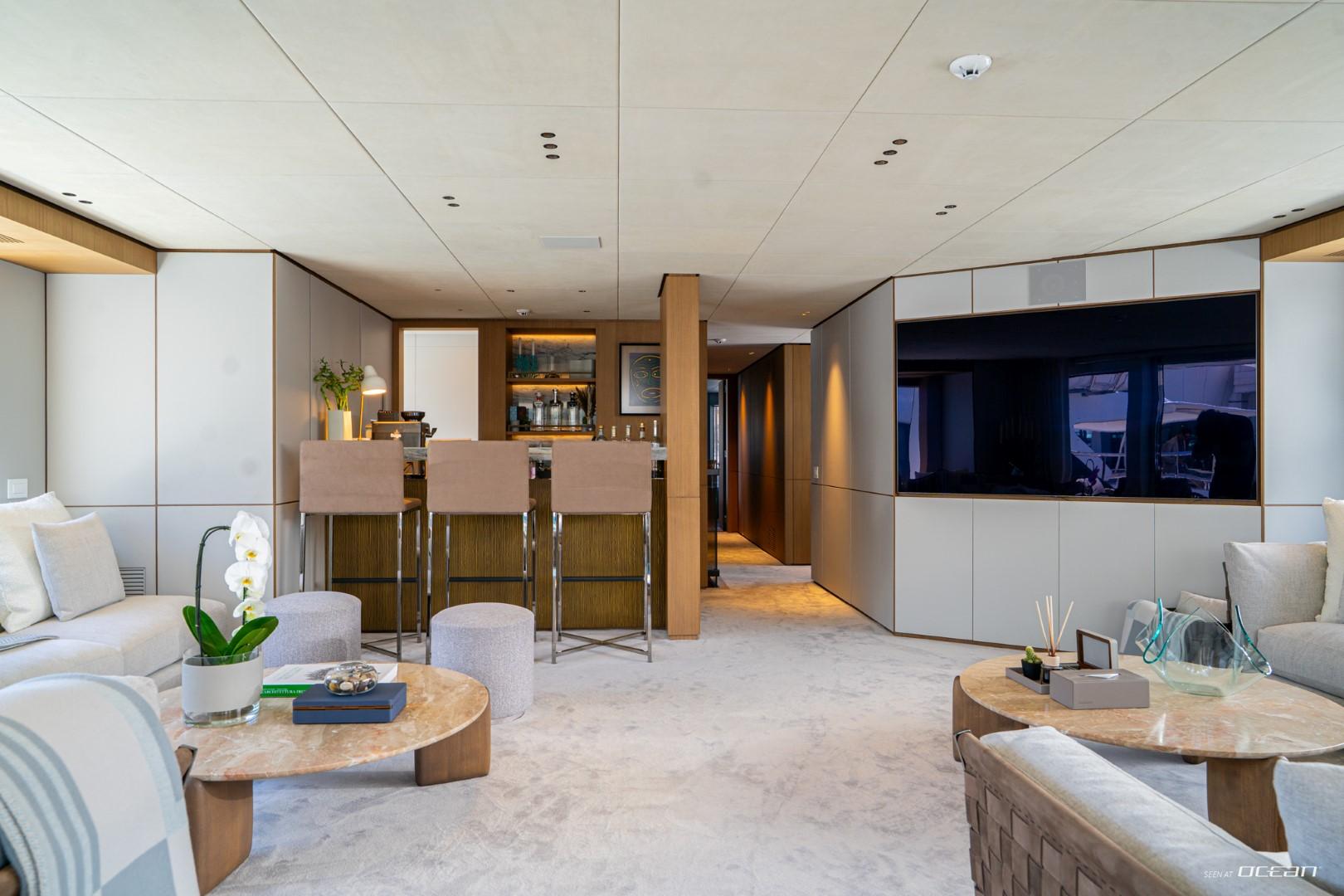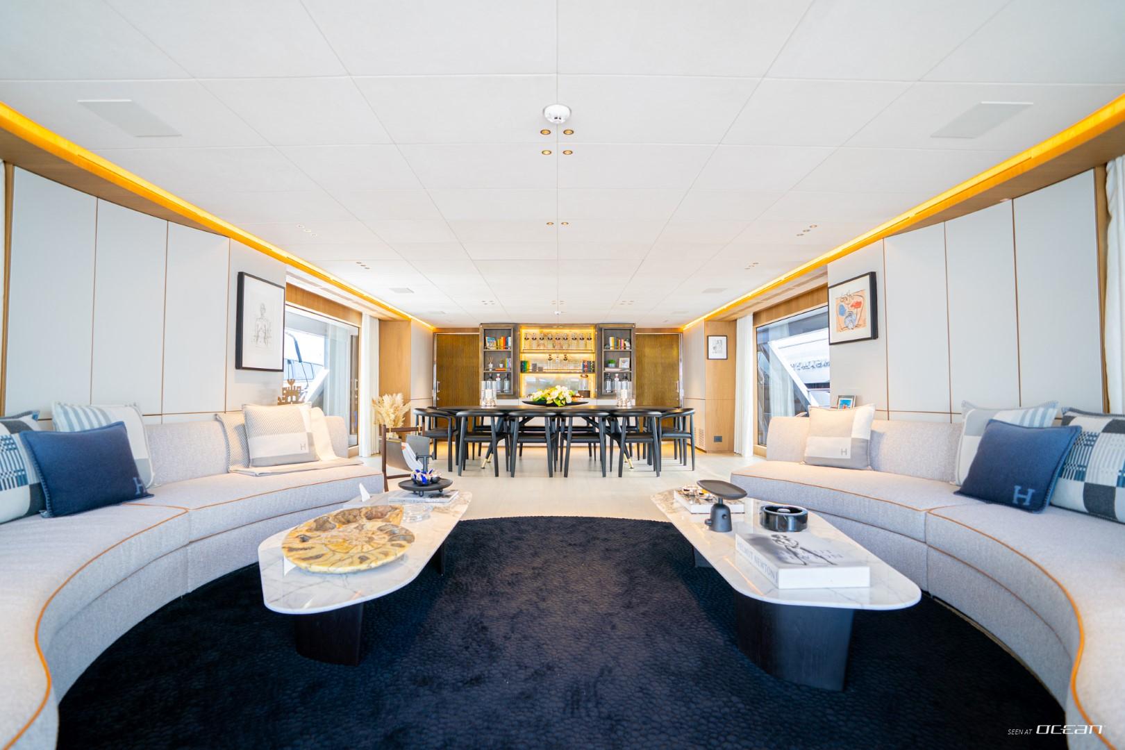 Charter Yacht COSMICO showcases Benetti’s renowned Oasis Deck, transforming the stern into a private waterfront terrace complete with infinity pool and fold-out sea balconies. The upper deck provides an ideal setting for alfresco dining, while the sun deck Jacuzzi delivers elevated relaxation above the coastline. Advanced stabilizers enhance onboard comfort whether cruising between destinations or anchored in a secluded bay.