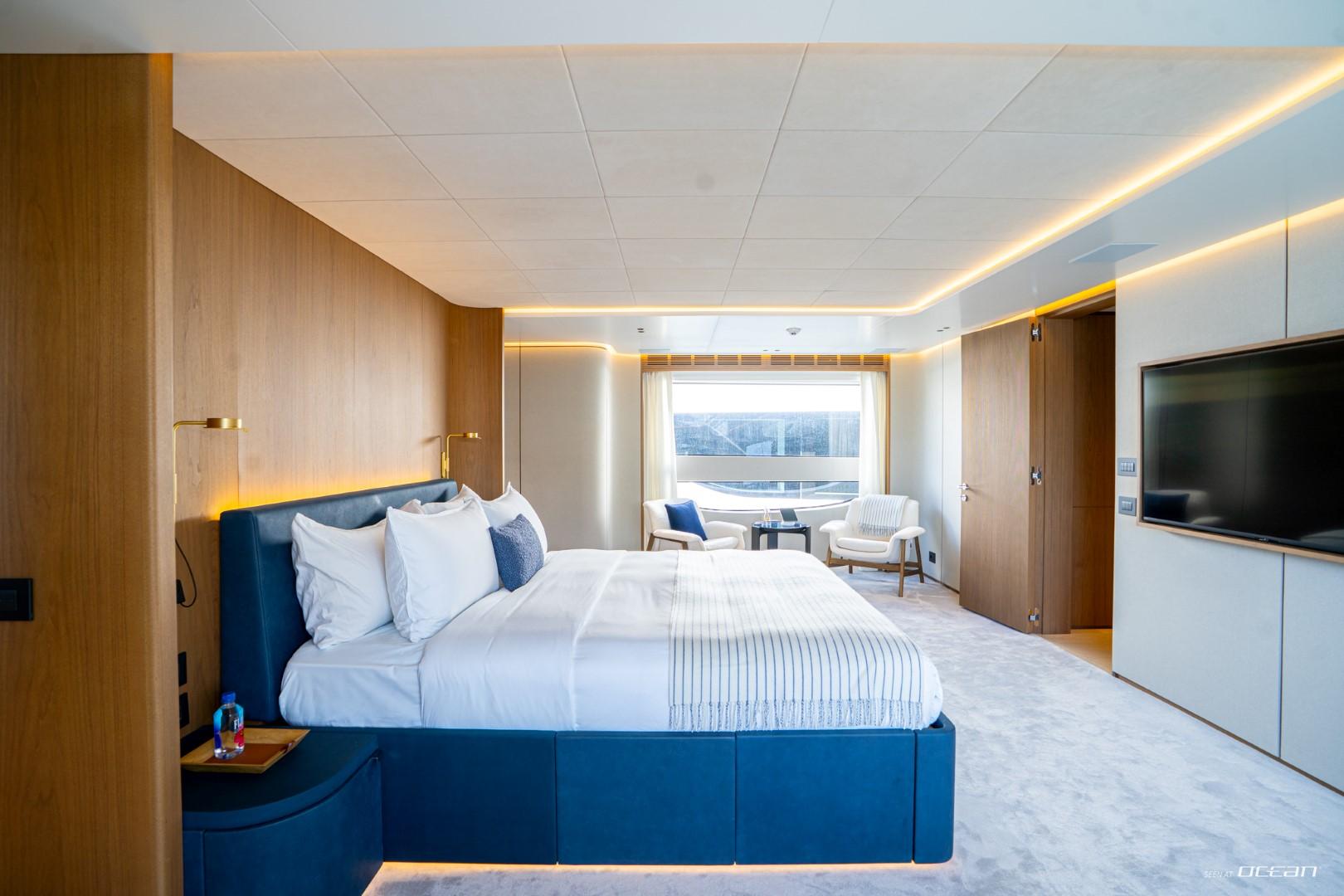M/Y COSMICO accommodates up to 12 guests across a layout that balances grandeur and intimacy. The main deck master suite offers panoramic views and generous proportions, while the lower deck includes 2 VIP cabins and 2 convertible double cabins with additional pullman berths. Premium finishes, smart entertainment systems, and elegant ensuite bathrooms ensure a seamless Monaco luxury yacht charter experience for families and couples alike.