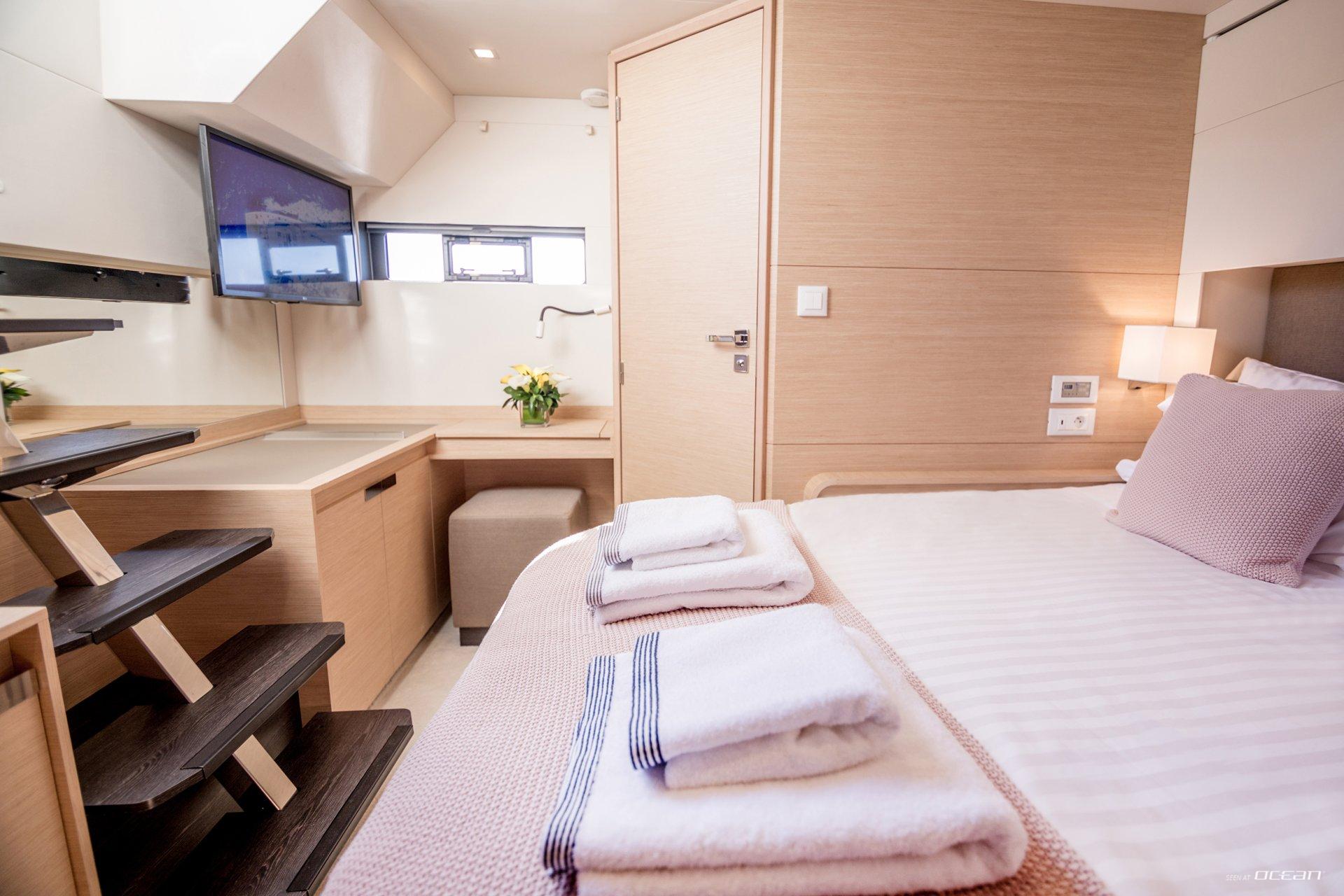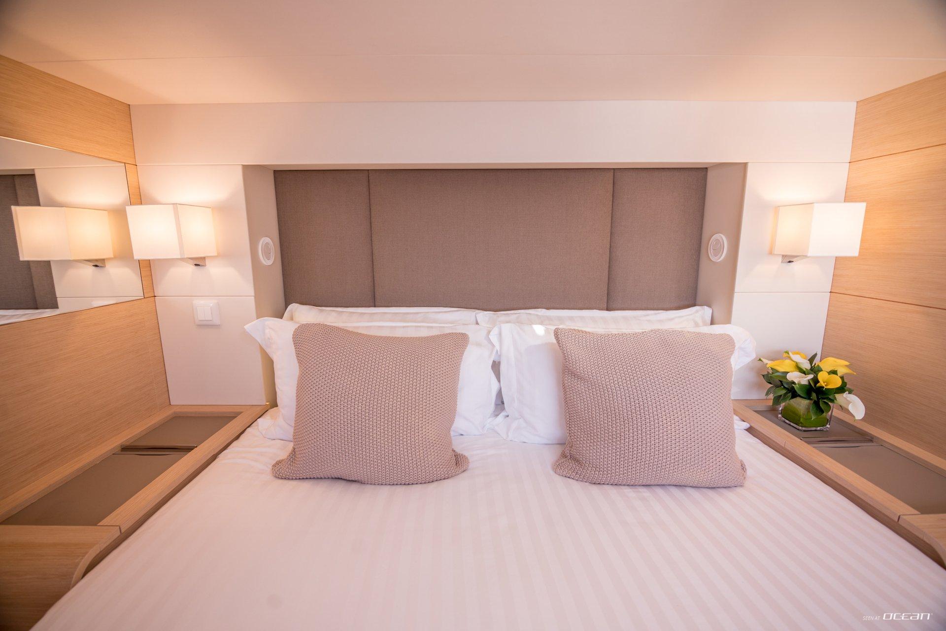 A standout feature of D2 is her galley-down layout, which dedicates the main deck entirely to guest relaxation and privacy. This design enhances the sense of openness in the salon, allowing panoramic views and a calm, uninterrupted atmosphere. She sleeps 8 guests across a luxurious 22-square-meter master suite and 3 double cabins, each beautifully appointed and ensuite. Whether shared by couples or friends, D2 offers comfort and intimacy in equal measure.