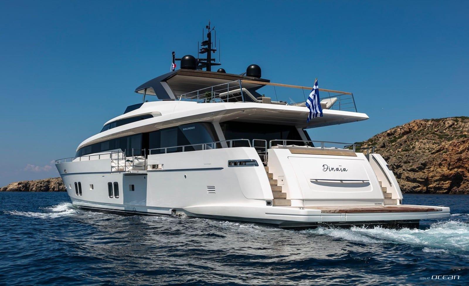 DINAIA luxury motor yacht in Greece is a modern Sanlorenzo SL106 luxury motor yacht launched in 2018 and based in Athens for cruising the Greek islands. Her exterior lines were designed by Francesco Paszkowski, while her refined interior styling was created by Amélie Gillier. With sleek proportions and expansive glazing, she presents a contemporary profile that blends elegance with strong performance. Spacious deck areas and sophisticated interiors create an inviting setting for stylish Mediterranean cruising.