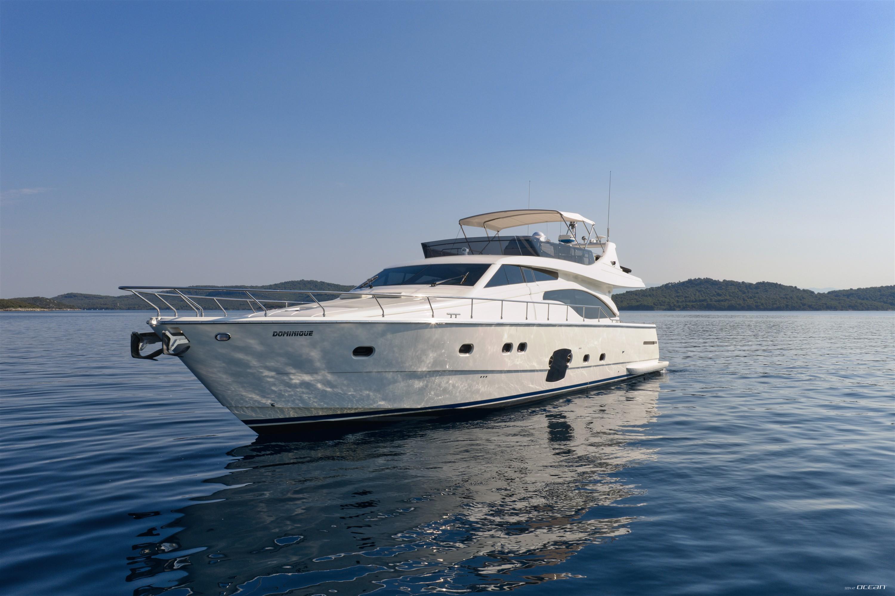 Powerful, sleek and built for summer cruising, DOMINIQUE represents the finest blend of performance and Italian craftsmanship. This 21 m Ferretti 681, delivered in 2006 and refitted in 2022, is perfectly suited for a Croatia Yacht Charter, offering comfort, speed and elegance in equal measure. Her dynamic profile and top speed of 34 knots make her ideal for exploring the Adriatic coast from Split to Dubrovnik and beyond.