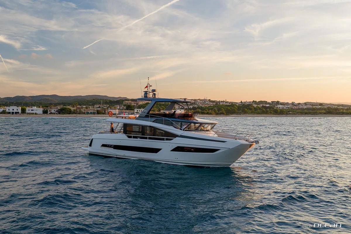 ENTHUSIAST enters our Antibes fleet as a 2026 Prestige X70, bringing a fresh perspective to luxury motor yacht charter along the French Riviera. Developed by Prestige Yachts within the Beneteau Group and designed by Garroni Design, this X-Line model is defined by her villa-style layout, generous beam, and expansive glazing that fills the interior with natural light. The concept focuses on open living and smooth transitions between interior and exterior spaces, creating an inviting and contemporary setting for relaxed cruising on the Cote d'Azur.