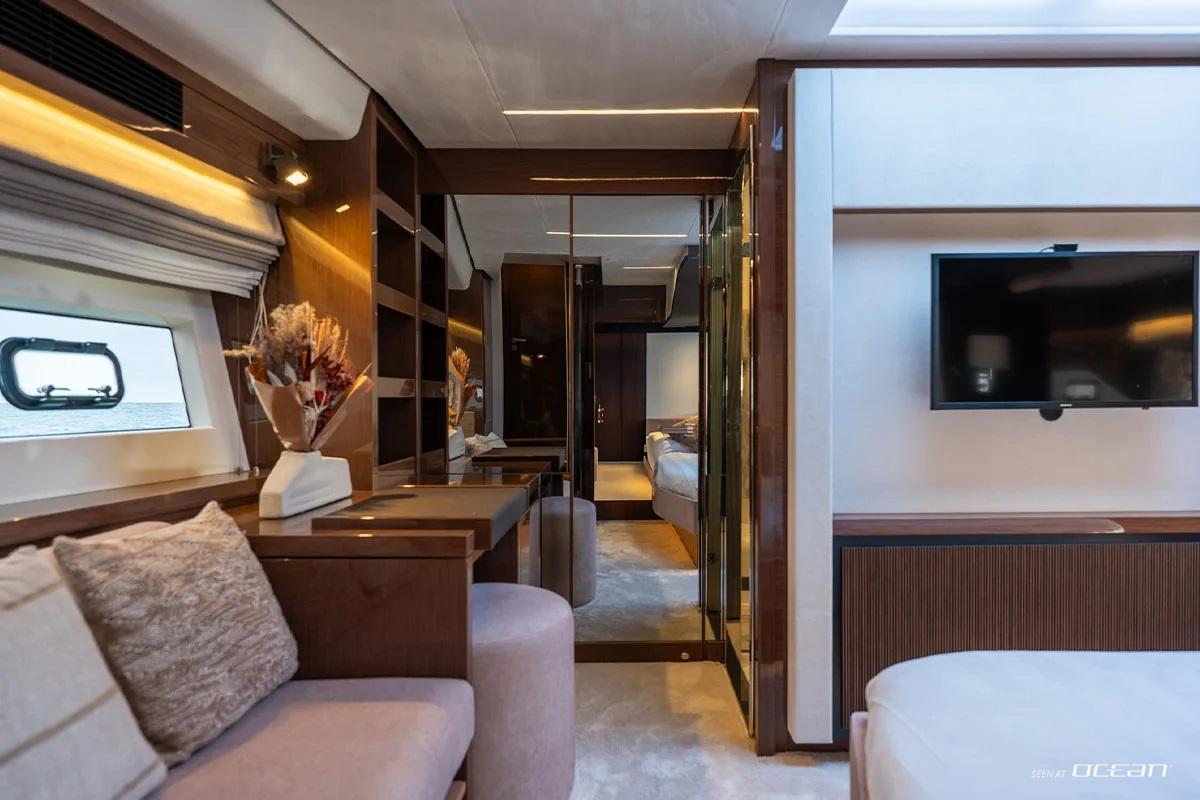 Designed for comfort and flexibility, M/Y ENTHUSIAST for charter accommodates up to 8 guests in 4 cabins, including a master stateroom, a VIP suite, and 2 twin cabins. This layout is particularly well suited for families and friends, offering a balance between shared living and private retreat spaces. Each cabin features smart TVs and ensuite facilities, with the twin cabins sharing a bathroom, ensuring a practical and comfortable onboard experience.