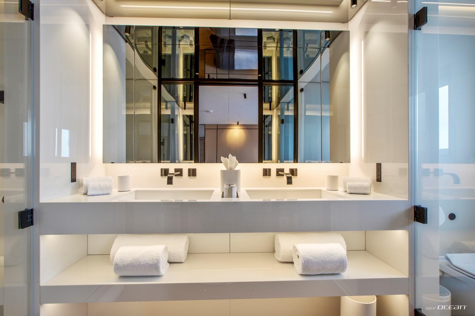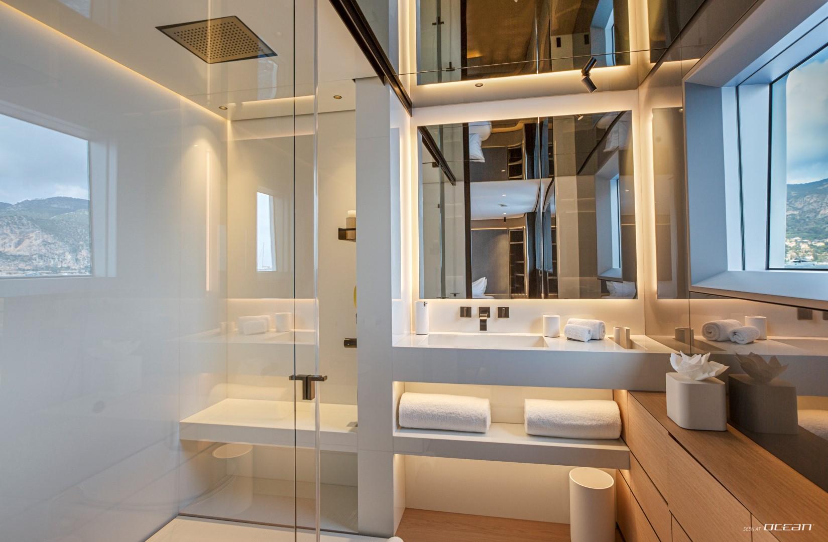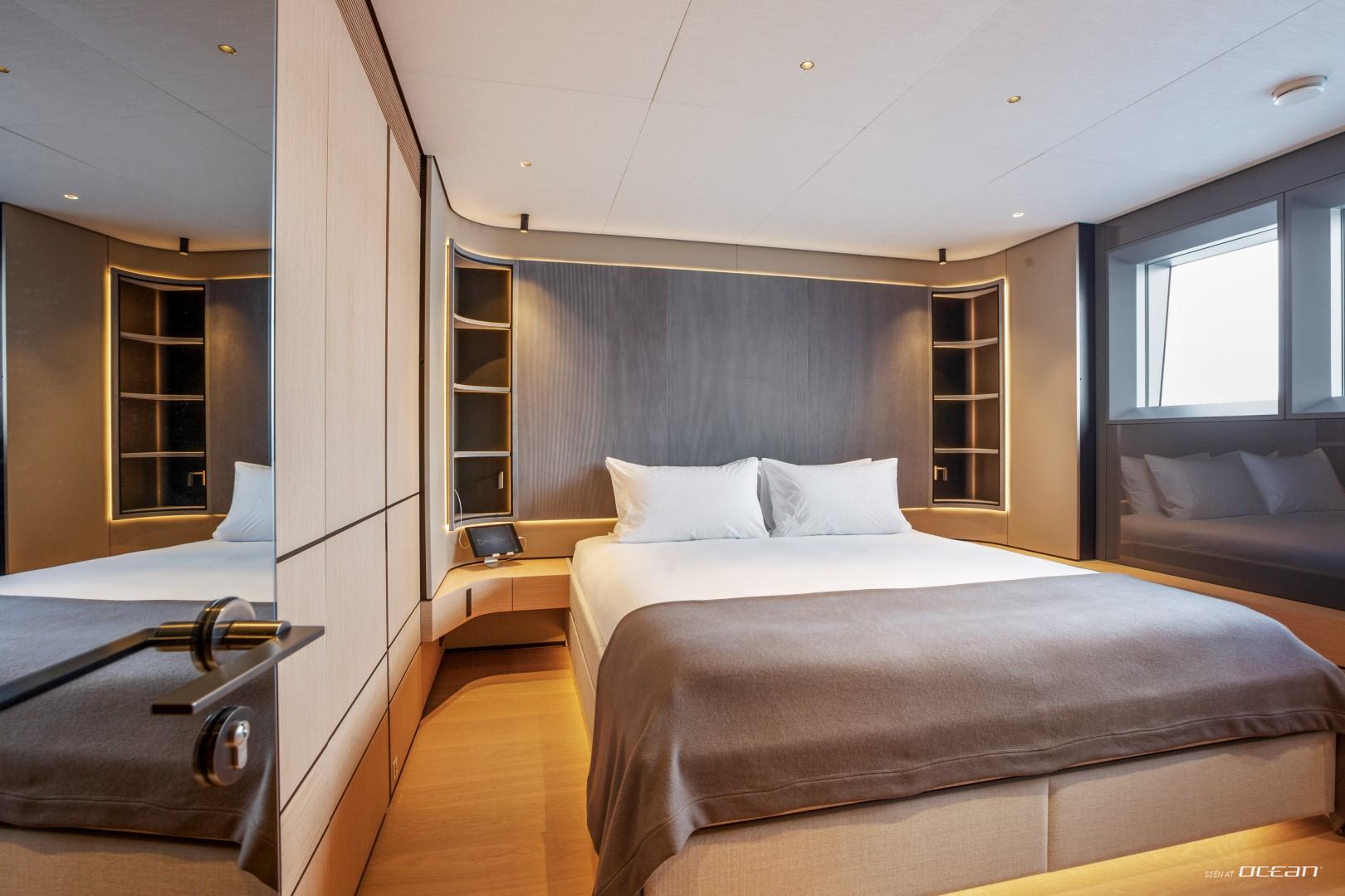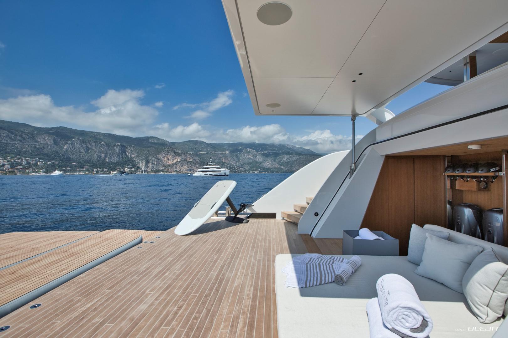 Life onboard revolves around the generous exterior spaces, crowned by a spacious sundeck with a large jacuzzi inviting guests to unwind while taking in panoramic sea views. Active guests will appreciate the excellent selection of water toys, including a fast tender, jet-skis, jetsurf, e-foil, windsurfer, and 3 seabobs, delivering endless fun between anchorages. Exercise equipment onboard allows guests to stay energized before diving back into relaxation mode.