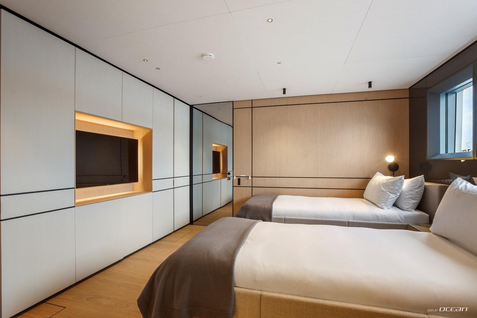Cabin configuration: 1 master, 2 double, and 2 twin (convertible) cabins
