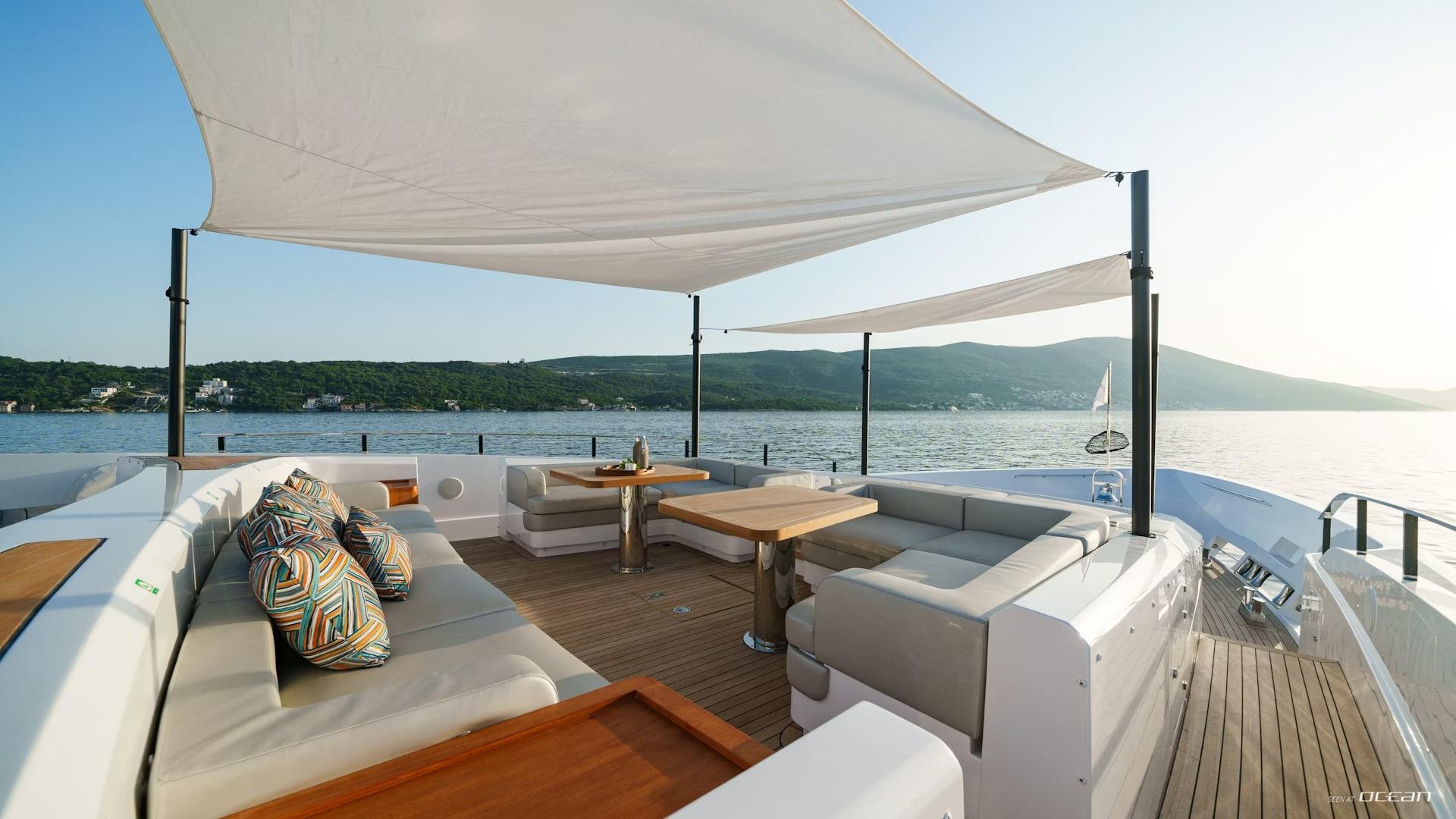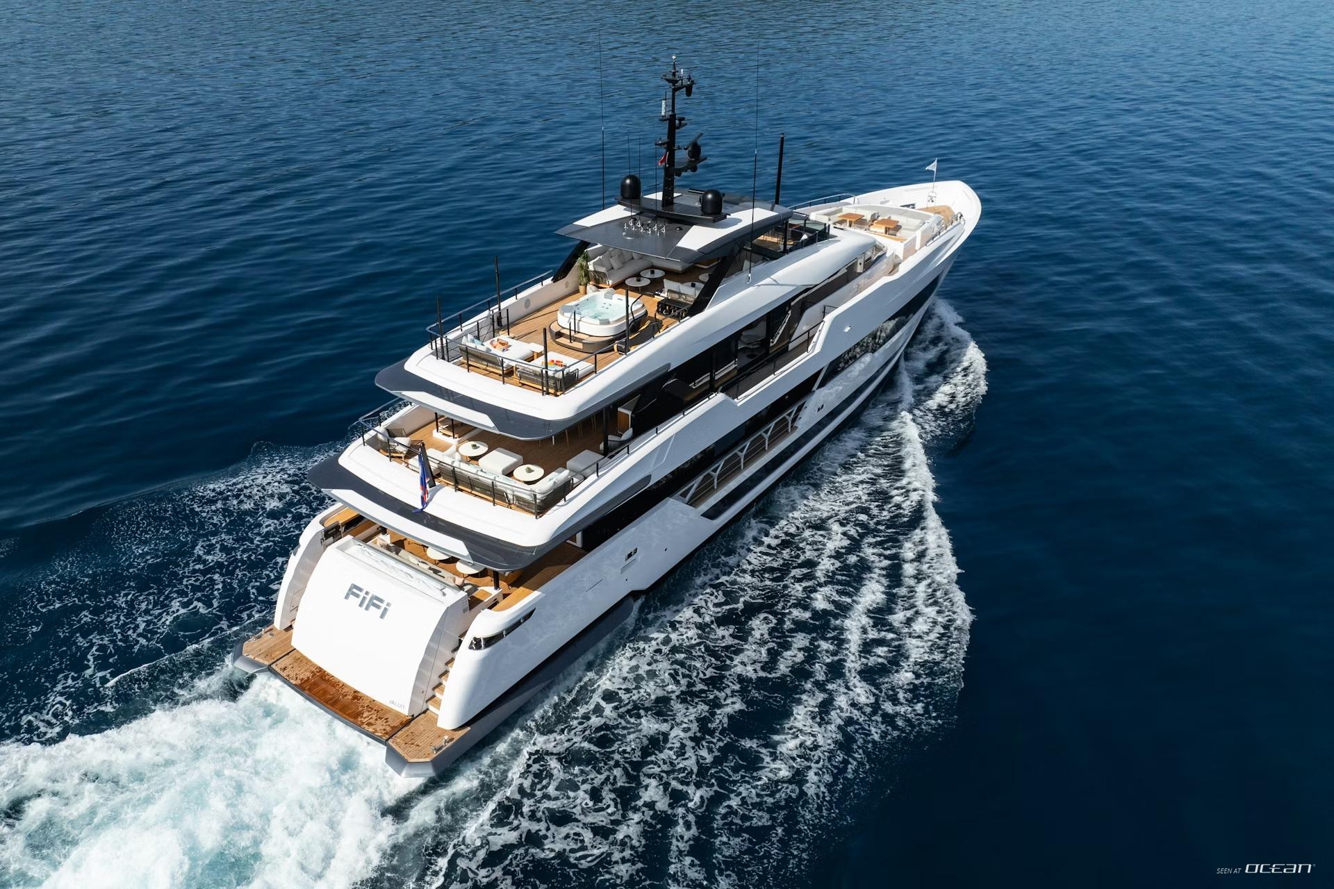 FIFI is a 2025 built Custom Line 140, offering a seamless charter lifestyle between winter seasons in the Leeward Islands and summer cruising along the French Riviera, Corsica, and Sardinia. Her presence is defined by clean Italian styling, expansive deck spaces, and a natural connection between interior and exterior living. From the turquoise waters of St. Martin and the Virgin Islands to the elegance of the Côte d'Azur, FIFI delivers a refined and versatile yachting lifestyle shaped by movement, light, and comfort.