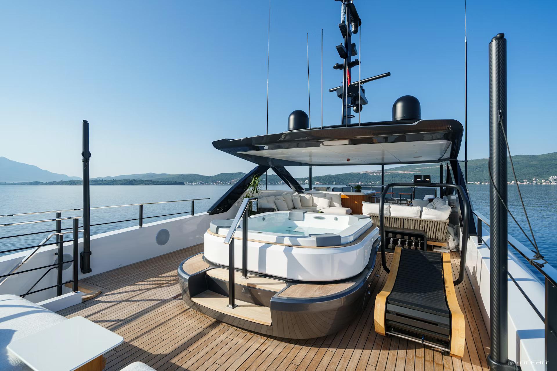 Custom Line luxury yacht FIFI offers an engaging charter experience supported by a wide selection of water toys and an experienced crew of 8 delivering attentive service throughout. Guests can enjoy a powerful jet-ski, seabobs, and assorted boards including e-surfs and flite boards, while a Williams jet tender ensures smooth transfers. In the Leeward Islands, a 32 ft Boston Whaler chase boat adds another layer of exploration, opening access to remote beaches and hidden anchorages. From St. Barth and the Virgin Islands to the Côte d'Azur, FIFI delivers a smooth and stylish Luxury Yachting Experience across the Caribbean and West Mediterranean.