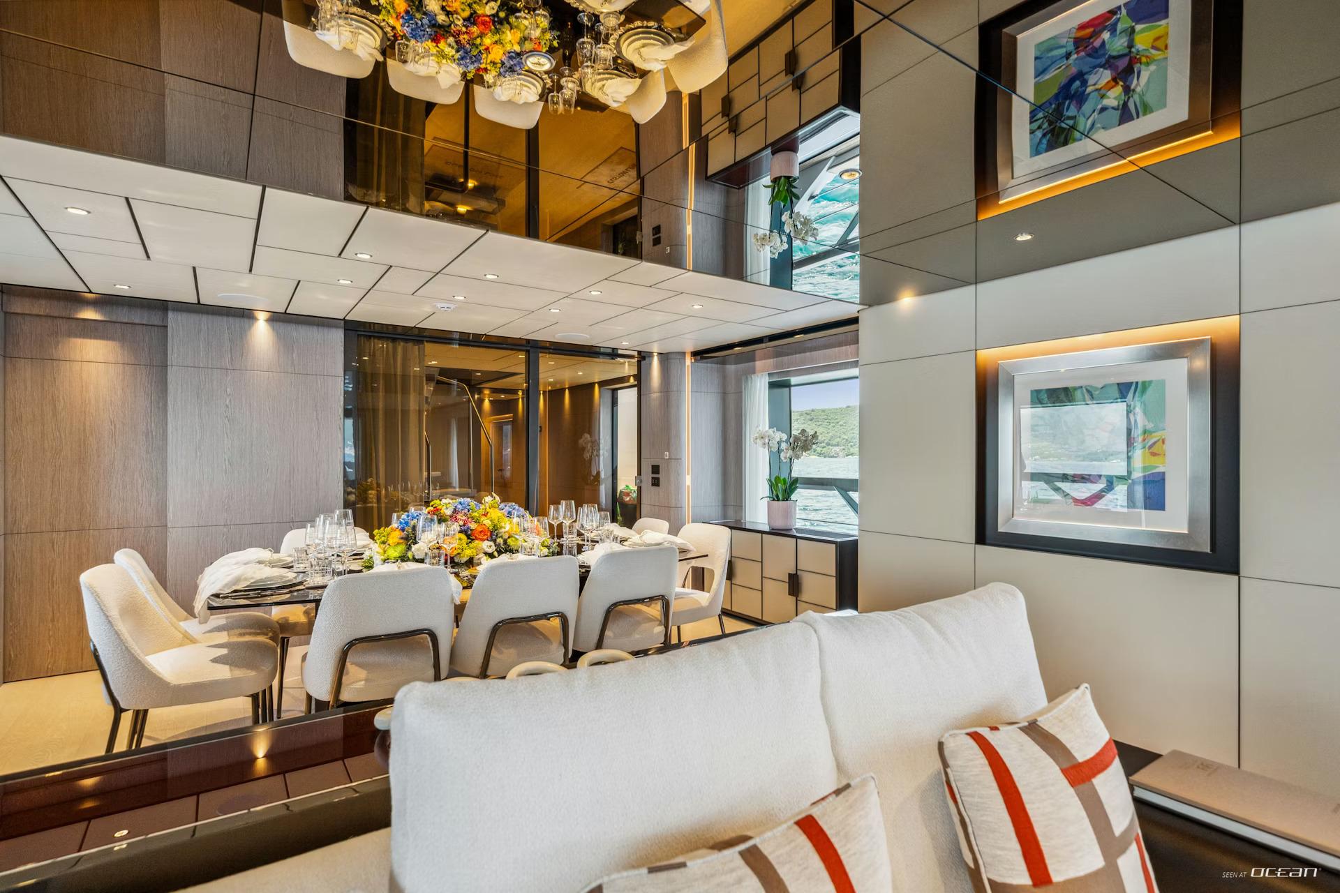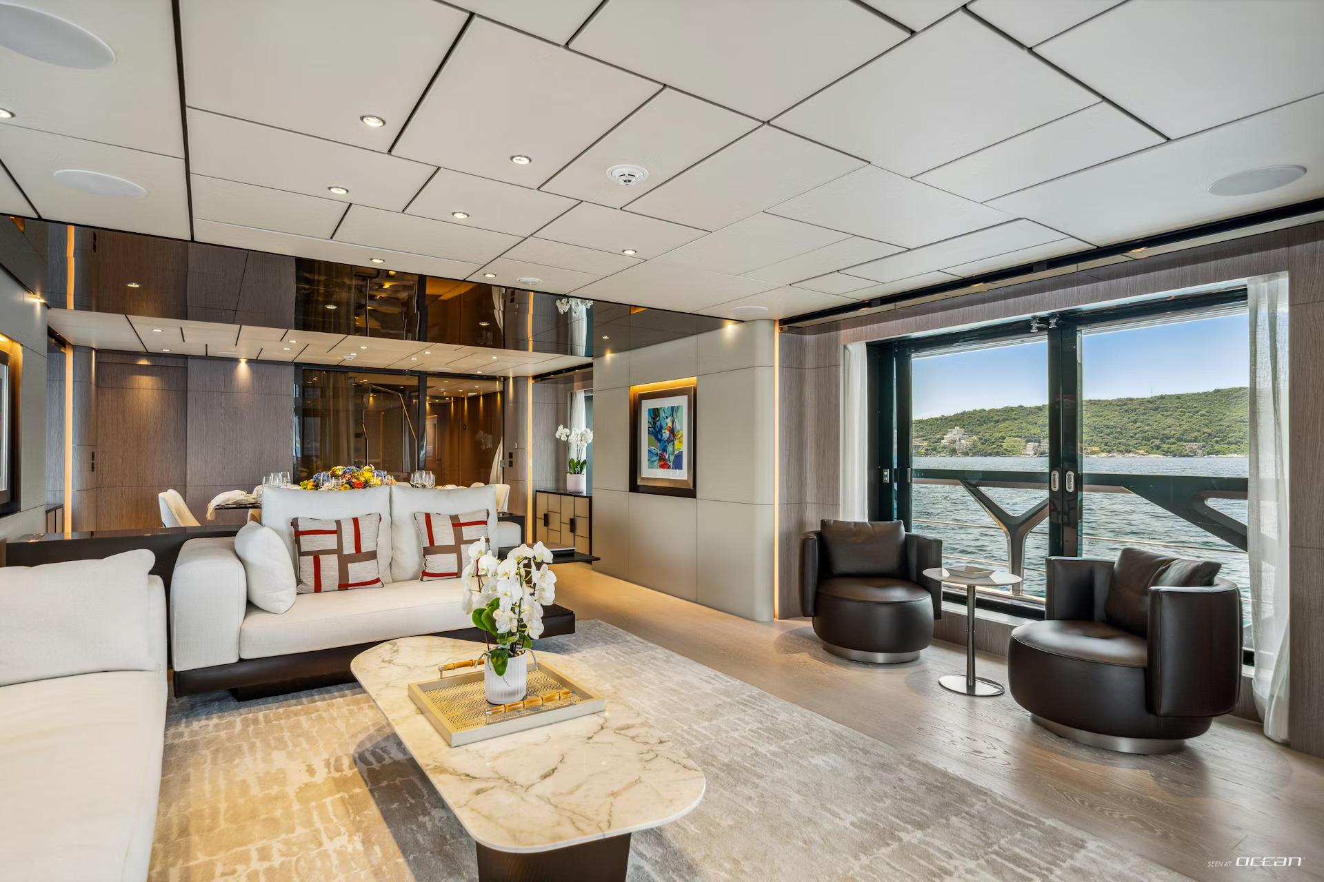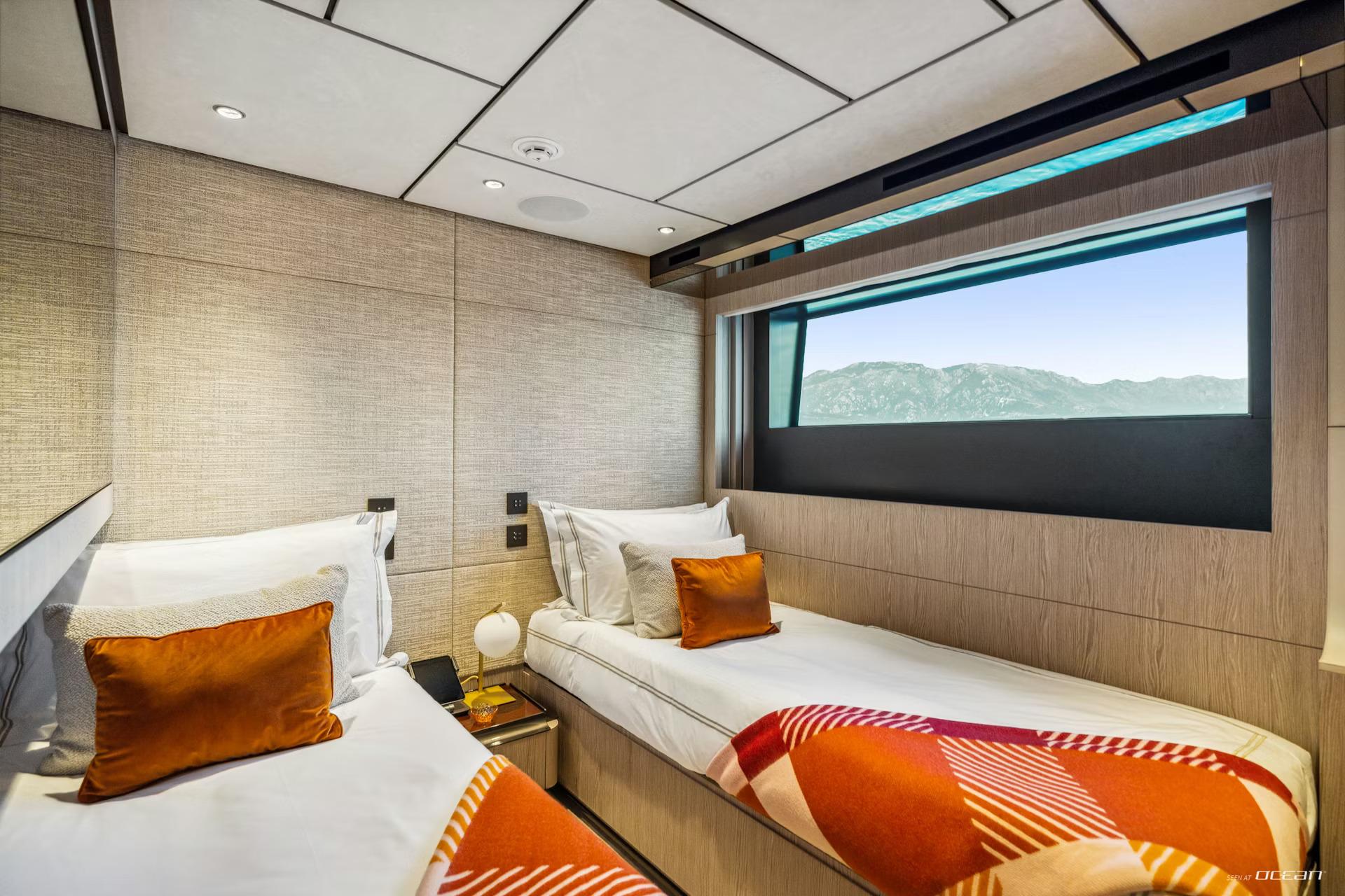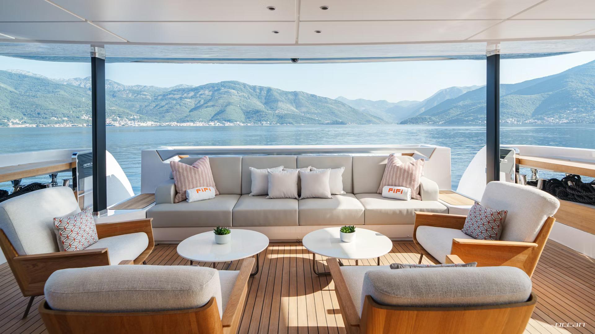 Up to 10 guests are accommodated across 5 well-appointed cabins, including a main deck master suite and a flexible arrangement of double and twin cabins below. On board, M/Y FIFI for charter combines contemporary design with everyday comfort, featuring Starlink internet, smart TVs, integrated sound systems, and a curated music and movie library. Stabilization systems ensure a smooth and relaxing experience both underway and at anchor.