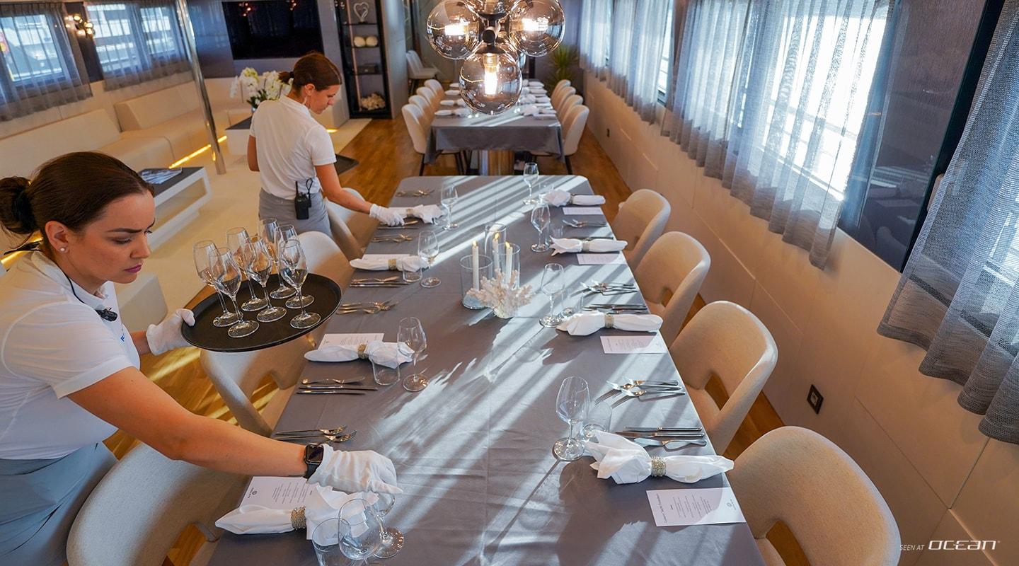 FREEDOM comes with an exciting collection of water toys, including jet-skis, seabobs, e-foils, SUPs, water-skis, and more. Indoors, guests can unwind in the cinema and gaming room, enjoy the sauna, or schedule a massage in the dedicated spa area. Renowned for exceptional cuisine, her chef prepares fresh, organic, and regionally inspired dishes tailored to every preference.